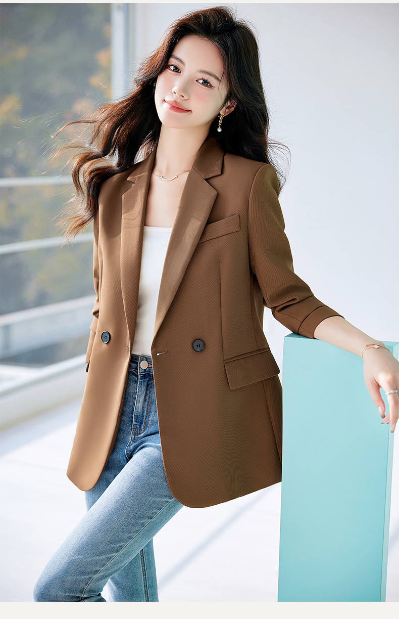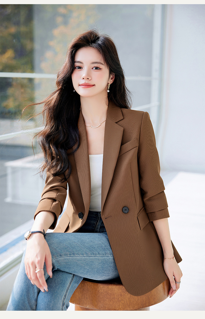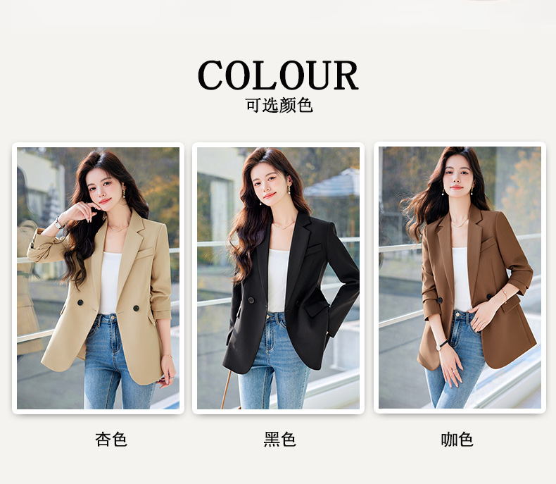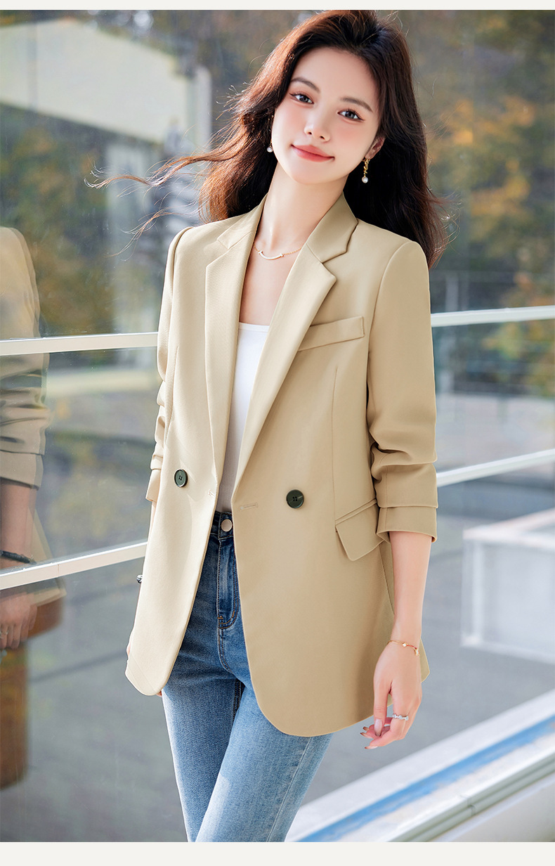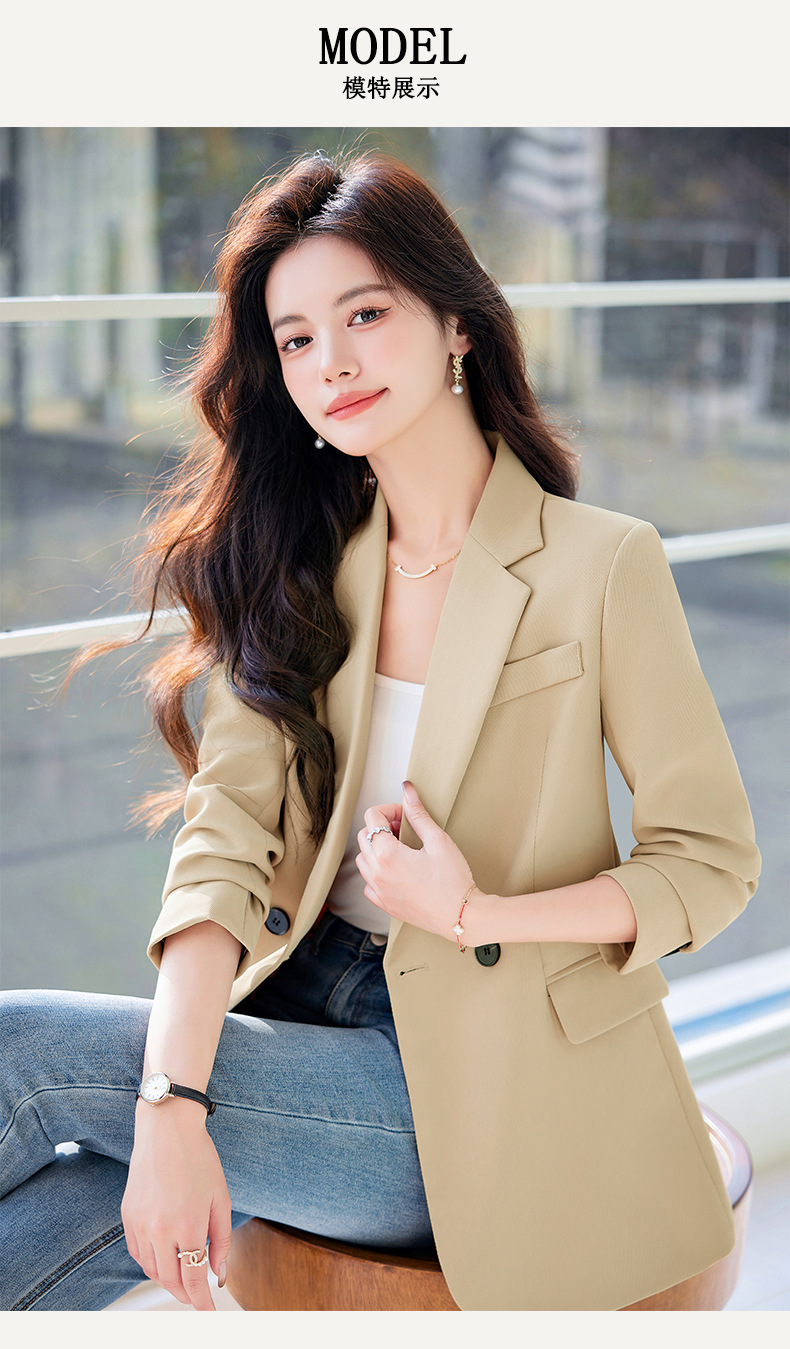HZW-杏色西装外套女春秋2024新款设计感小众休闲气质韩版小西服