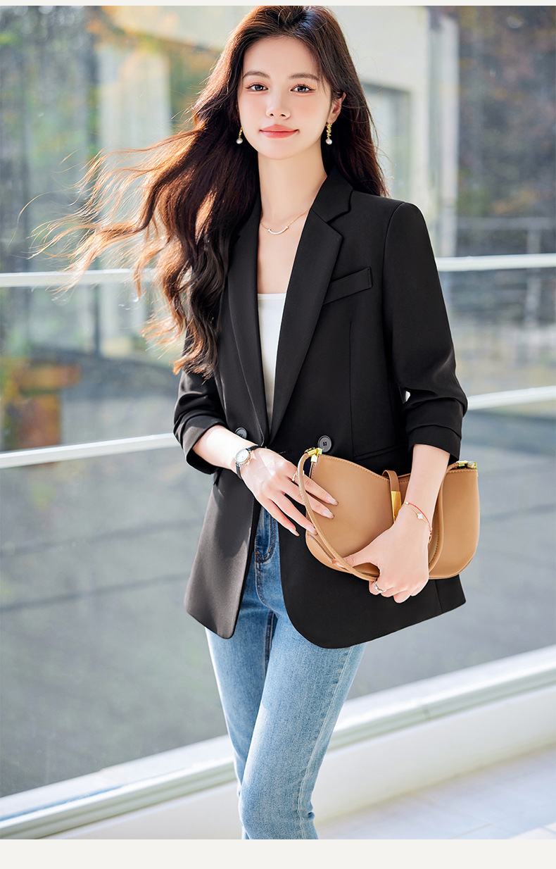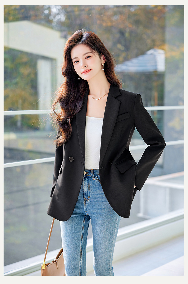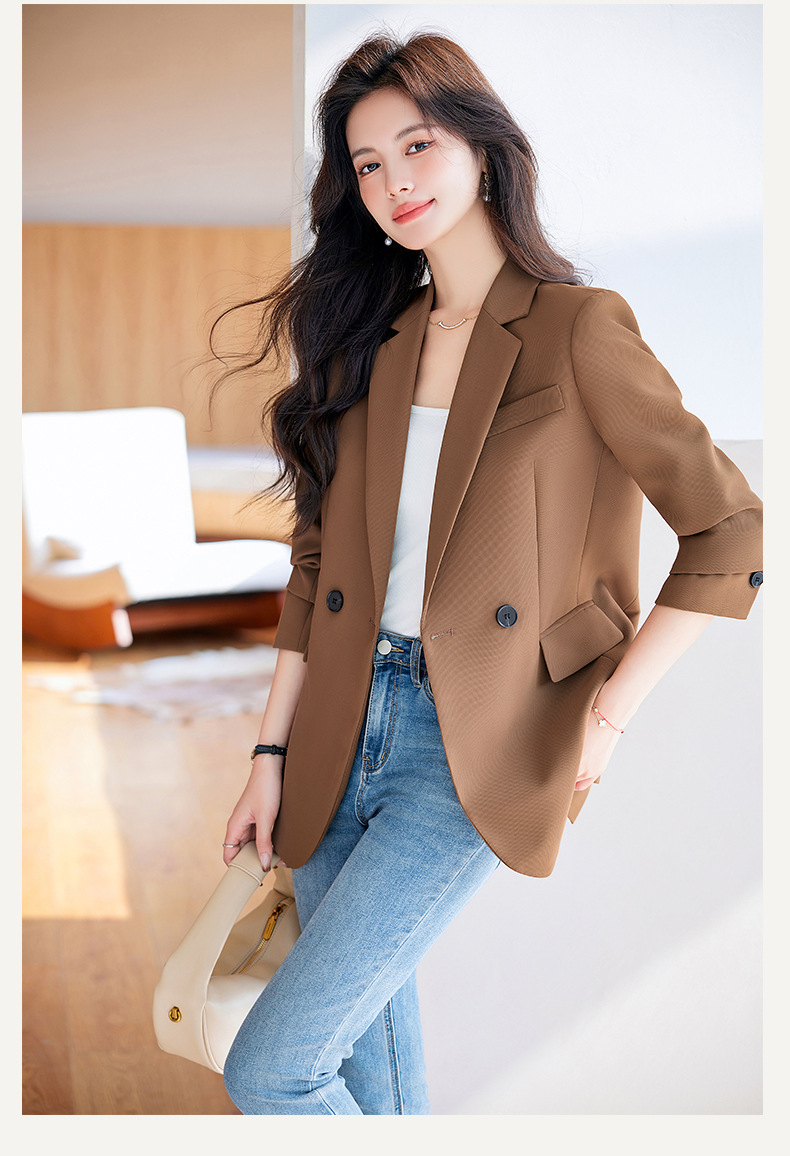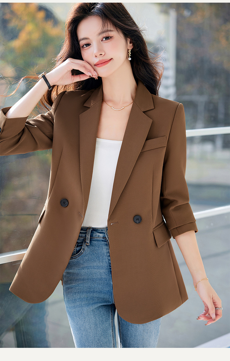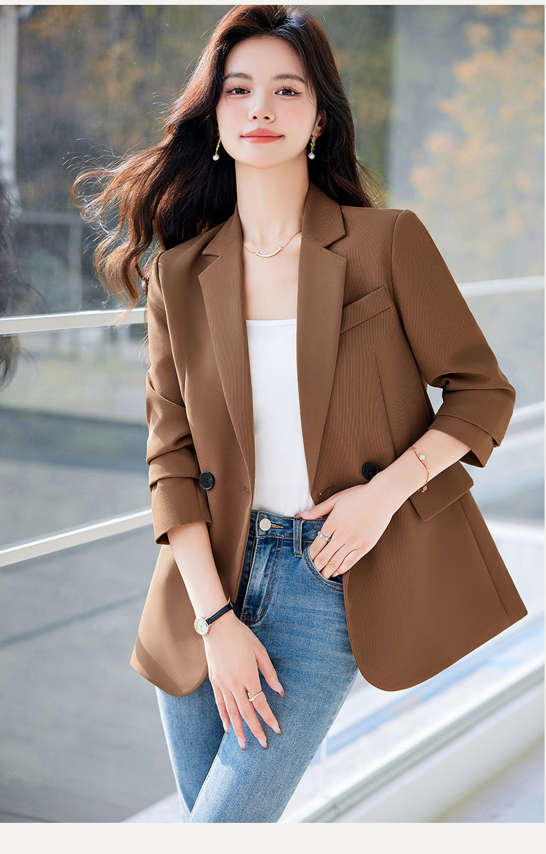 HZW-杏色西装外套女春秋2024新款设计感小众休闲气质韩版小西服
