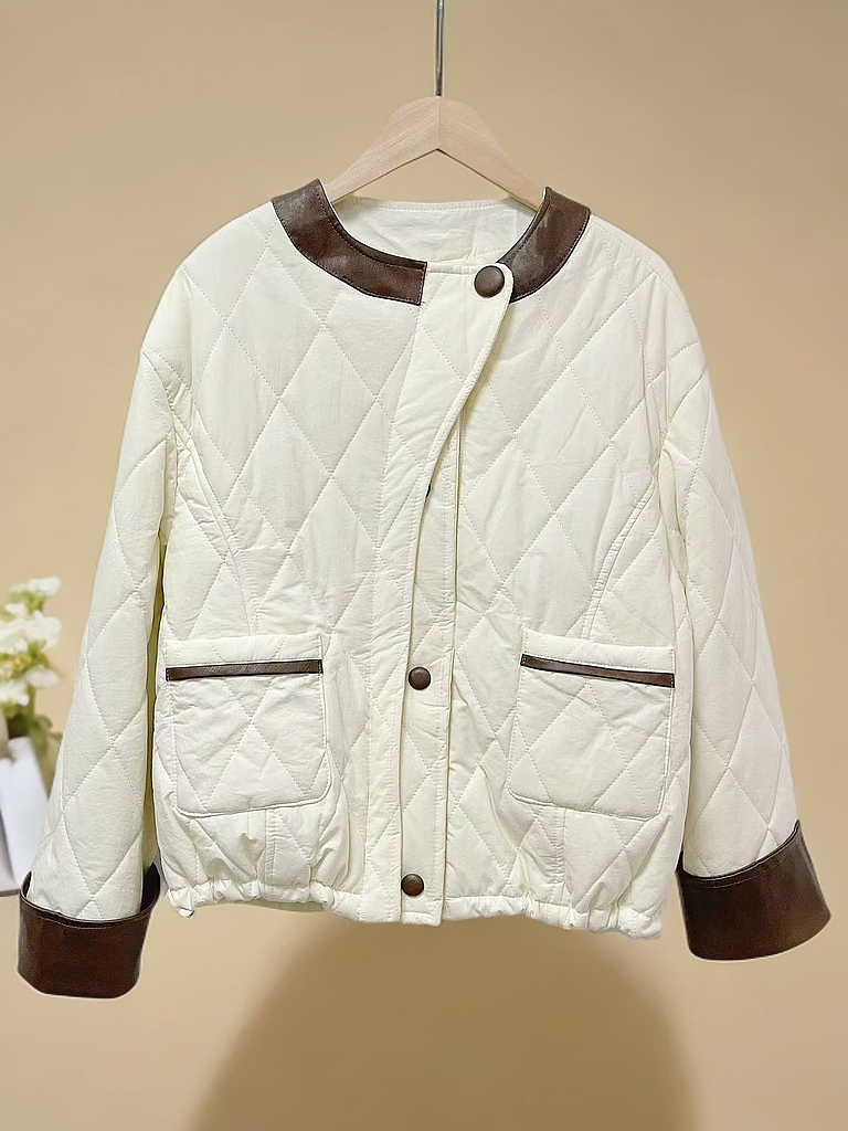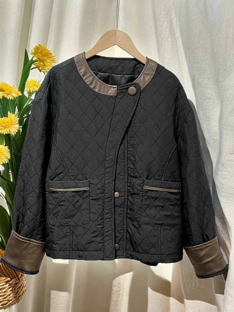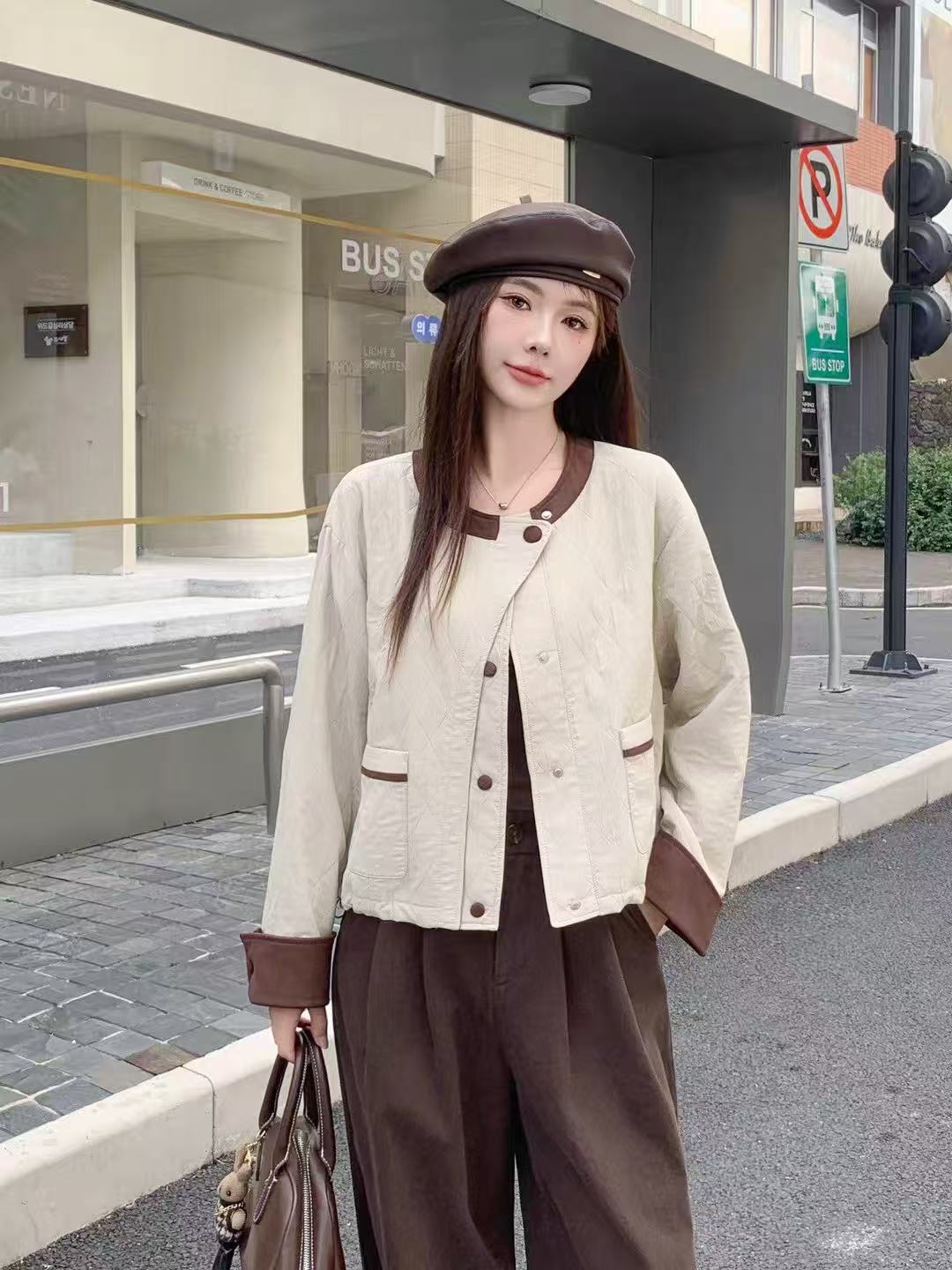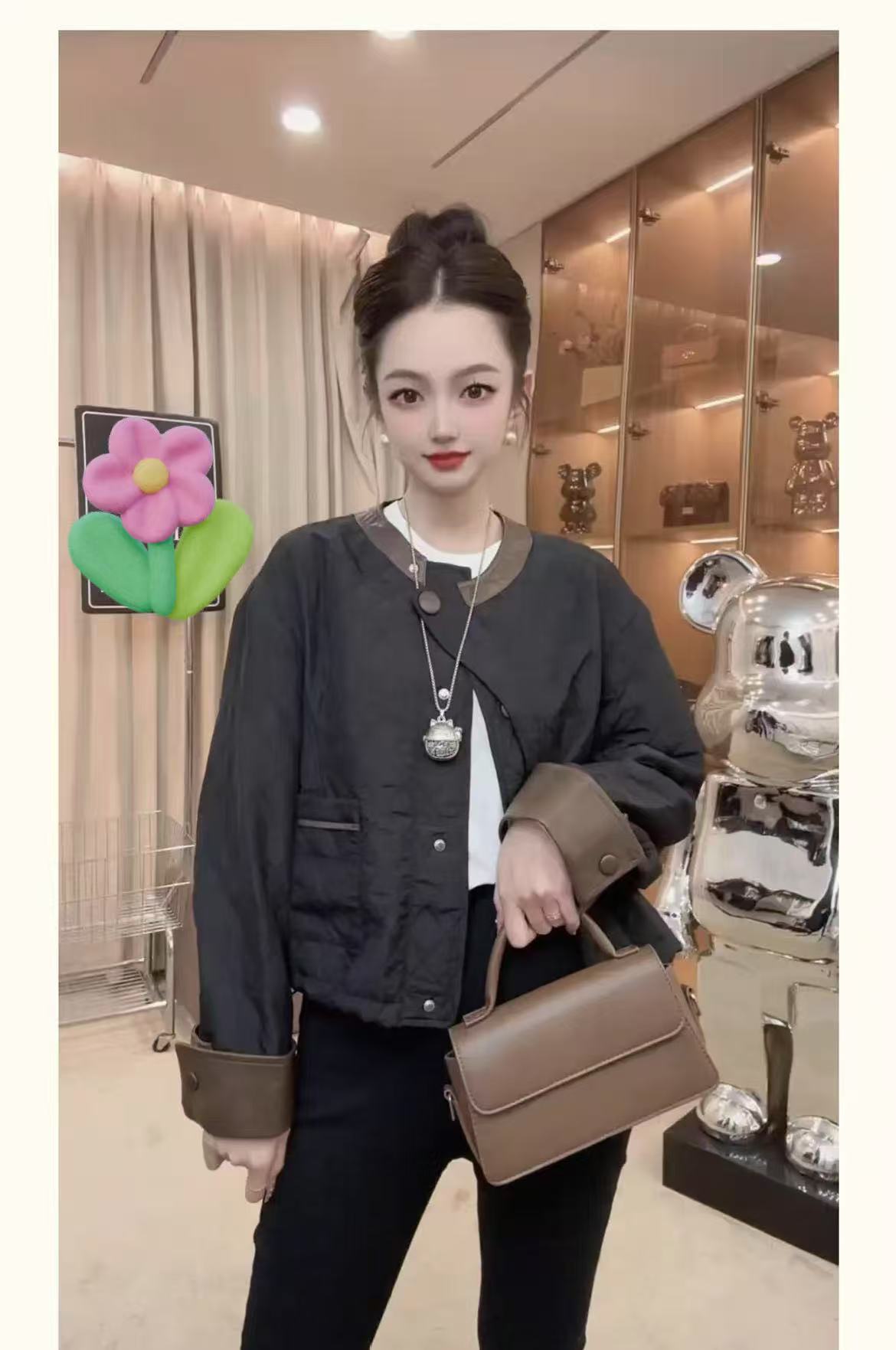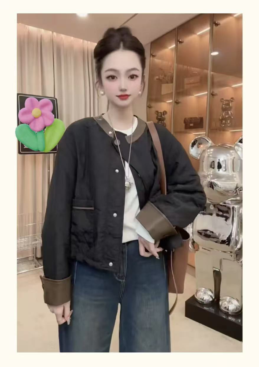 最后一件赔钱清货,退货勿下单!!宽松版-韩系8626双层门襟拼PU短款夹棉外套-喜出
