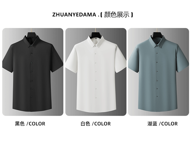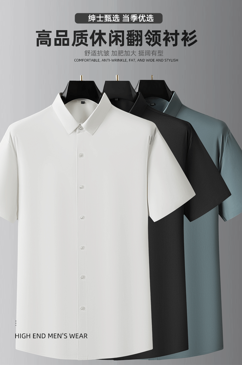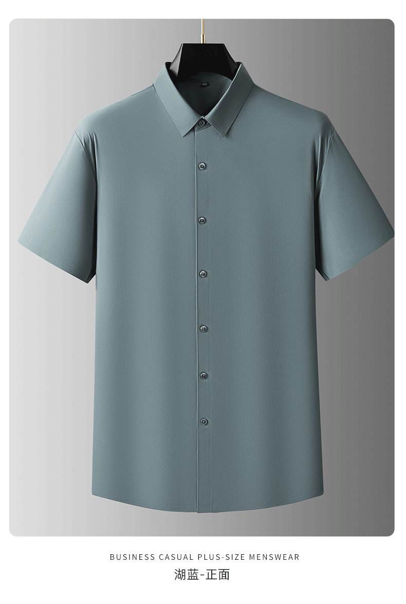 【DDA】大依优型大码短袖衬衫弹力翻领半袖衬衣商务休闲透气夏季上衣男士胖子