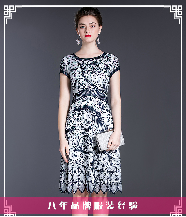 MWYG-2EF8525夏季新款重工刺绣大码妈妈装连衣裙