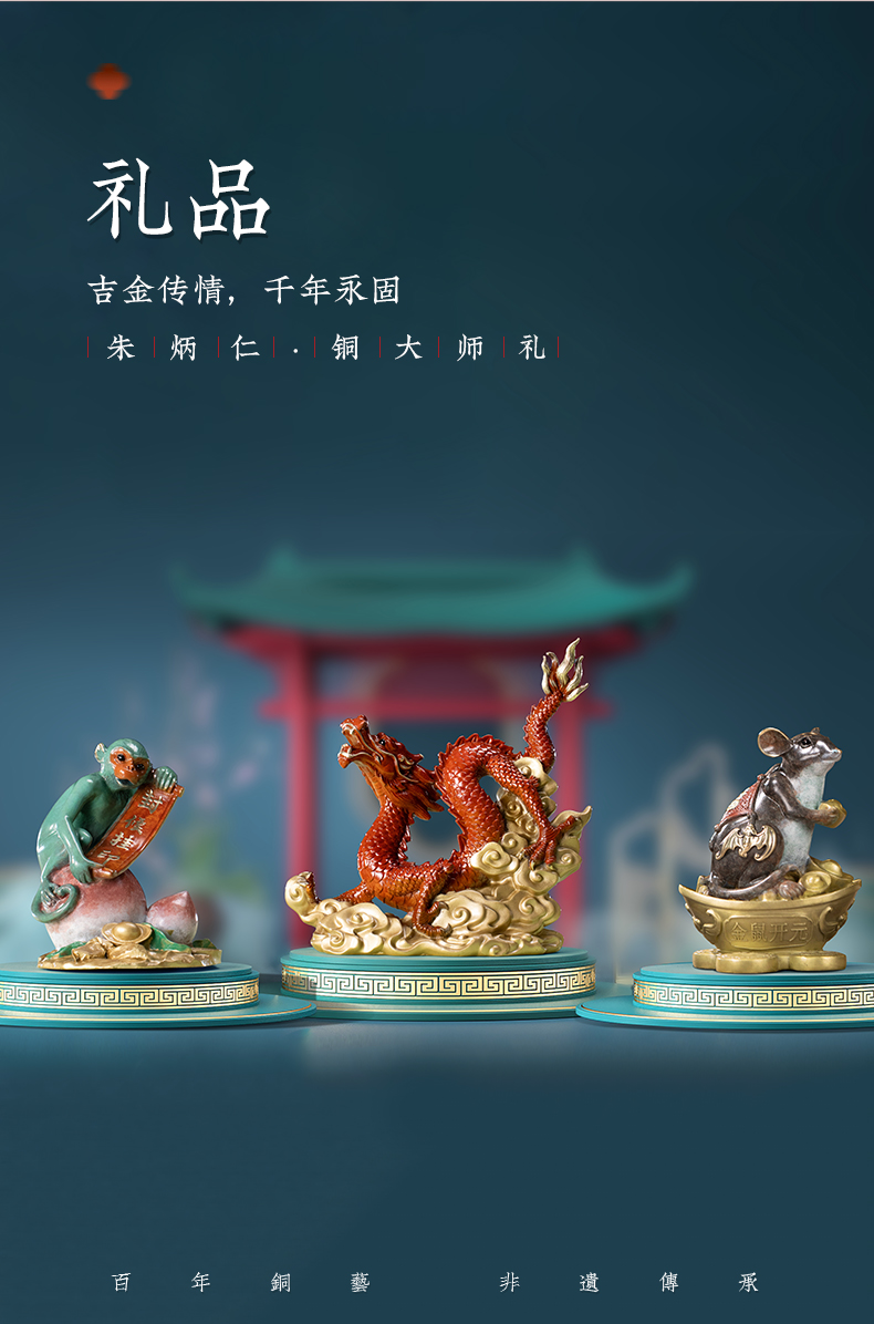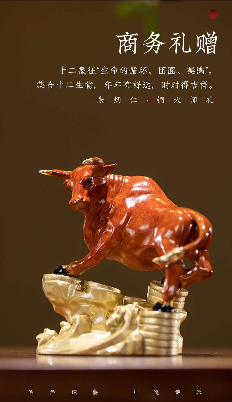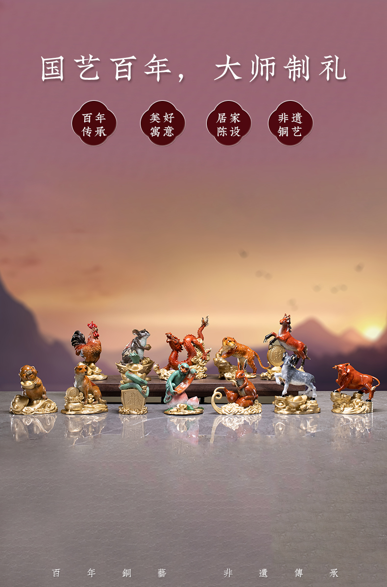 朱炳仁铜 十二生肖彩色铜雕办公桌摆件 工艺品办公桌家居摆件