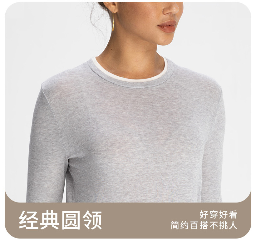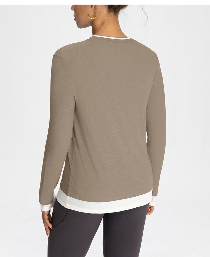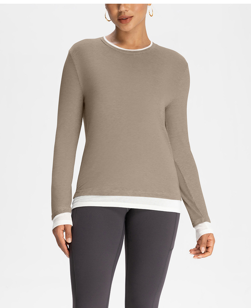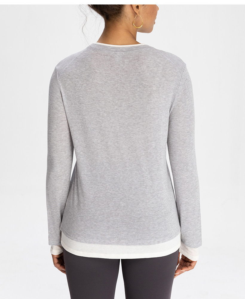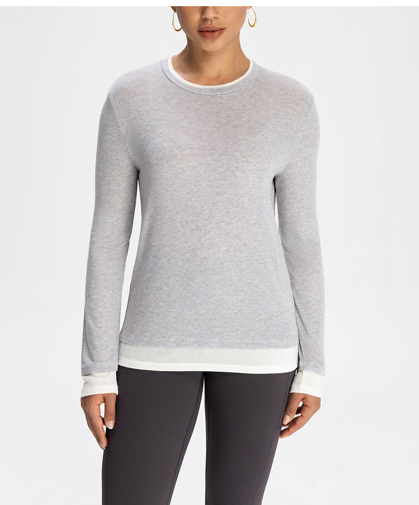 跃牌【倚窗听雨】美丽诺羊毛瑜伽服女假两件拼接撞色长袖T恤运动宽松打底衫上衣