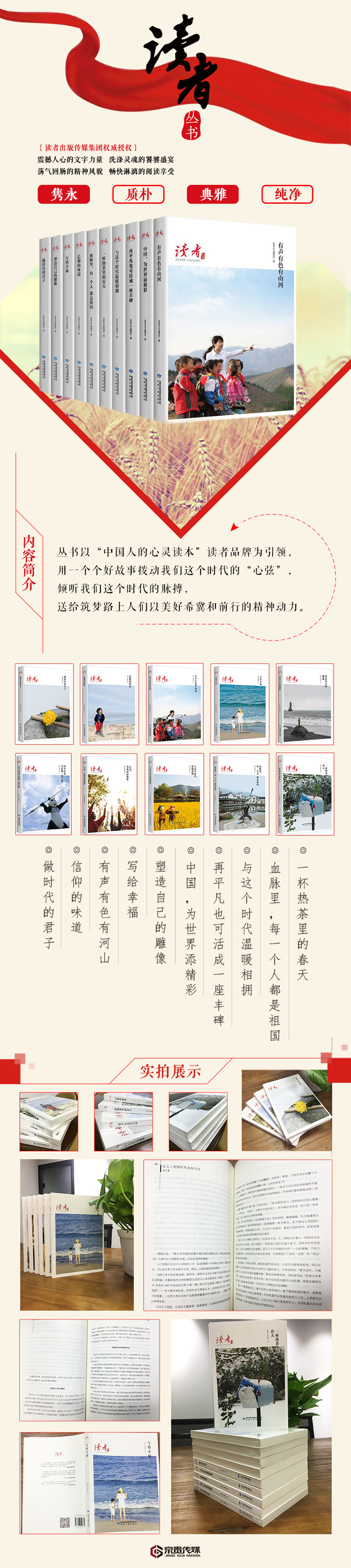 秉持《读者》“清新、隽永、朴实、平民”的风格和“真、善、美”的价值标准,用一个个好故事拨动我们这个时代的“心弦”,倾听我们这个时代的脉搏。