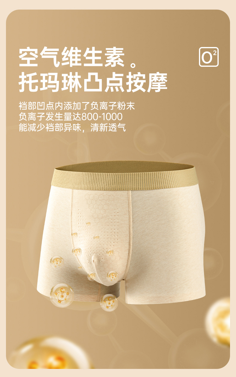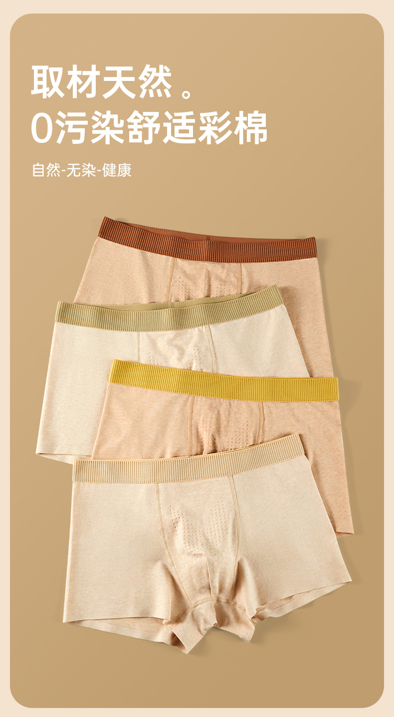樱然7A养护天然彩棉撞色男士内裤/4条(3XL码,适合80.5-95Kg)补单专用