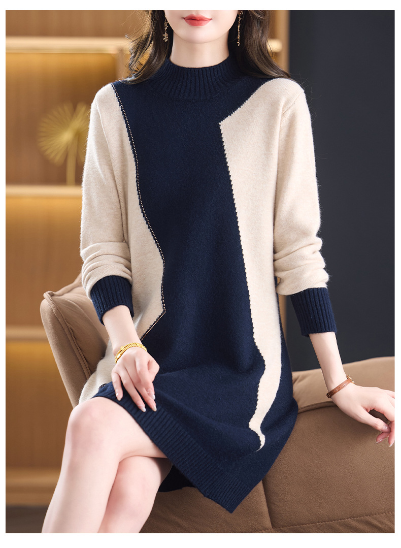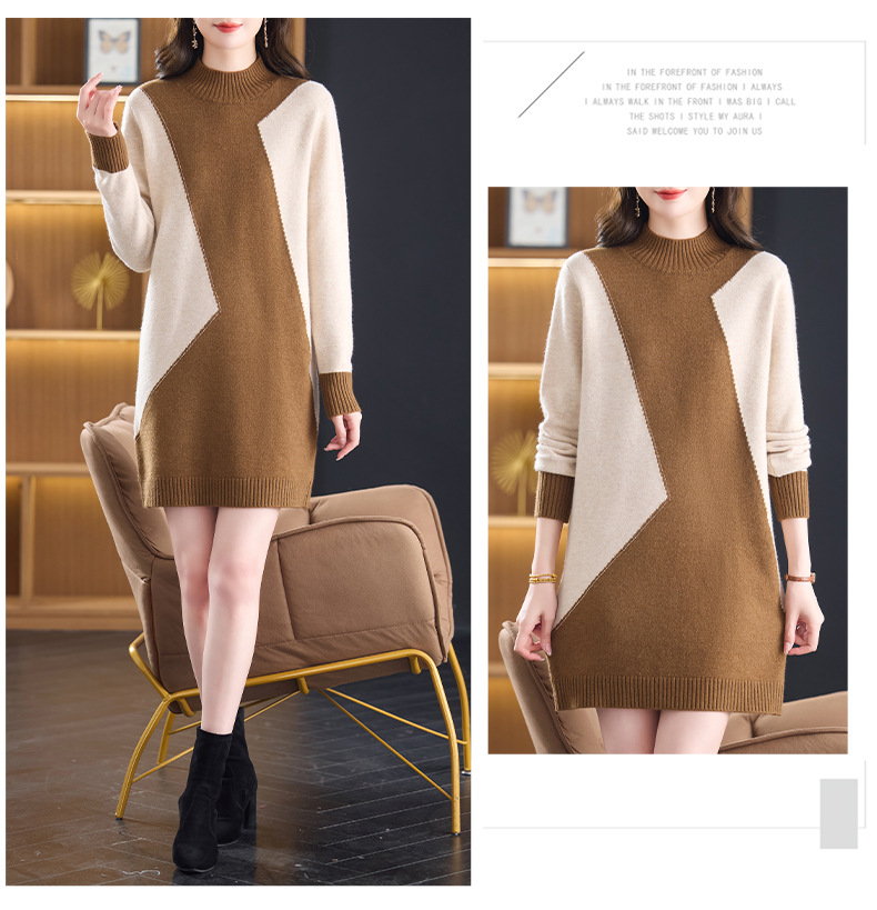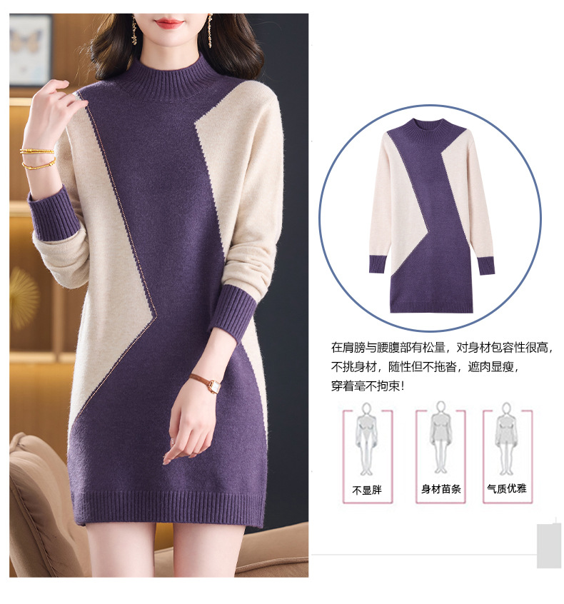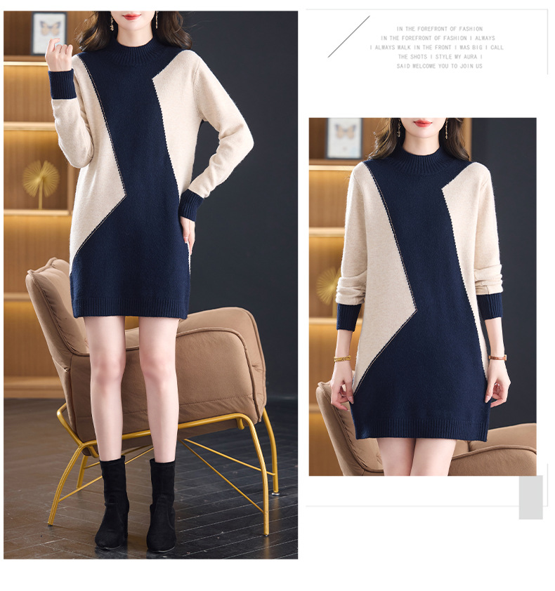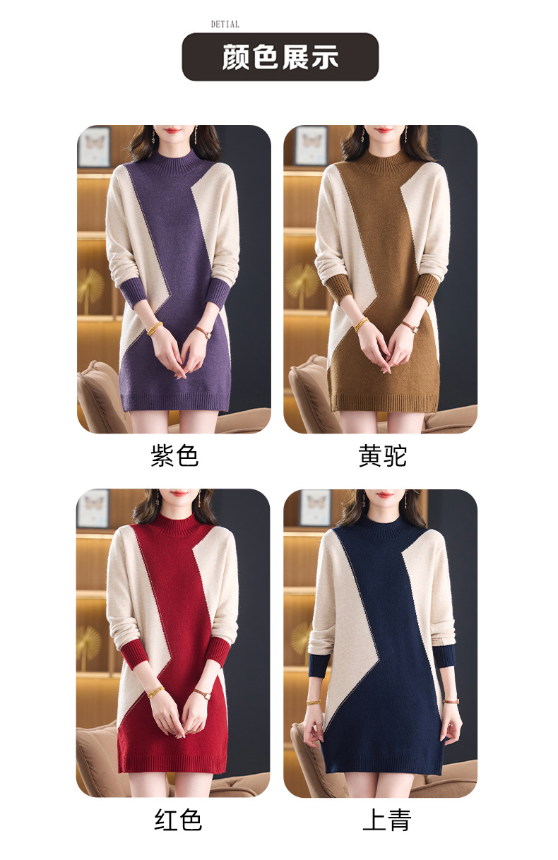 CC半高领拼色显瘦毛衣裙女中长款秋冬2025新款遮屁股洋气针织打底衫