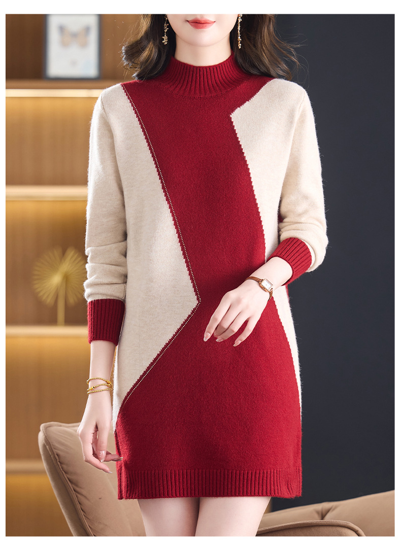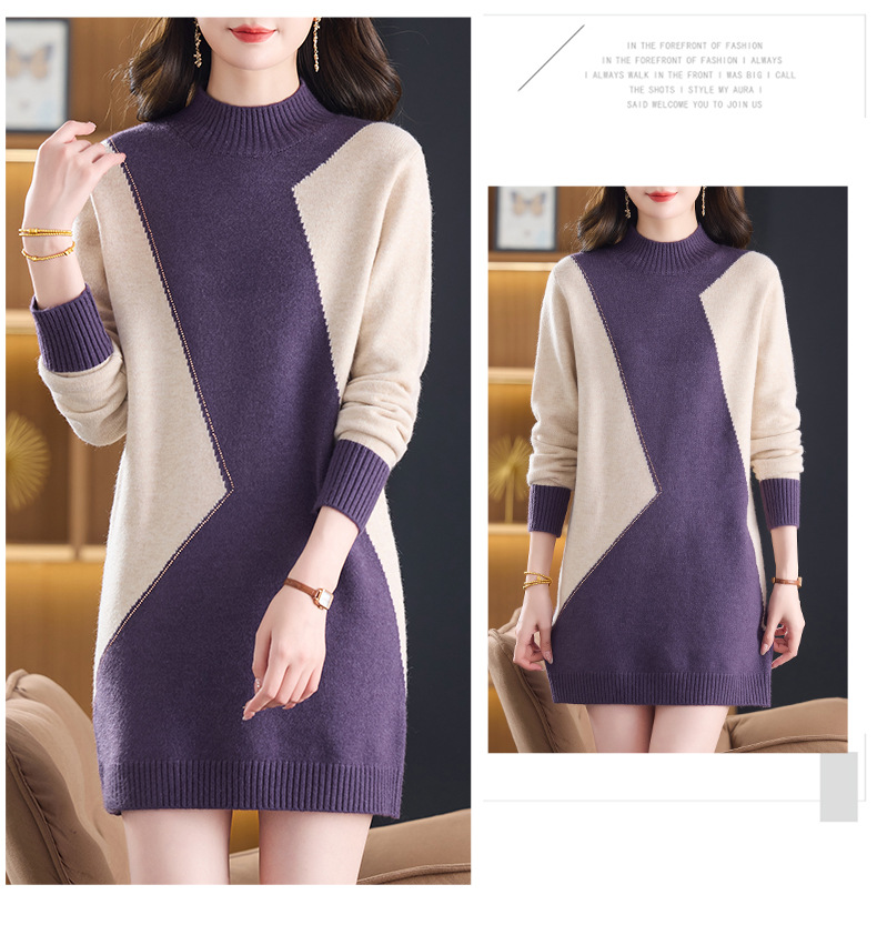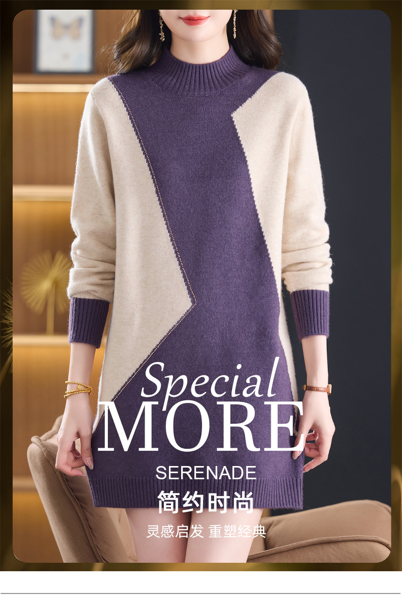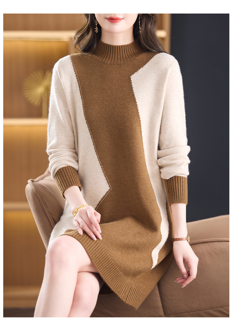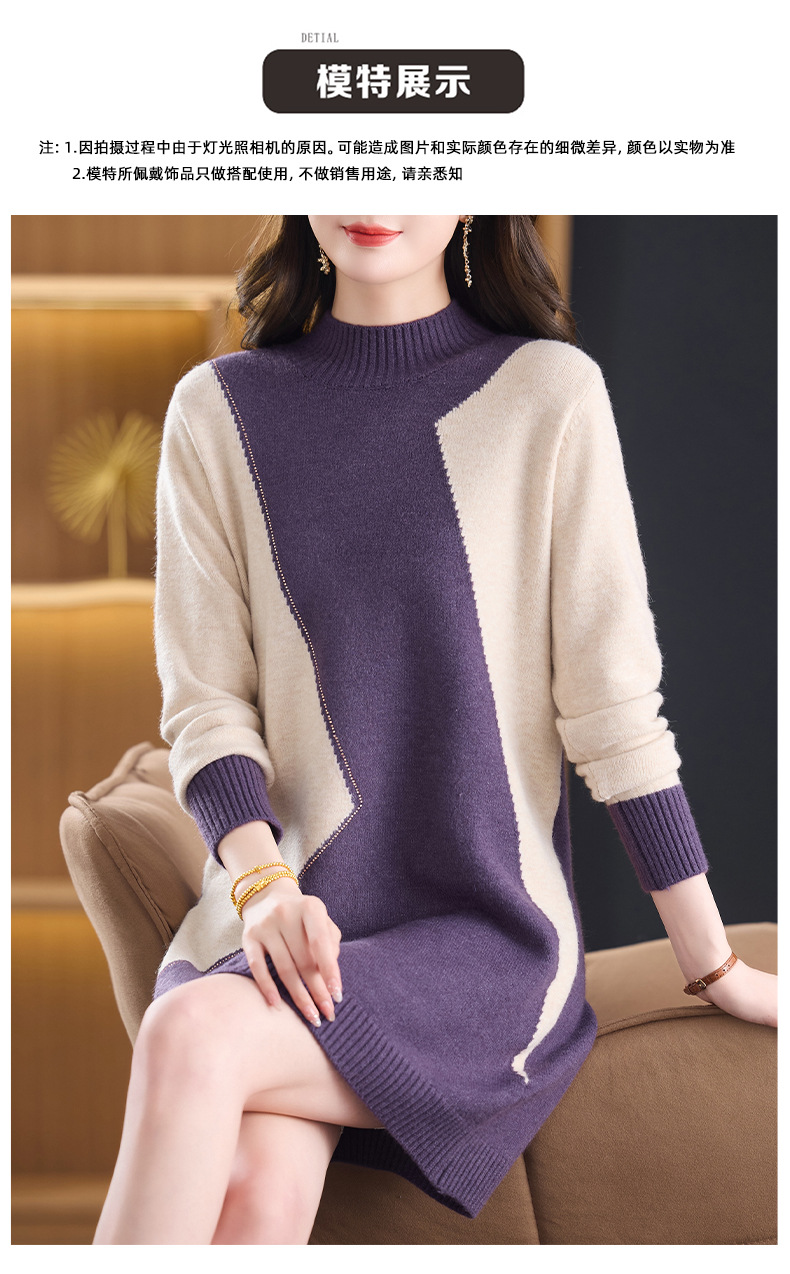 CC半高领拼色显瘦毛衣裙女中长款秋冬2025新款遮屁股洋气针织打底衫