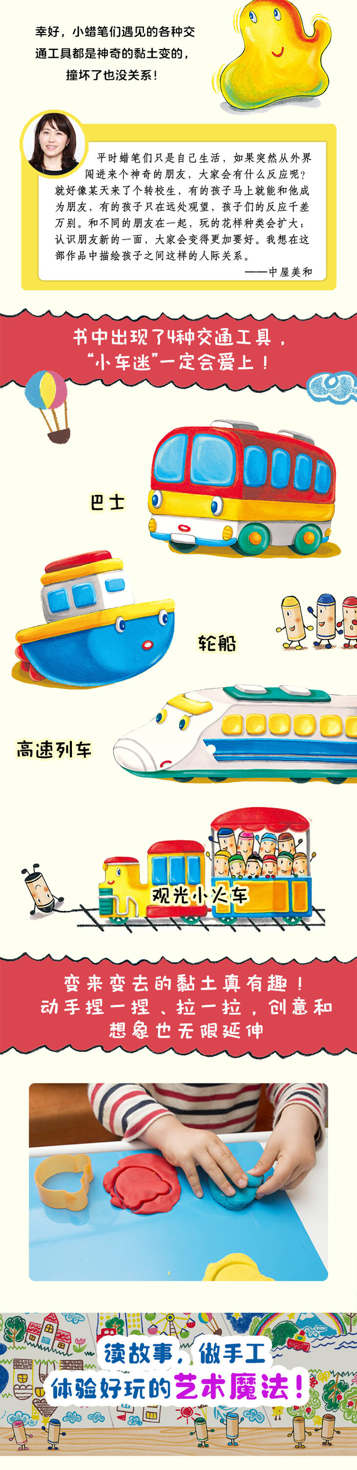 蜡笔小黑出门散步时,先后遇见了巴士和轮船,小黑画出马路和海浪,让他们行驶起来。其他蜡笔听说了这些神气的交通工具,也要去见识见识,没想到遇见了更酷的高速列车。为了让高速列车跑起来,蜡笔们画出漂亮的城市和铁轨。列车不断加速,越跑越快,意外发生了……《蜡笔小黑》的精彩续集,造型各异的交通工具竟然都是同一个神奇的朋友变的,他到底是谁呢?一波三·折的故事,五彩缤纷的色彩,天马行空的想象,带给孩子新鲜有趣的阅读感受。