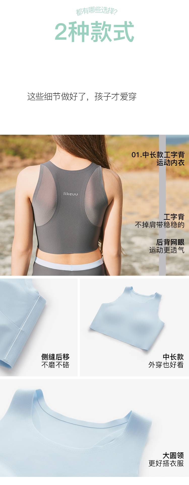 likeuu女童内衣工字背吸湿速干运动文胸少女背心发育期ZY