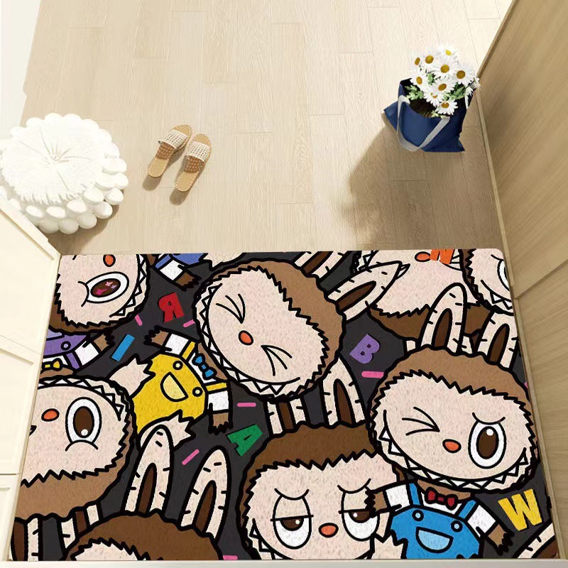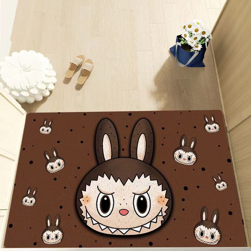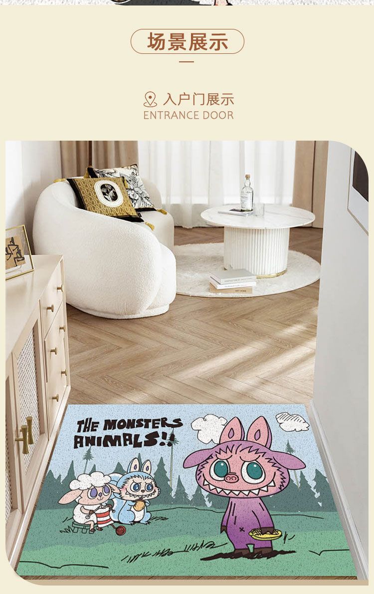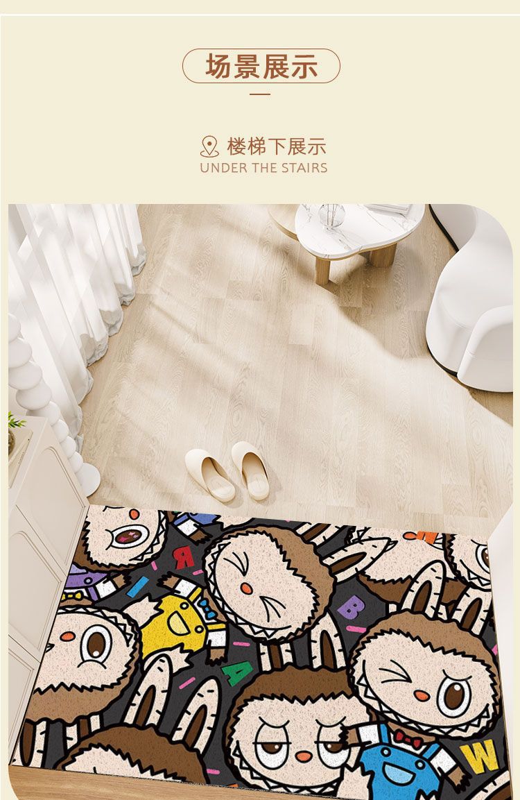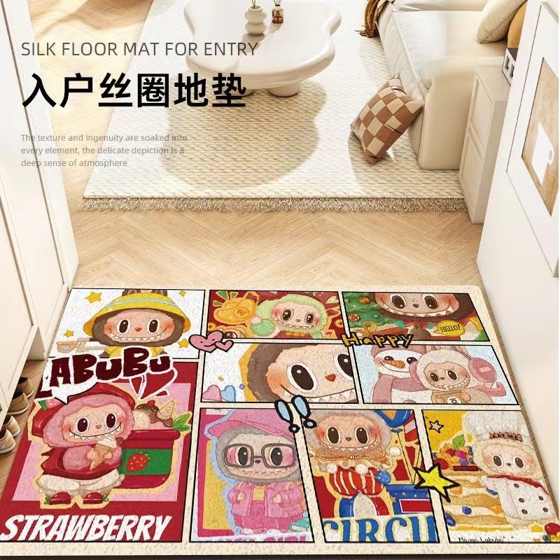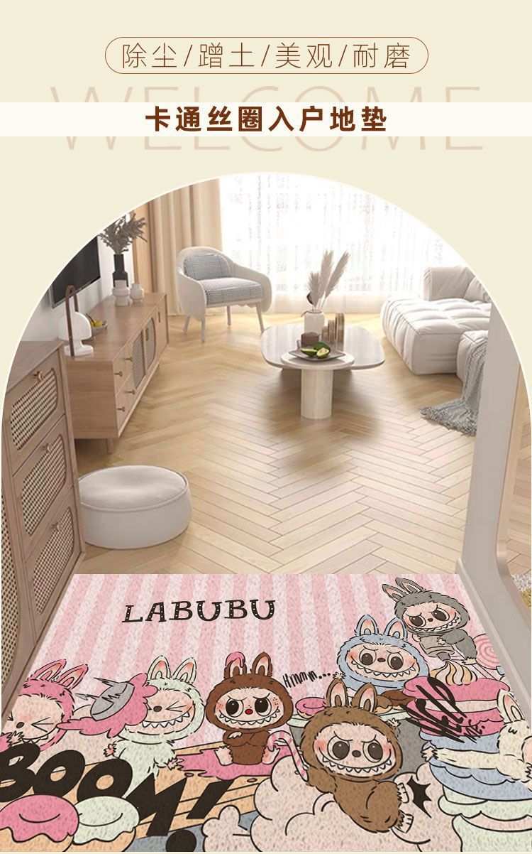 【卡通地垫,时尚可爱!】labubu拉布布卡通入户门地垫 丝圈脚垫玄关易打理 pvc防滑地毯-QQ