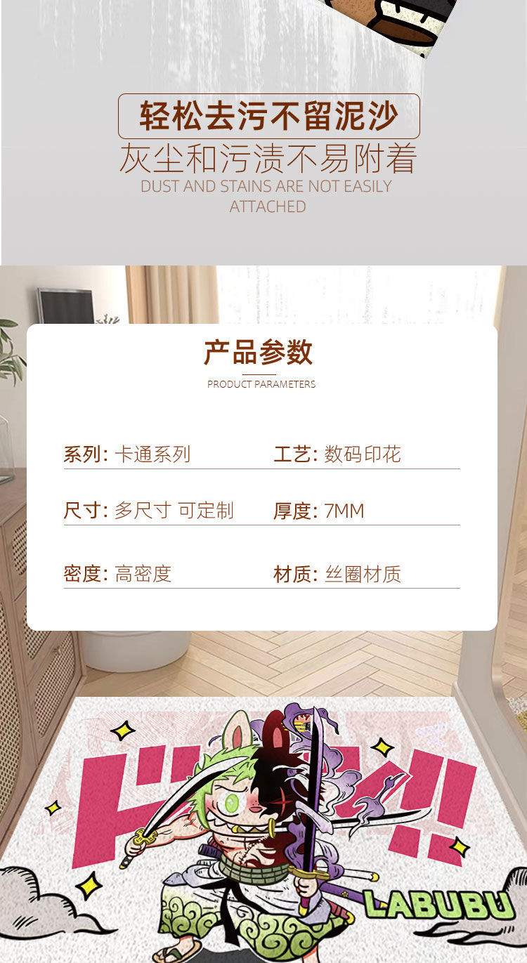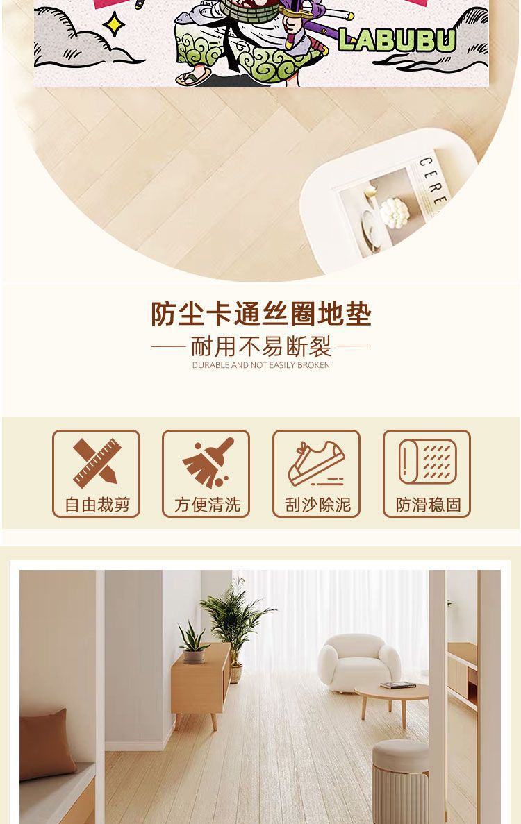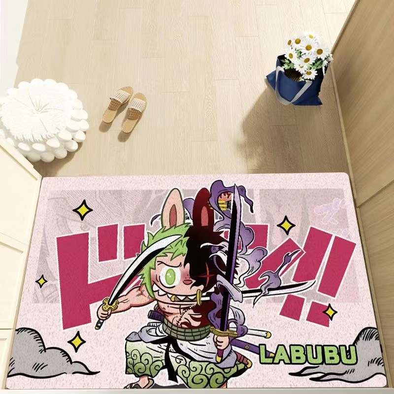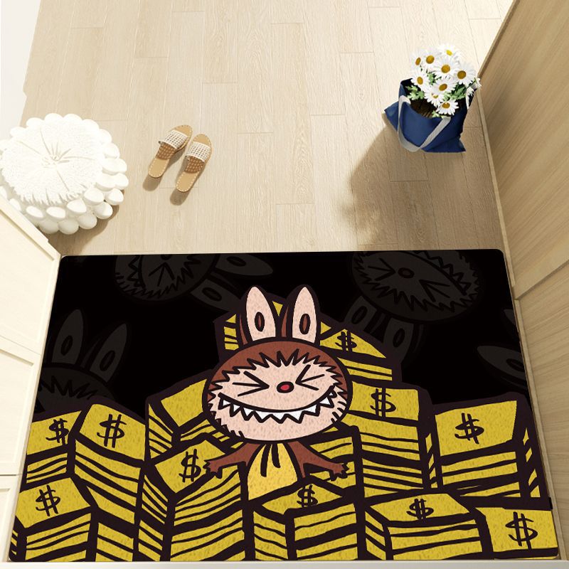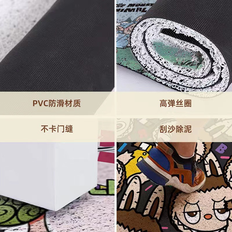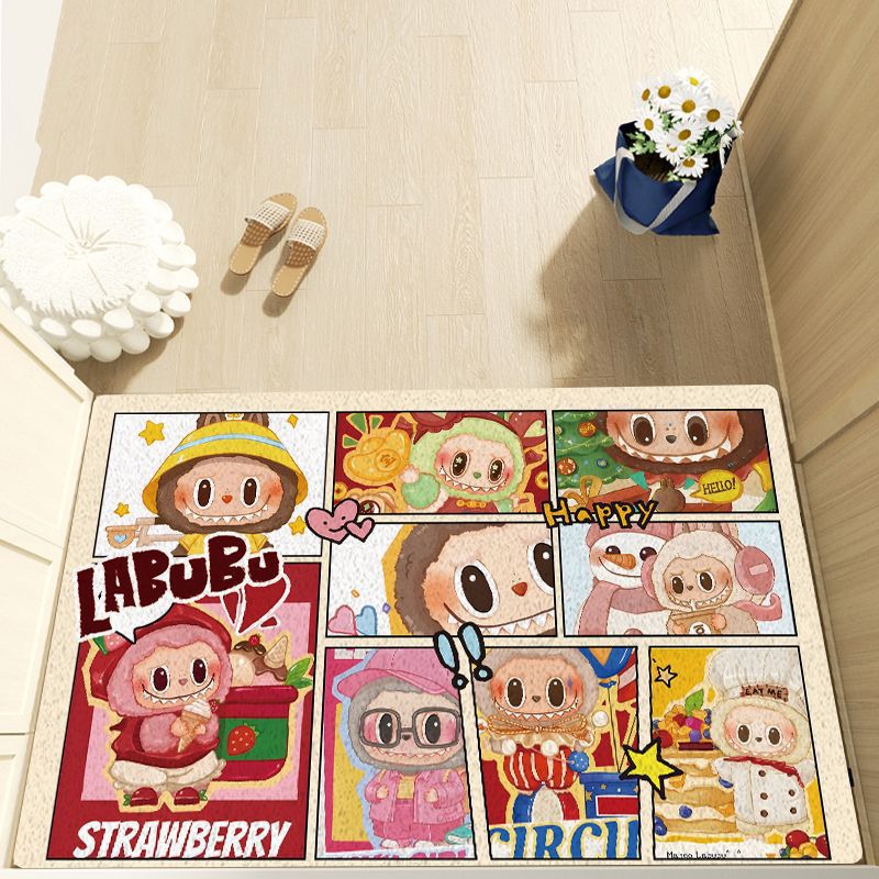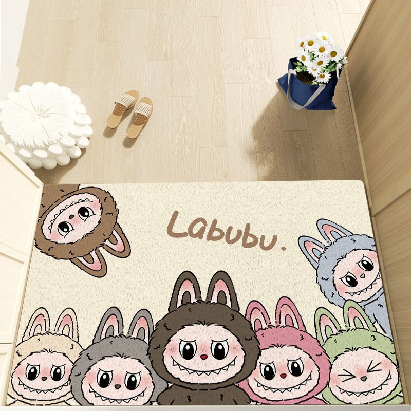 【卡通地垫,时尚可爱!】labubu拉布布卡通入户门地垫 丝圈脚垫玄关易打理 pvc防滑地毯-QQ