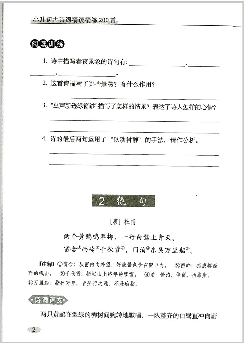 小升初古诗词精读精练200首适合3-6年级使用小学古诗文专项训练