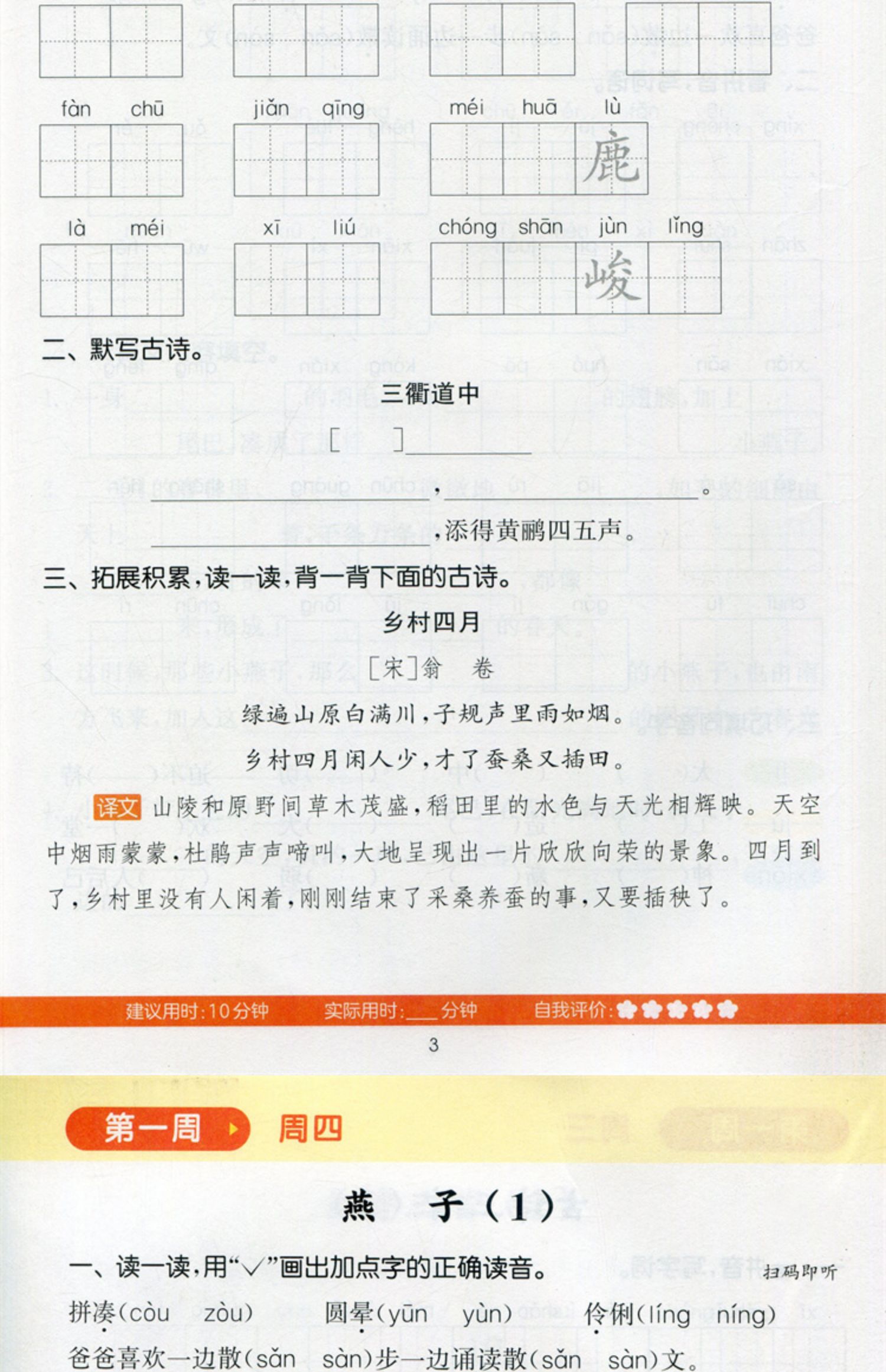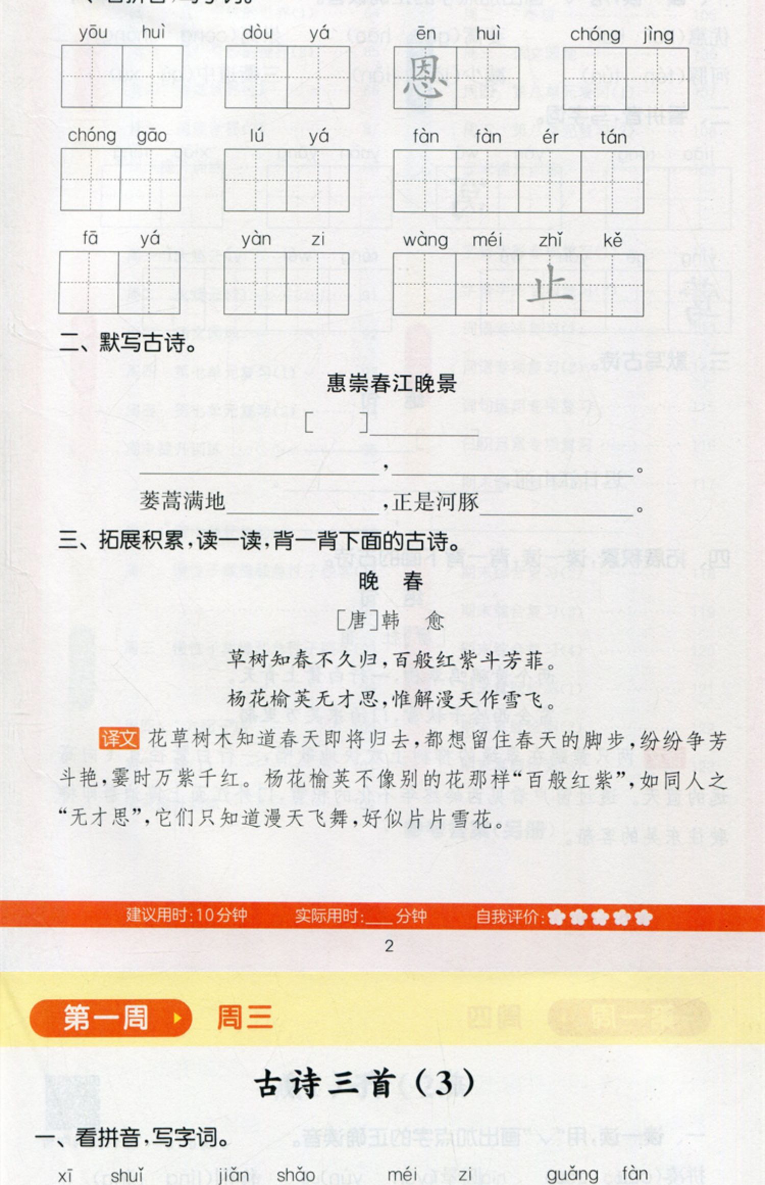 2025春 小学语文默写能手 3下 人教版 部编版 含 参考答案 三年级下册 小学语文同步教辅习题集 浙江教育出版社