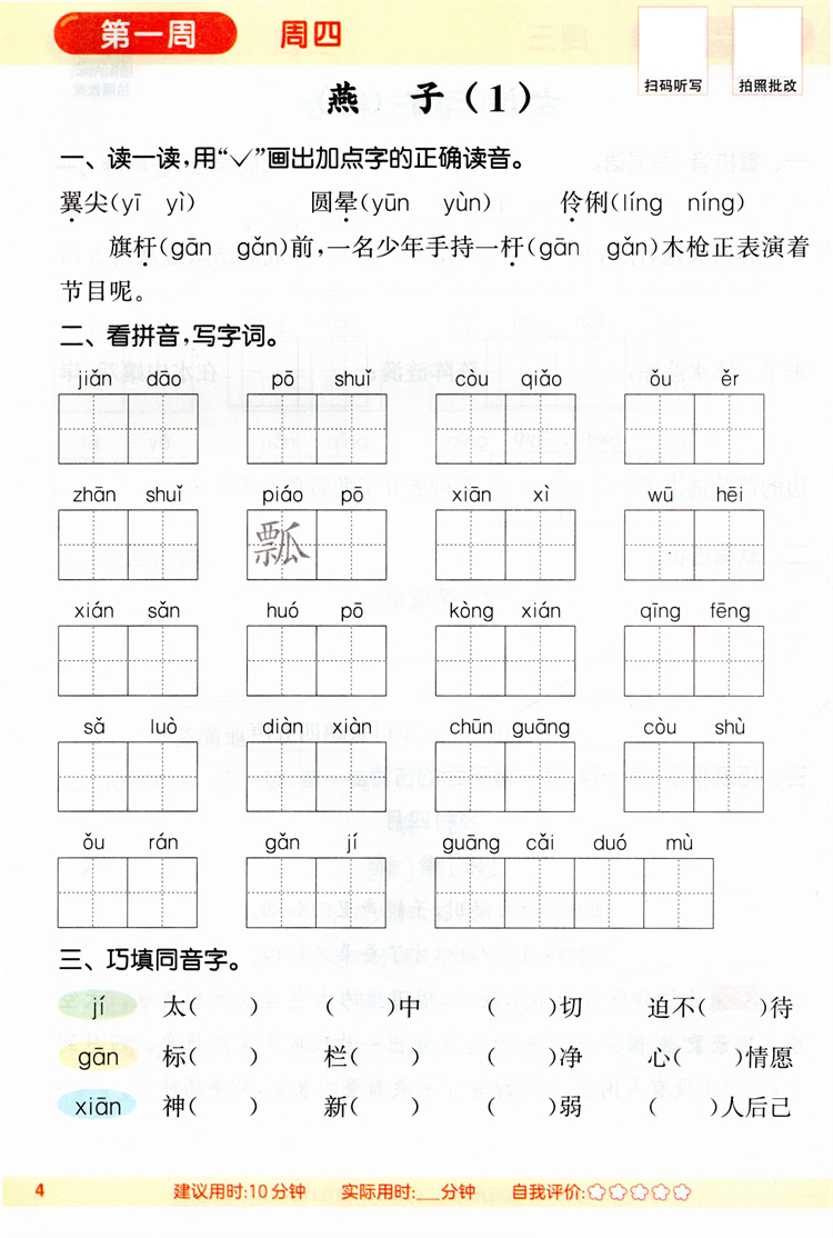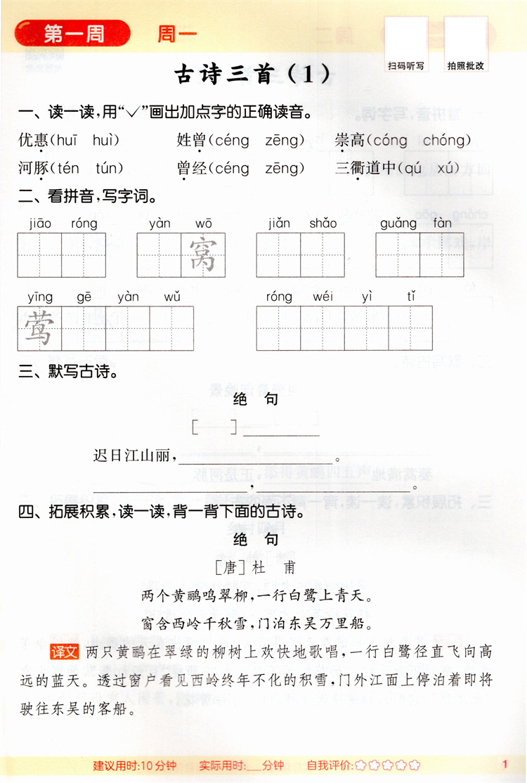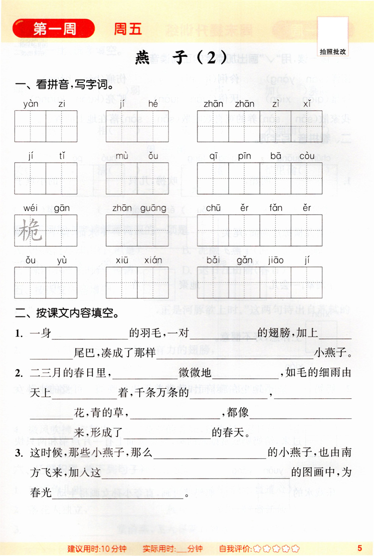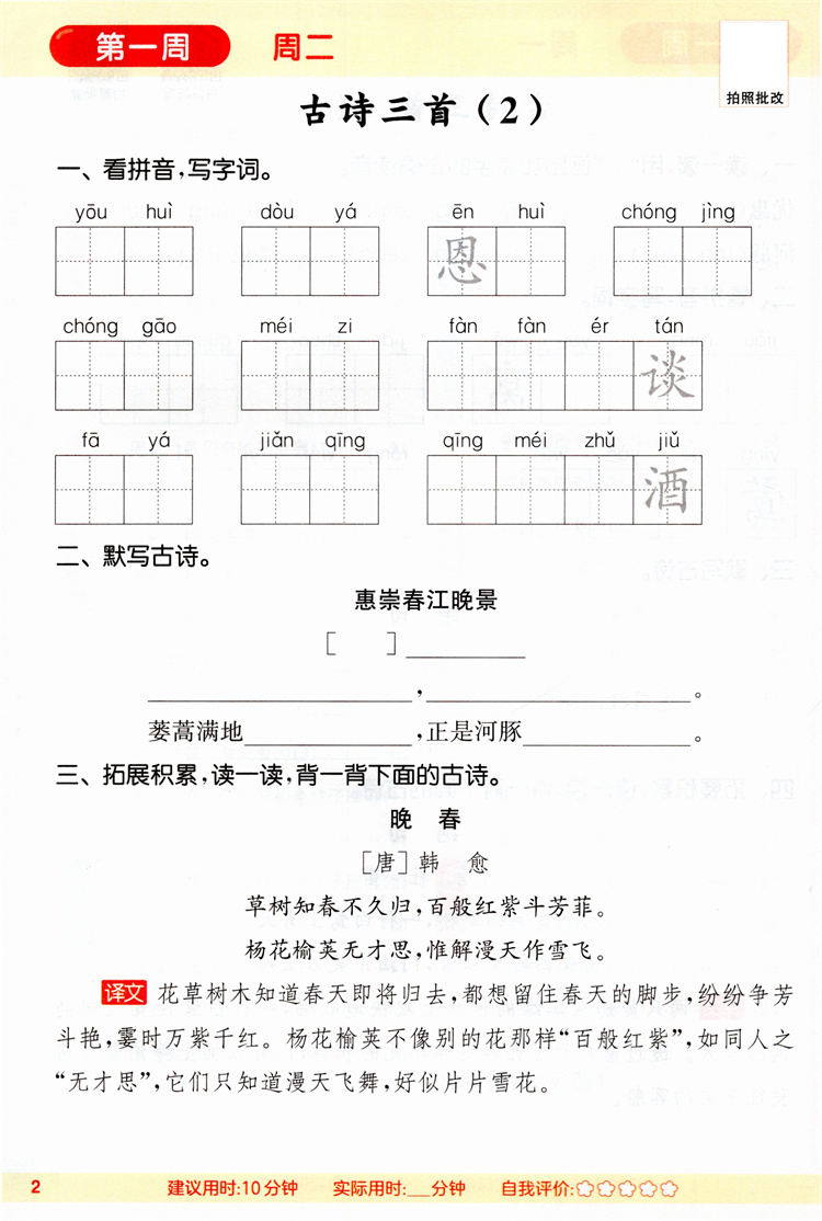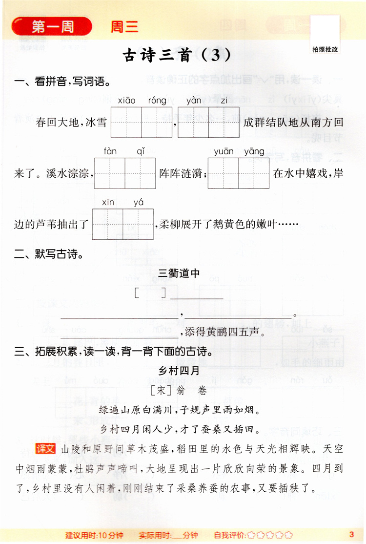2026春 小学语文默写能手 3下 人教版 部编版 含 参考答案 三年级下册 小学语文同步教辅习题集 浙江教育出版社