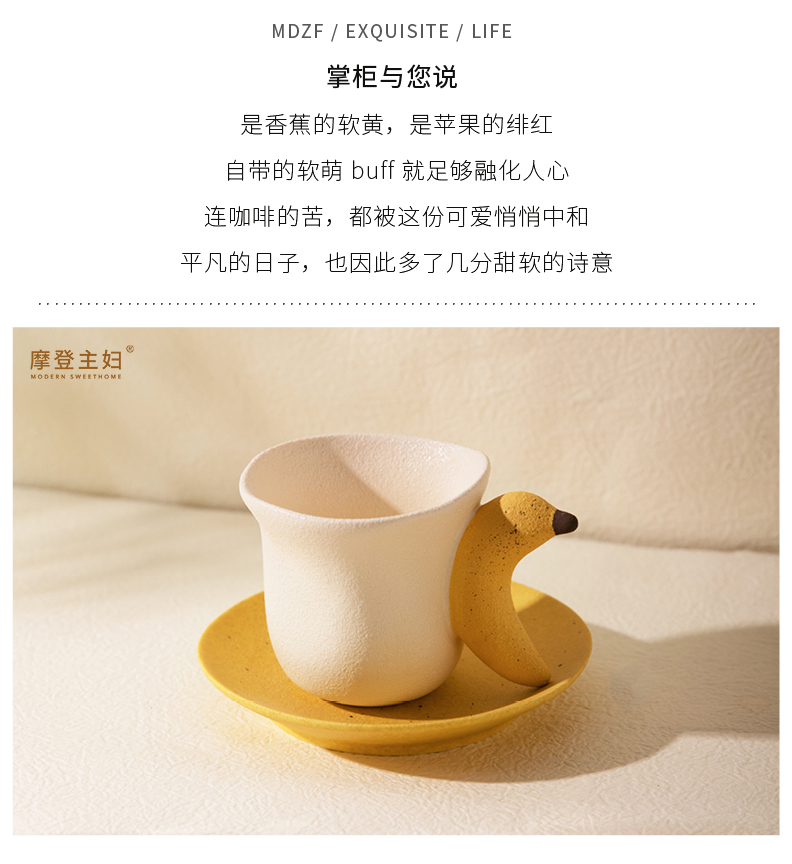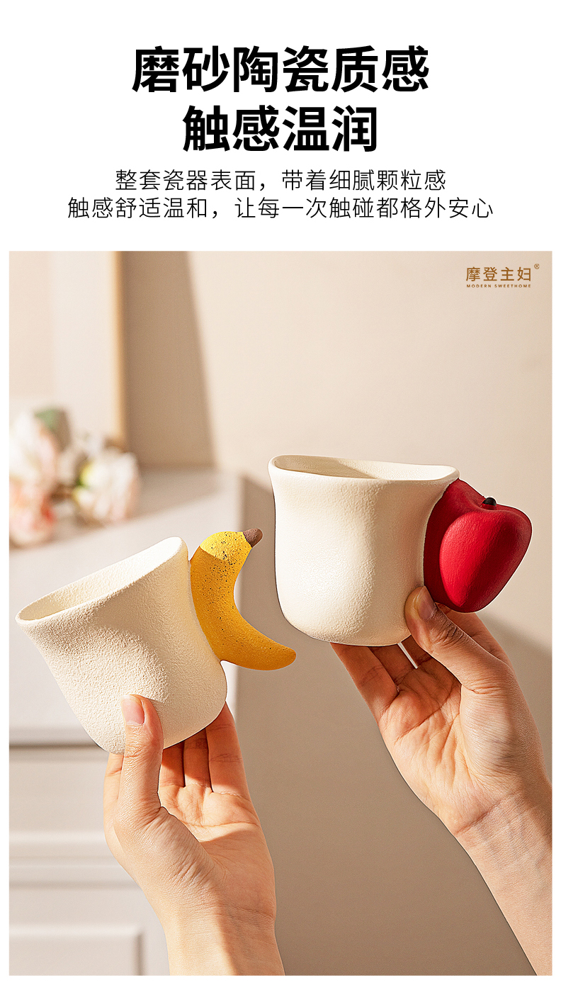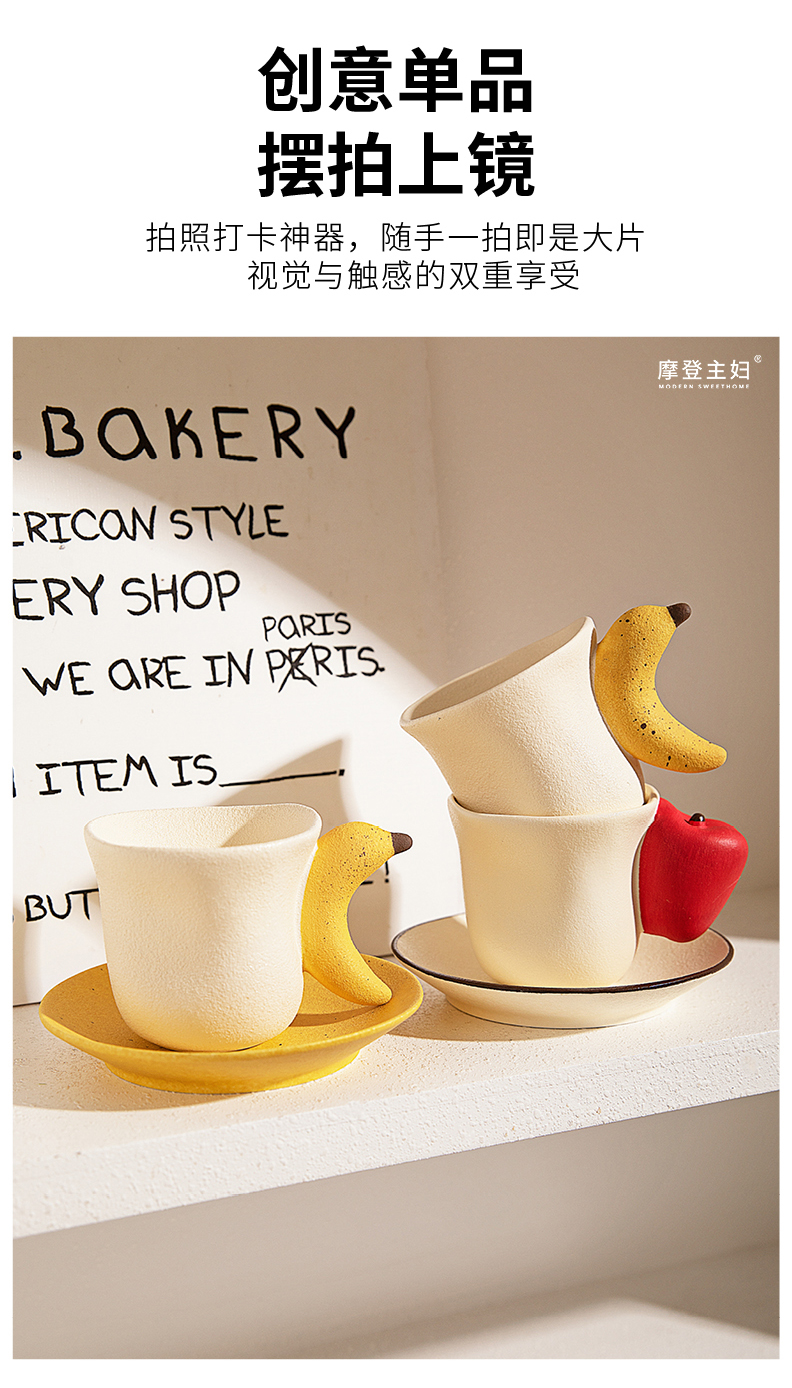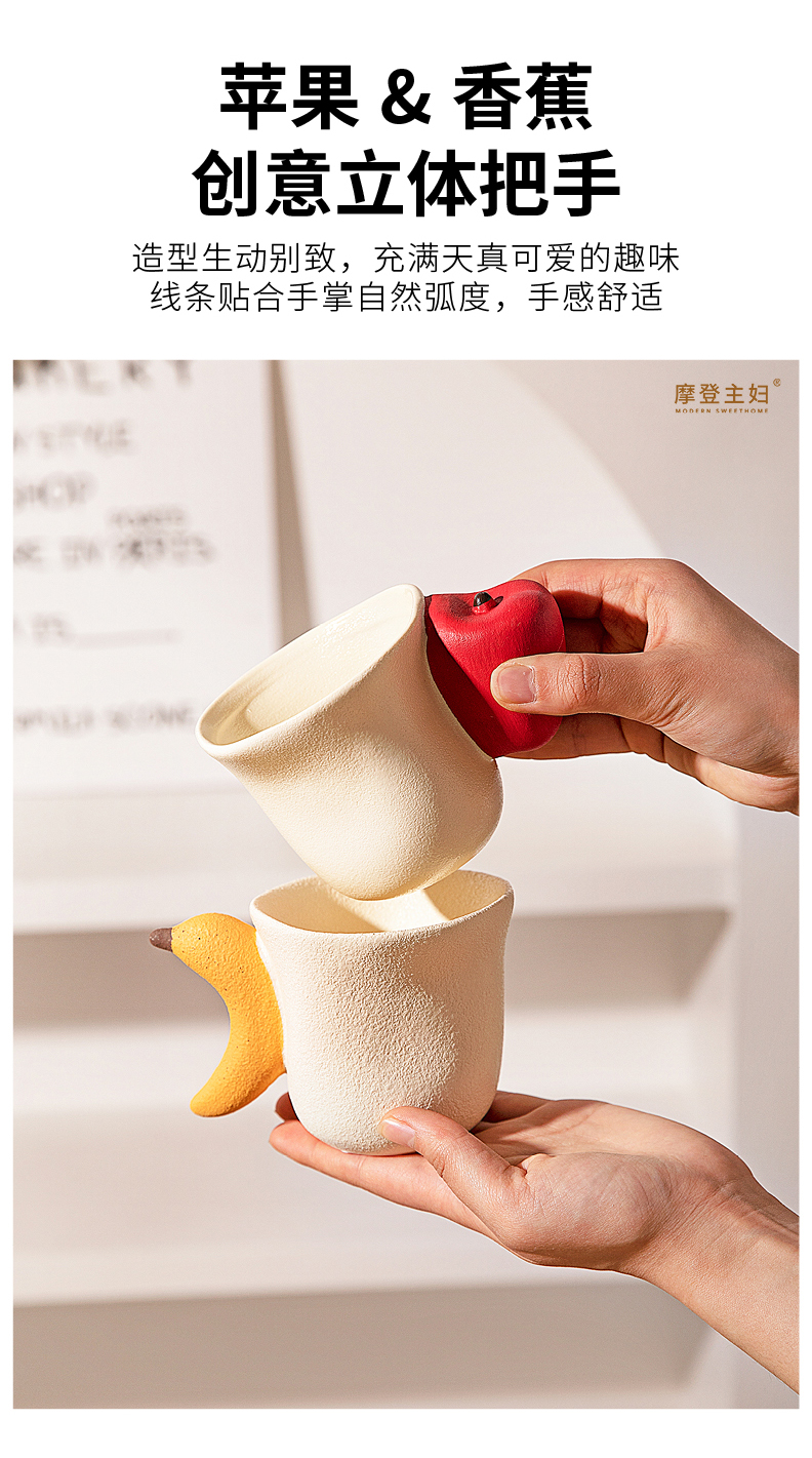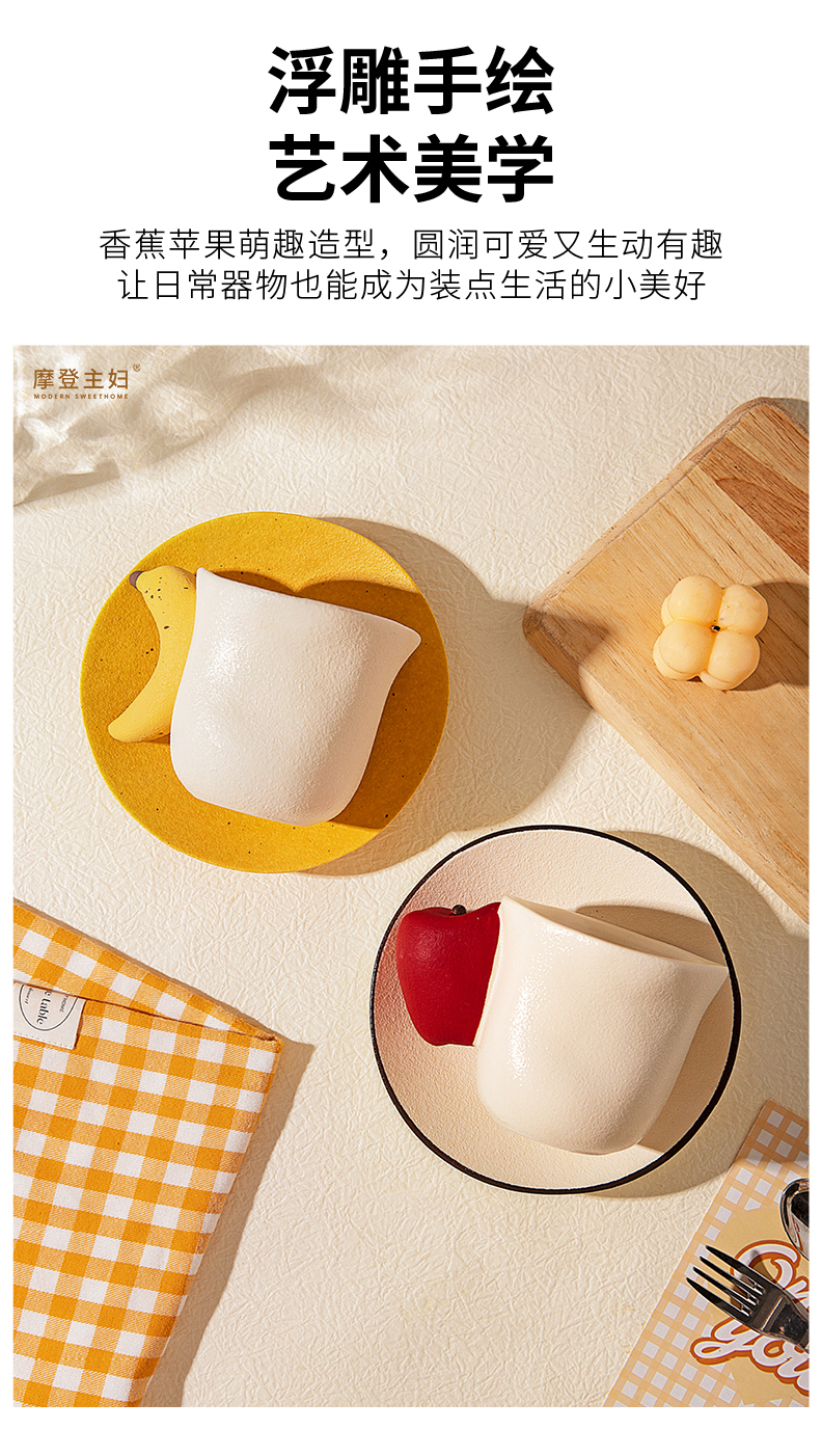 摩登主妇釉下彩咖啡杯香蕉苹果特别好看的杯子家用水杯陶瓷马克杯