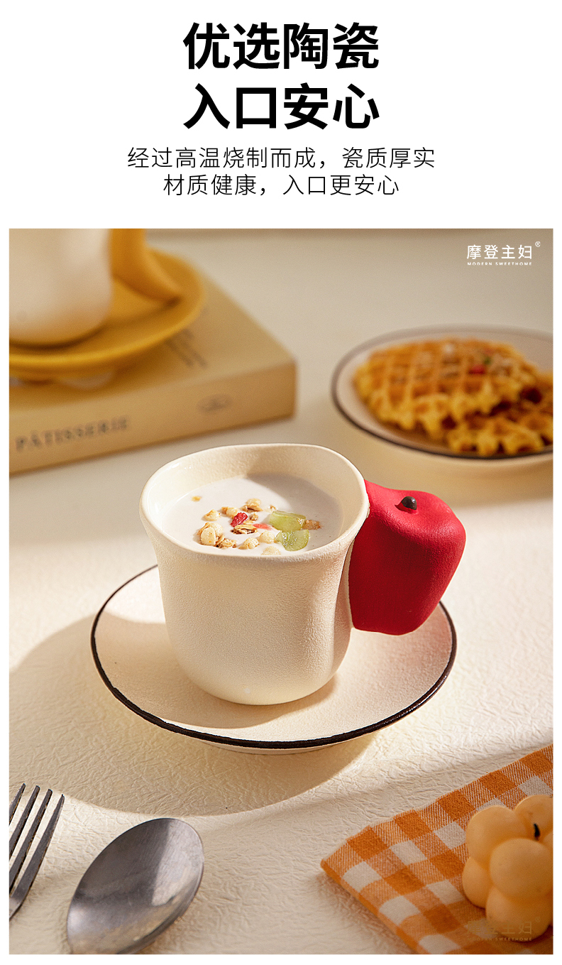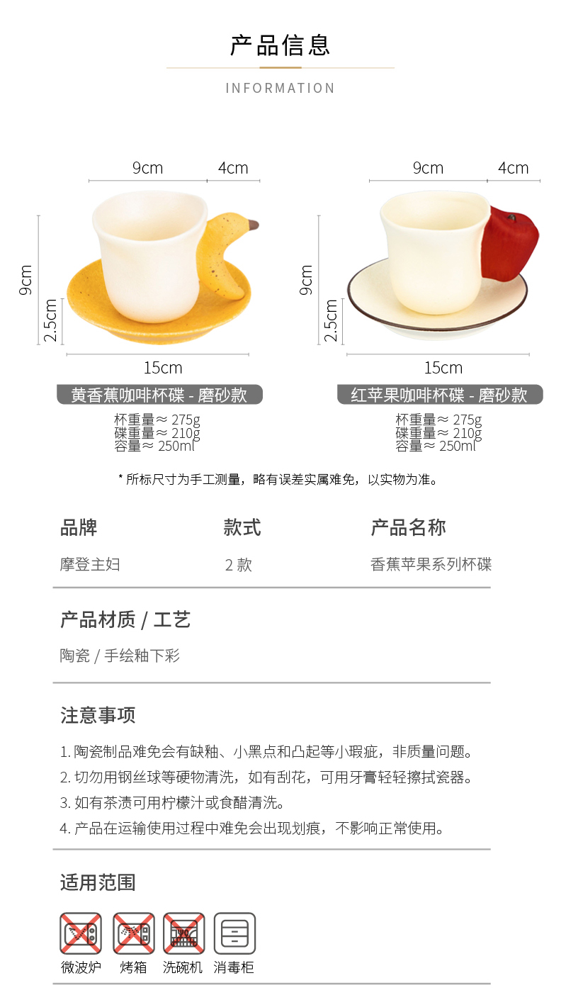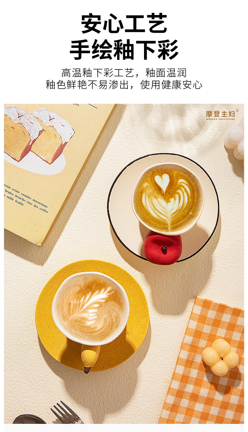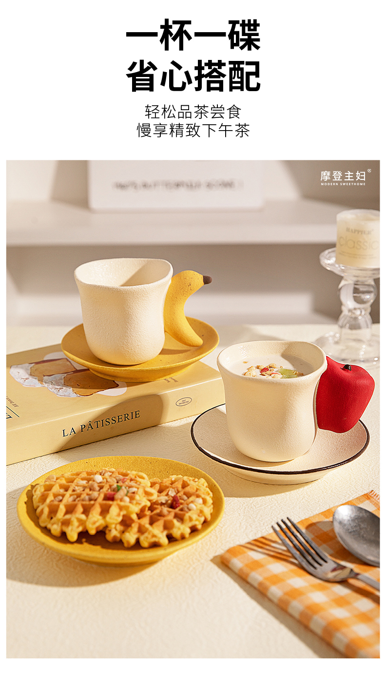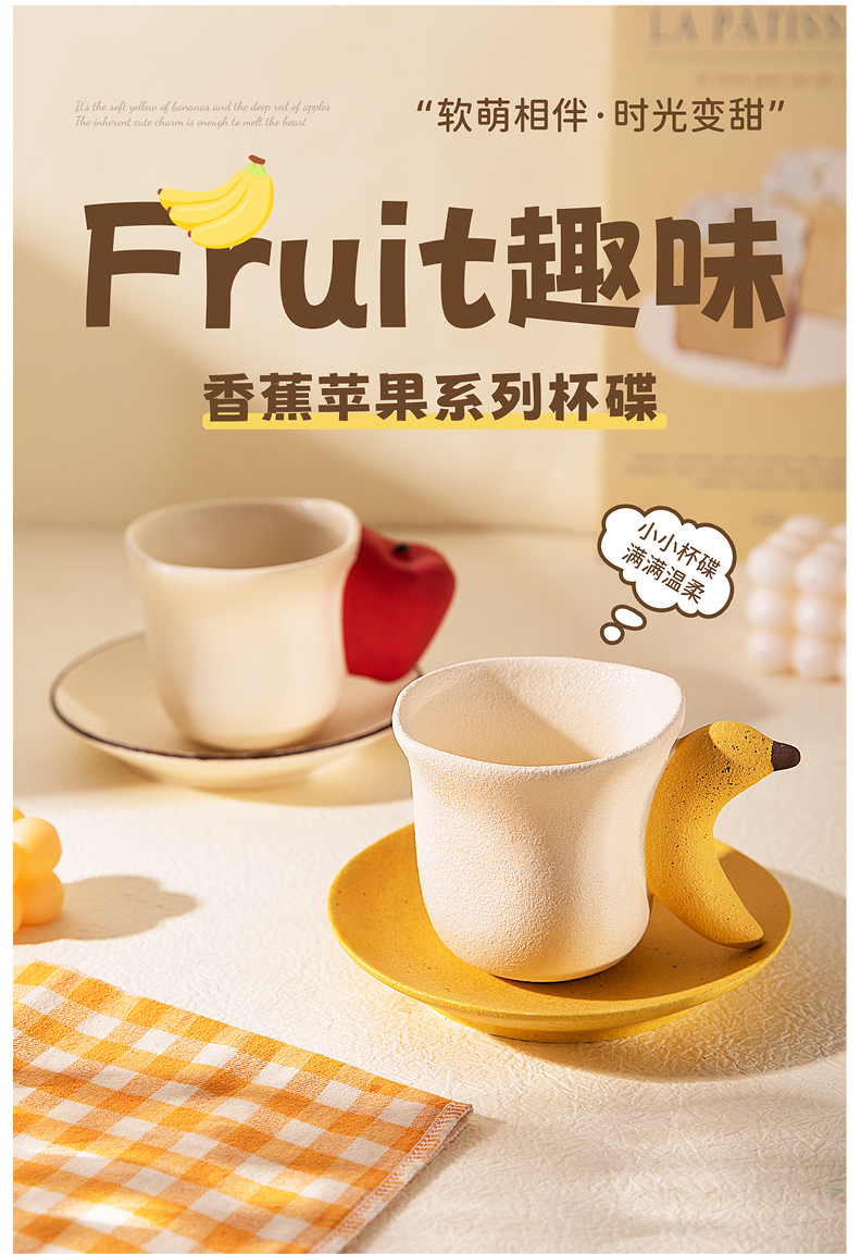 摩登主妇釉下彩咖啡杯香蕉苹果特别好看的杯子家用水杯陶瓷马克杯