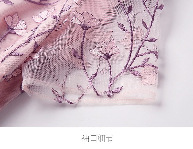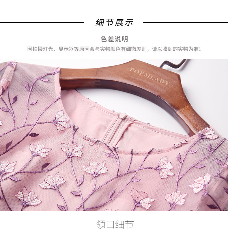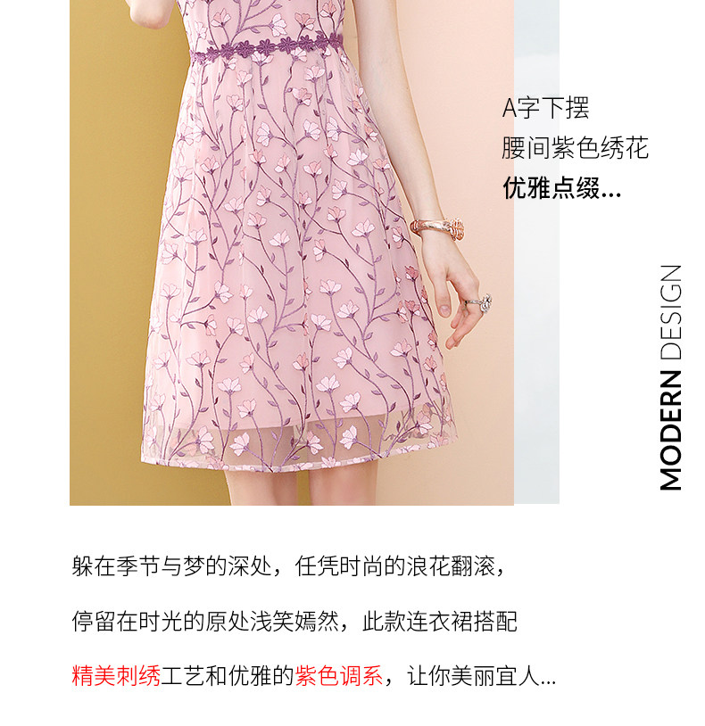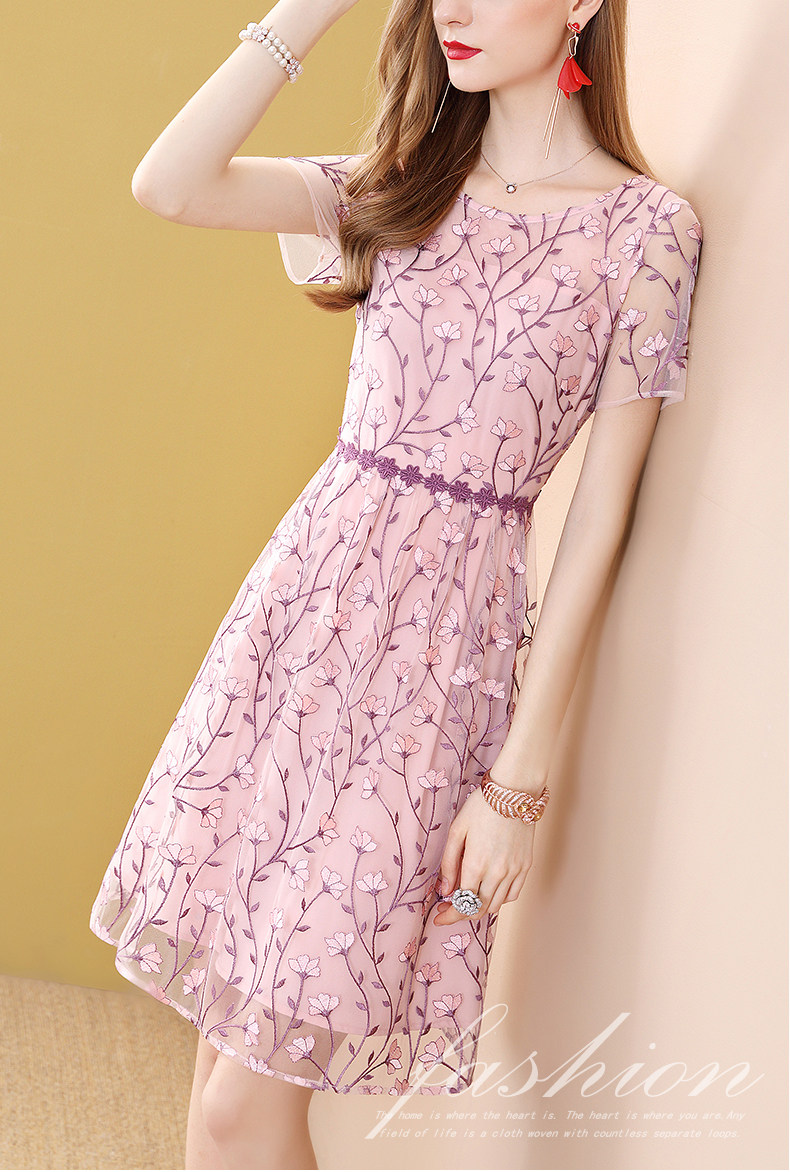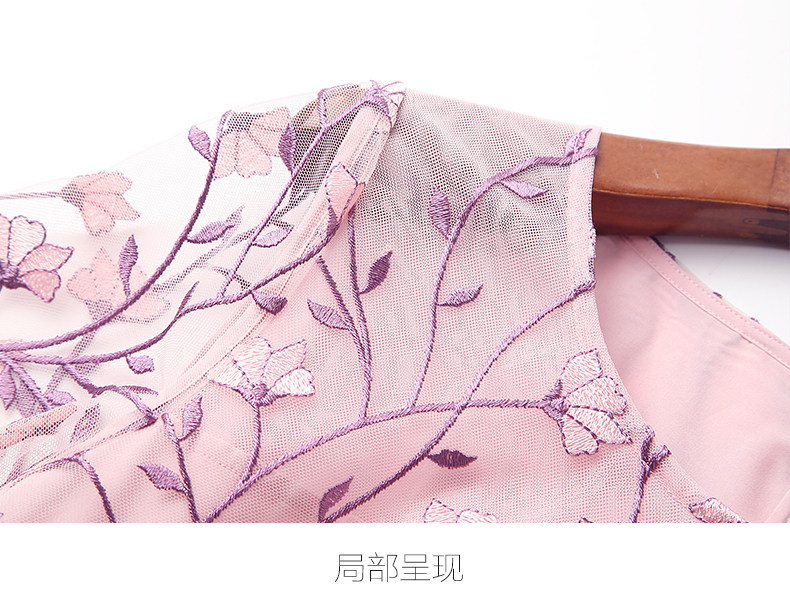 SX-P20X52165夏装新中长款时尚显瘦粉色刺绣连衣裙