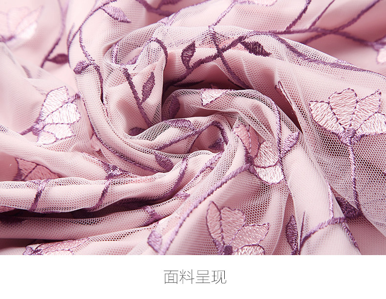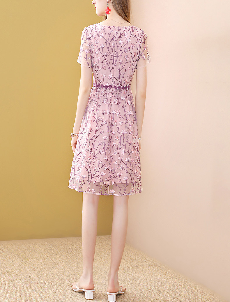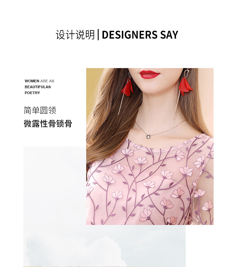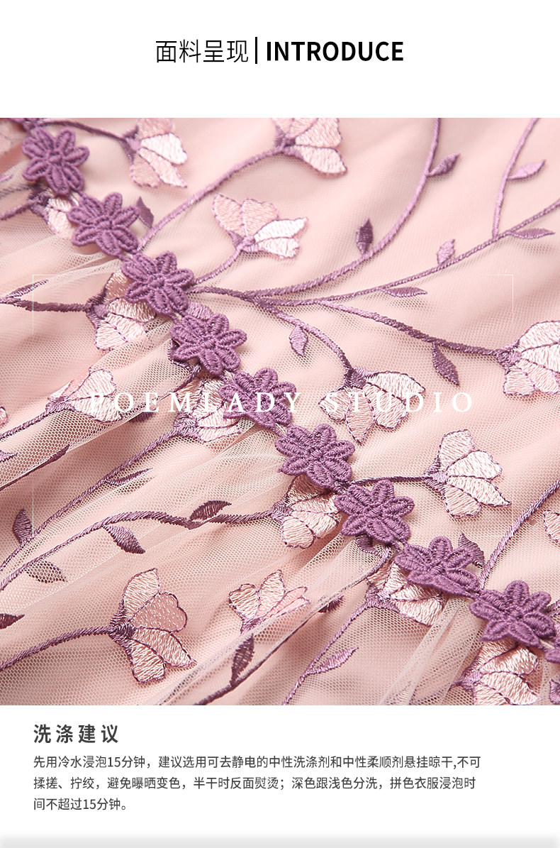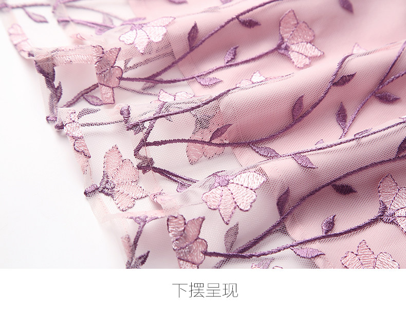 SX-P20X52165夏装新中长款时尚显瘦粉色刺绣连衣裙