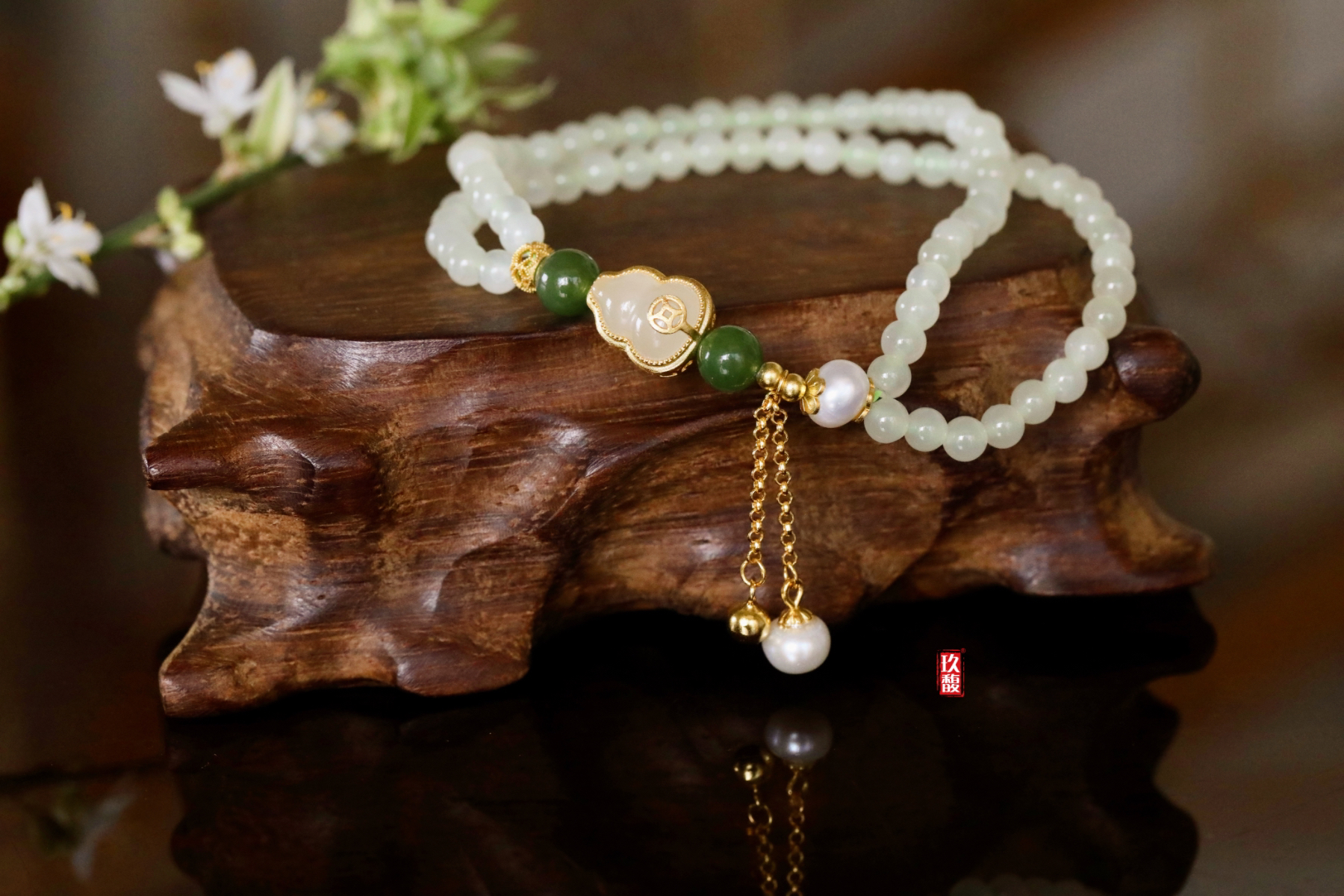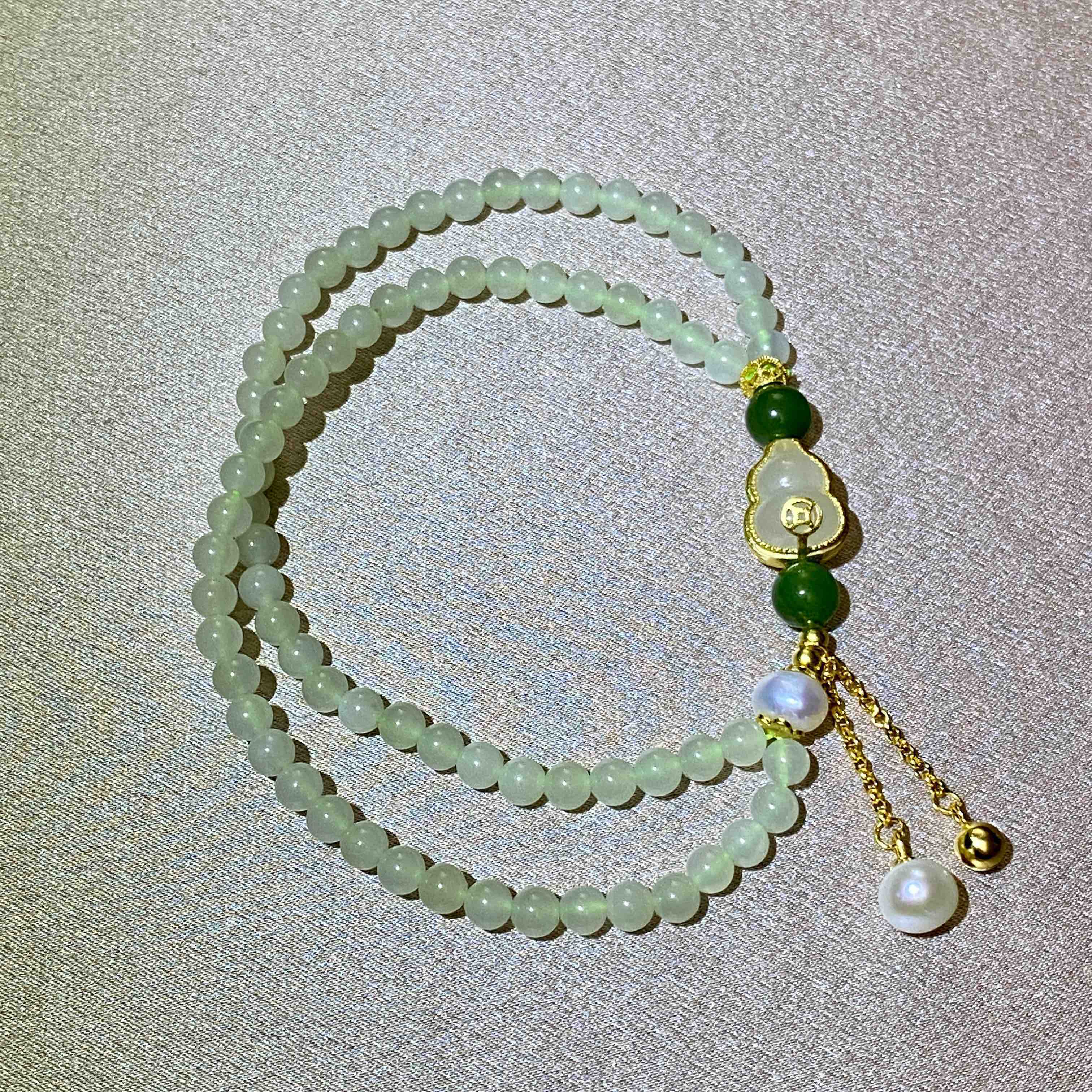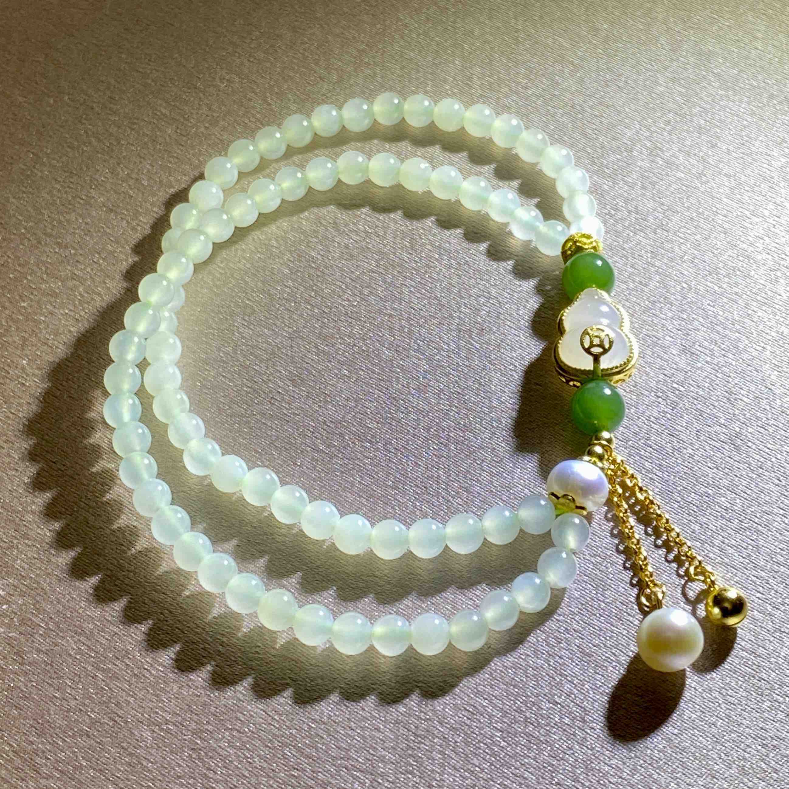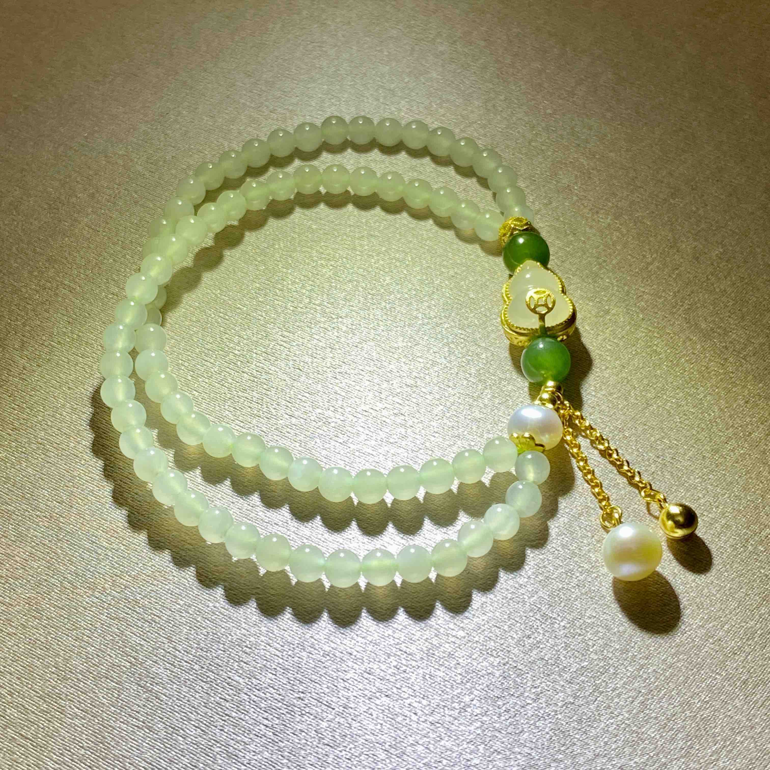 6mm碧玉圆珠、6mm珍珠滴流等