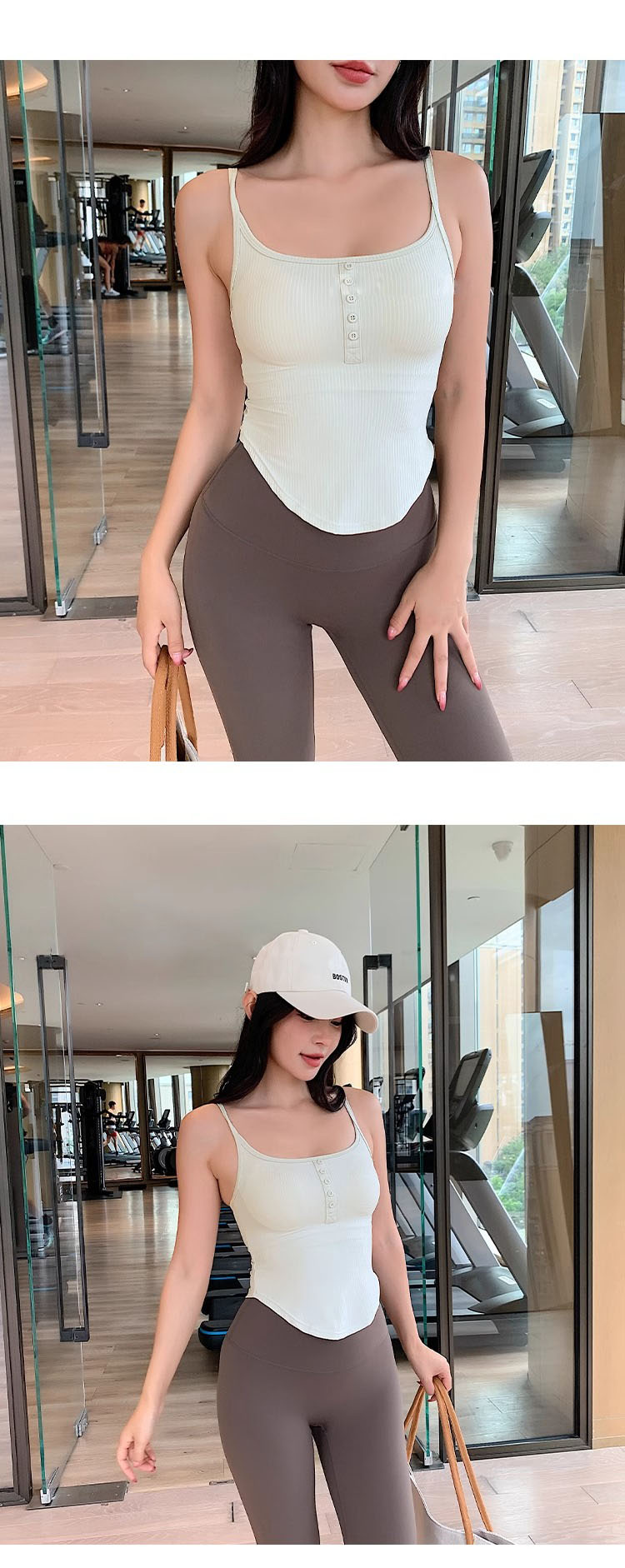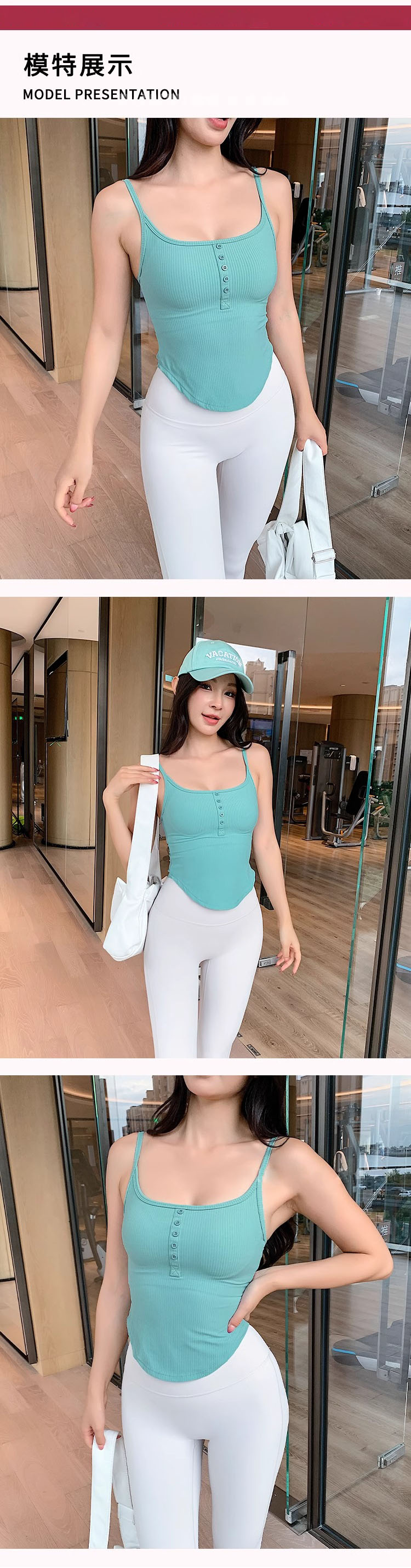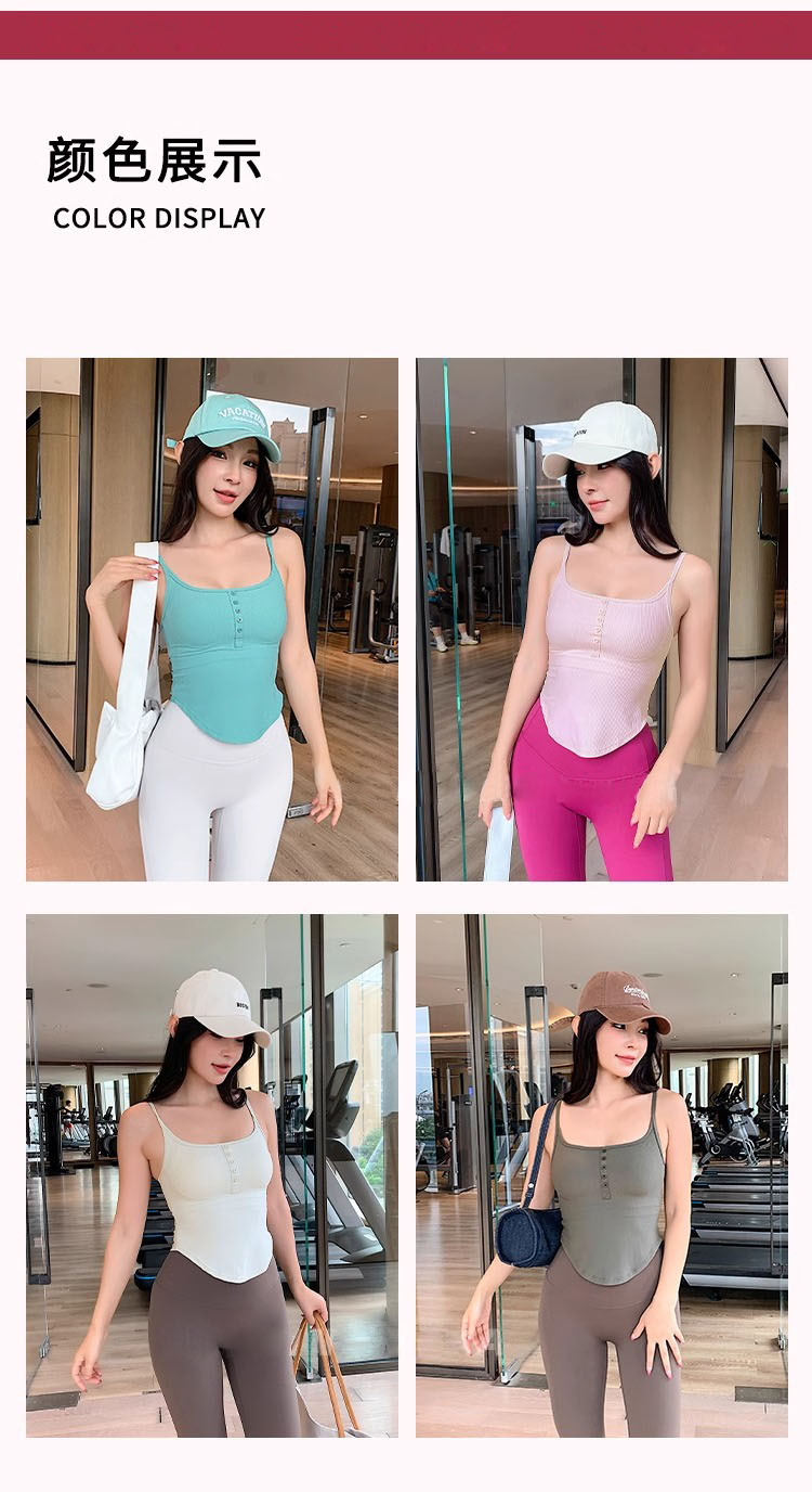 跃牌【周游世界系列】2024秋冬新款螺纹细肩带固定杯运动内衣纽扣U领瑜伽内衣BR1571