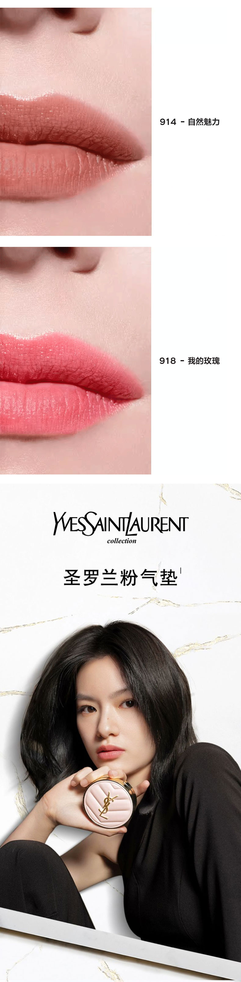 【随行彩妆2件套】CHANEL香奈儿可可小姐 白管口红小样1.5g +圣罗兰粉皮革气垫5g 香港直邮