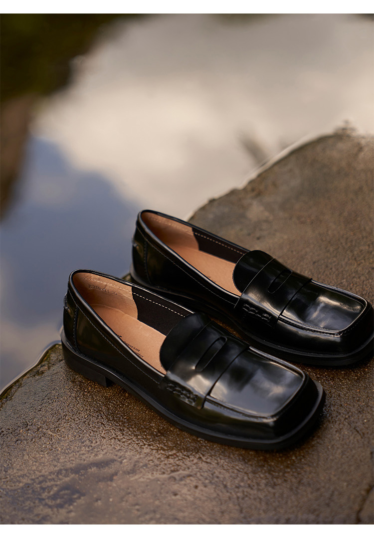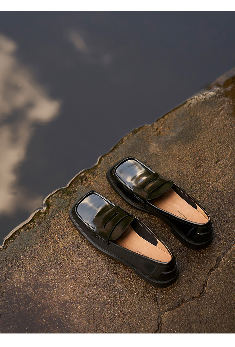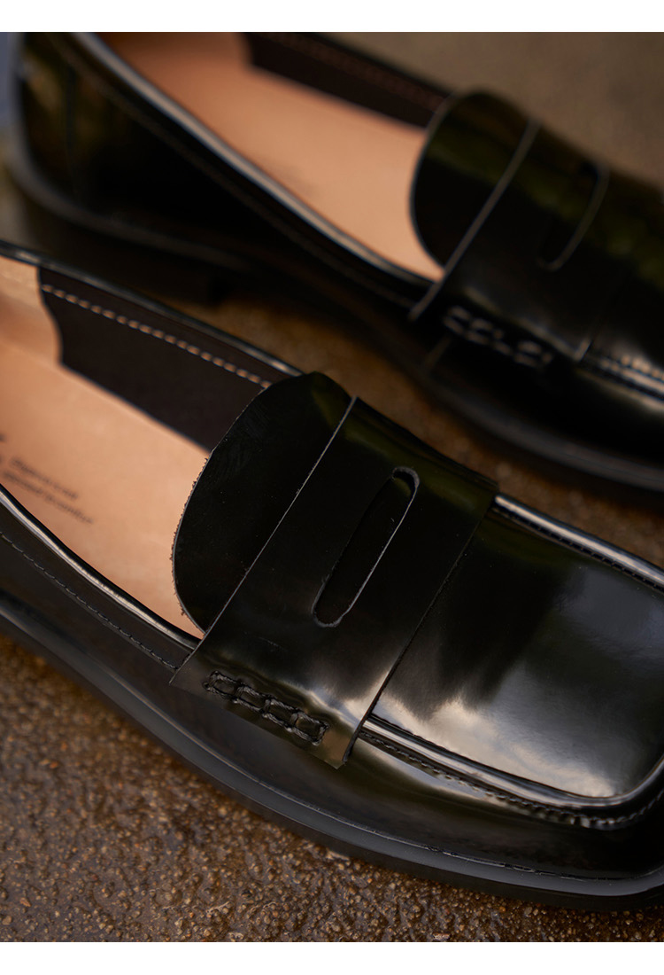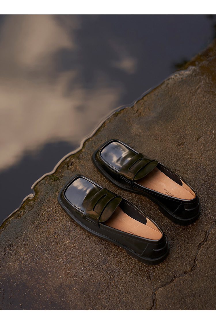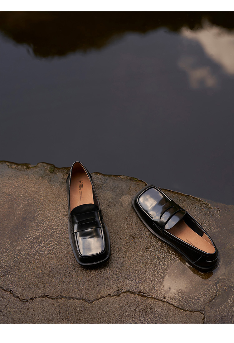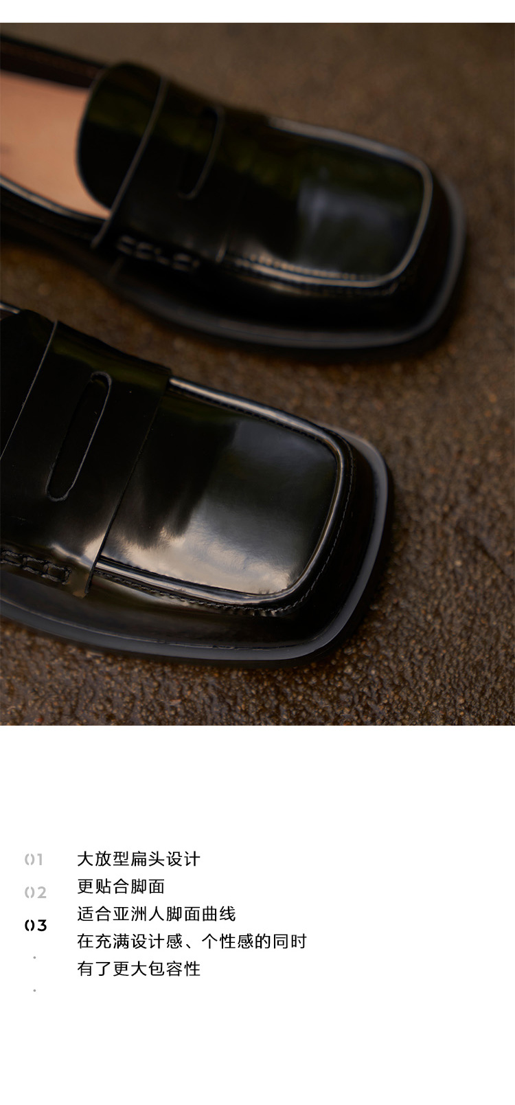 Le' Murmure 阿根廷牛皮亮面时髦复古方头乐福鞋便士鞋女春夏款