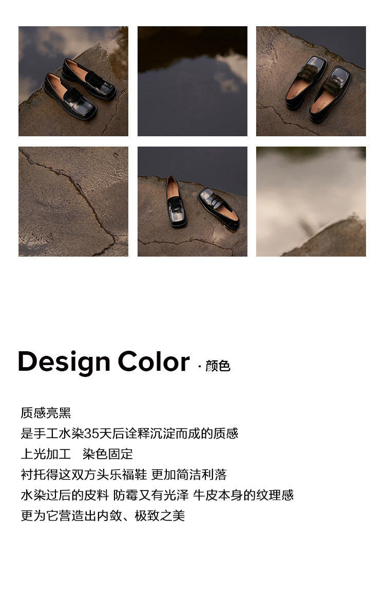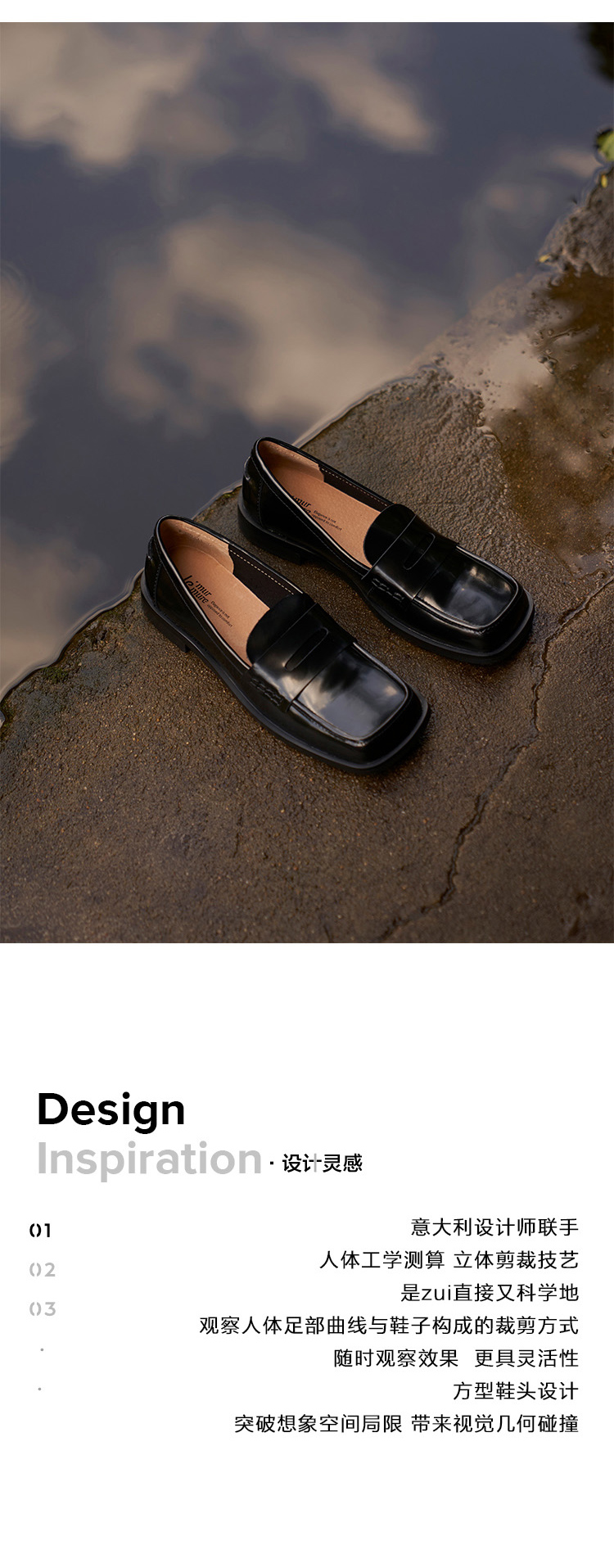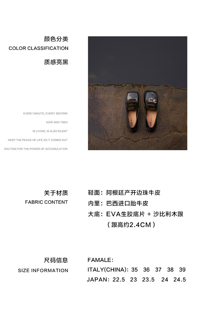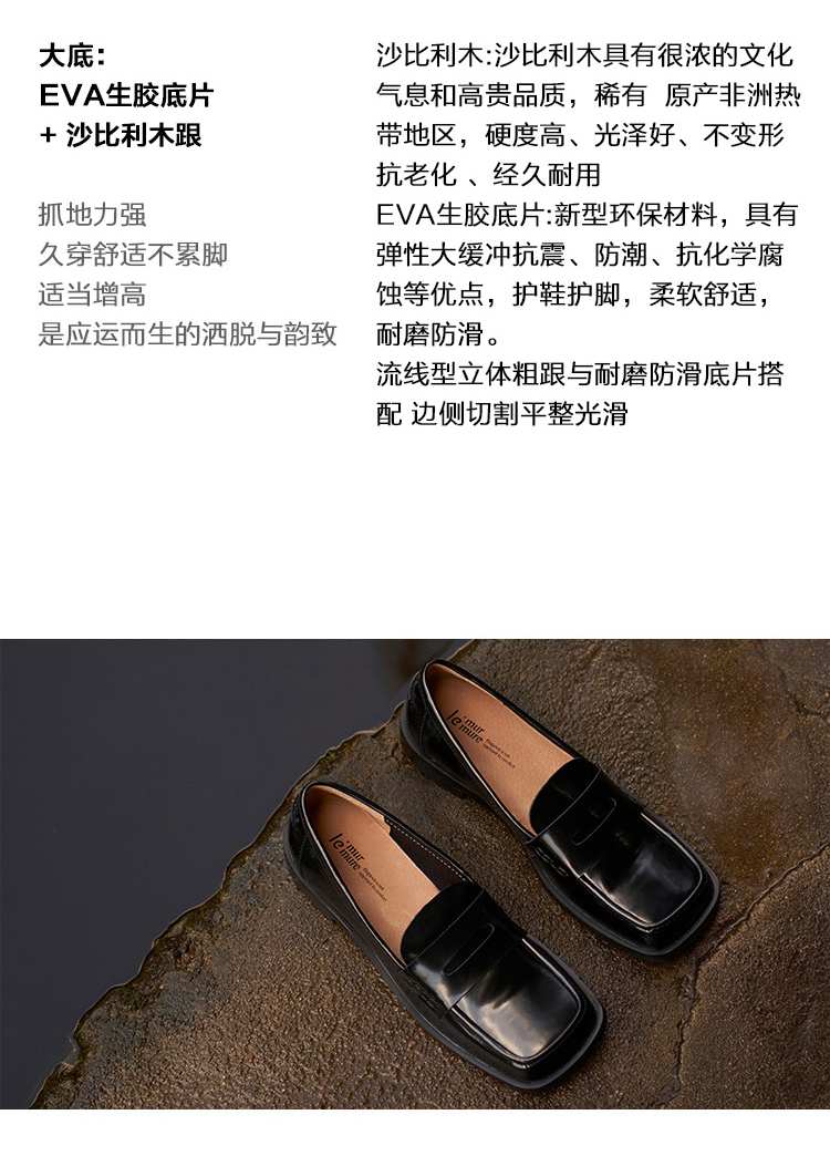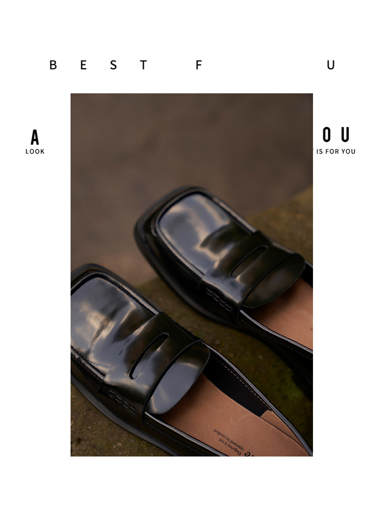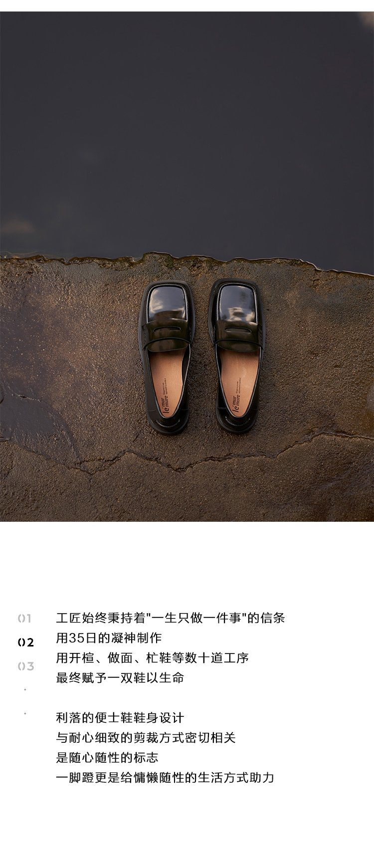 Le' Murmure 阿根廷牛皮亮面时髦复古方头乐福鞋便士鞋女春夏款