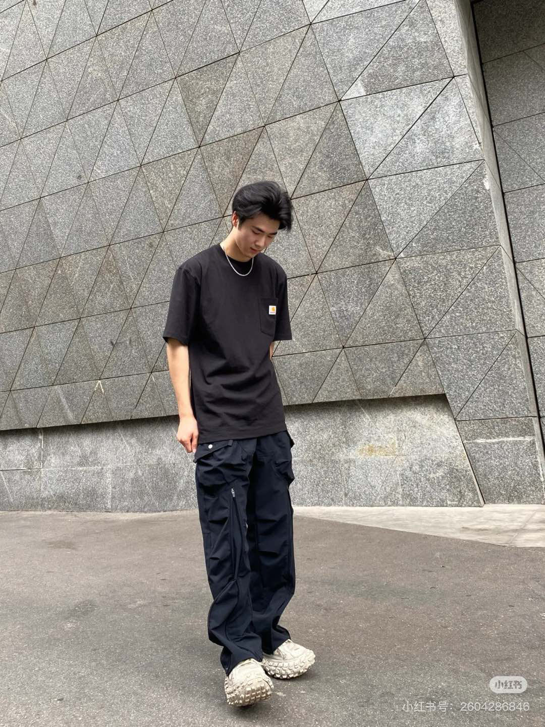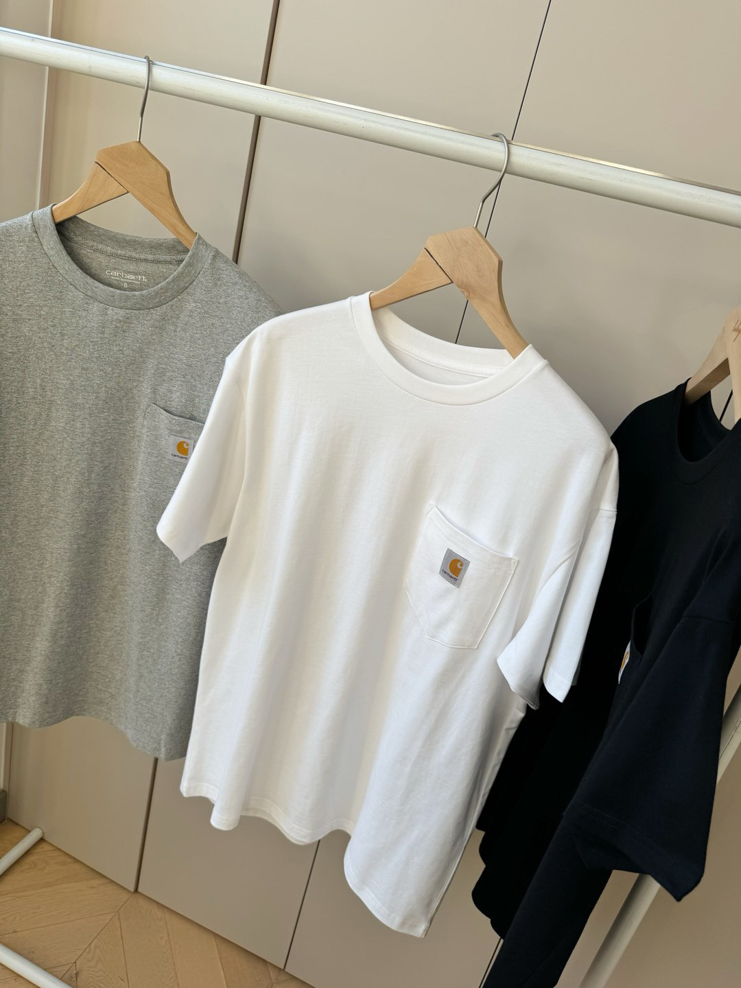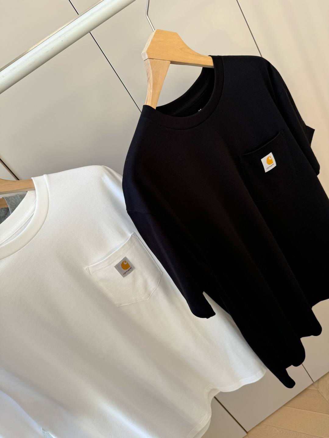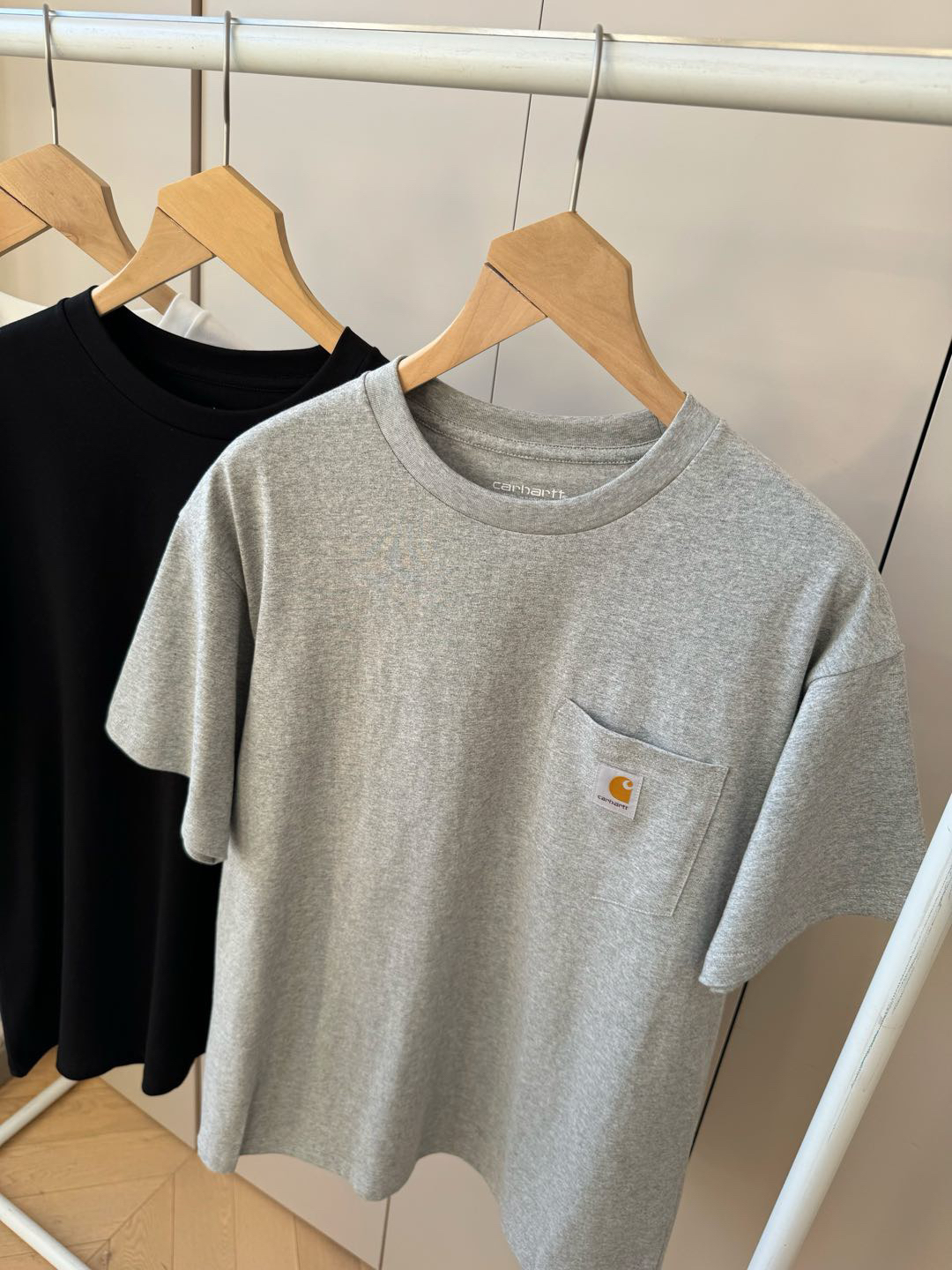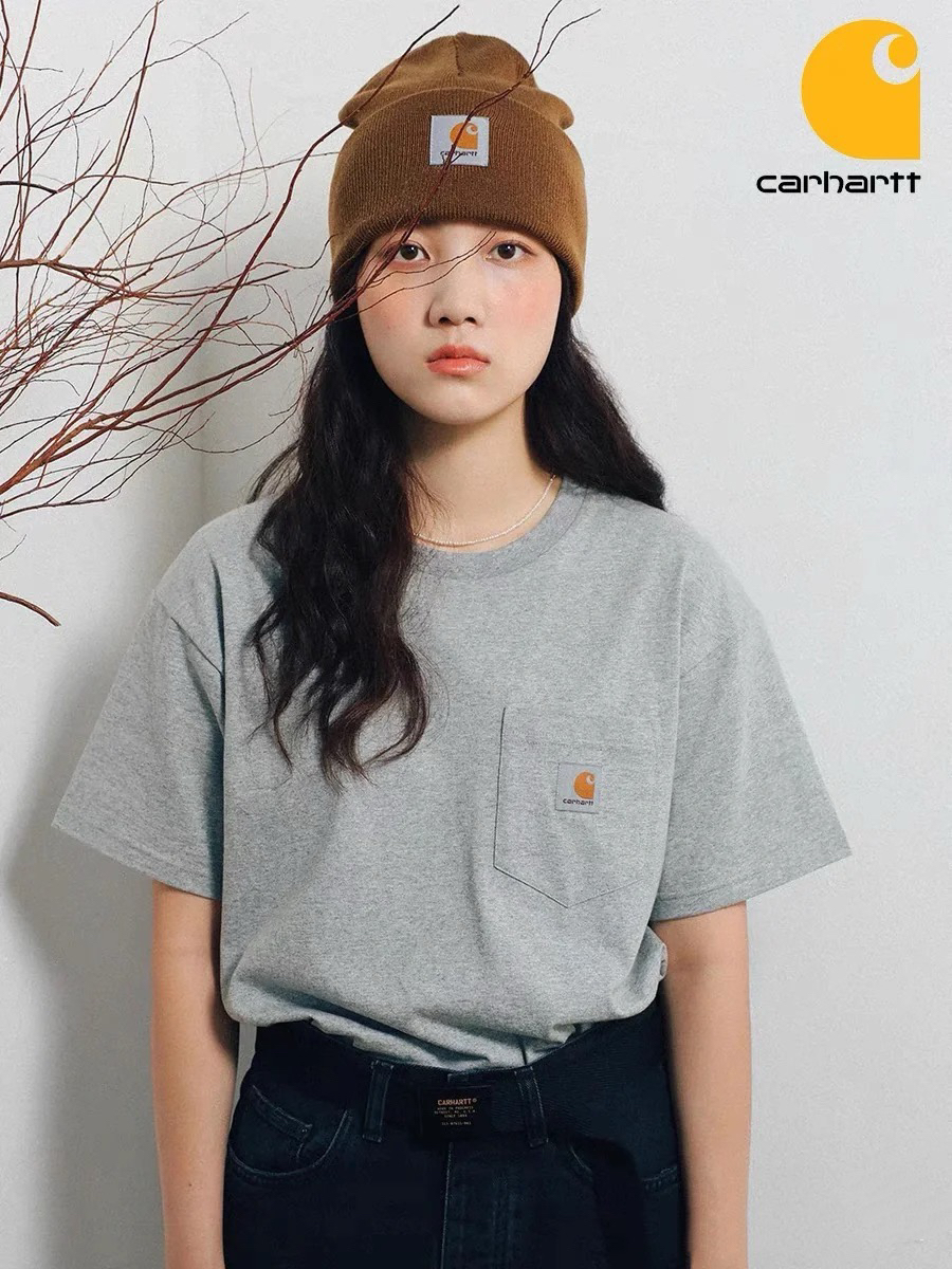 黑色就非常非常的酷,这个品牌的每一款衣服都超级好看!百年经典工装品牌卡哈特,简单圆领的设计,做工非常非常好,口袋三角车线固定,口袋上面经典ch装饰标,通肩拉条工艺,非常耐穿,版型宽松,男女同款!