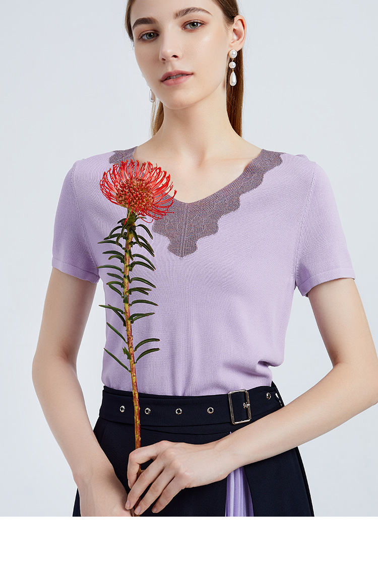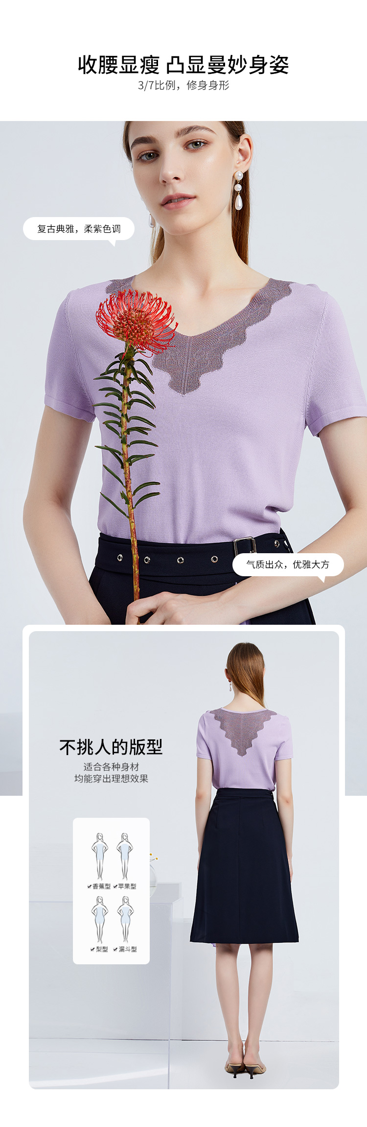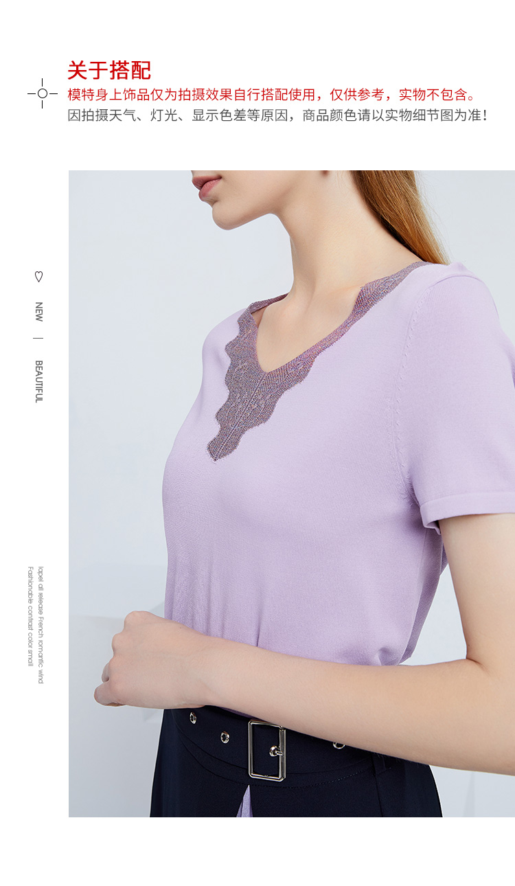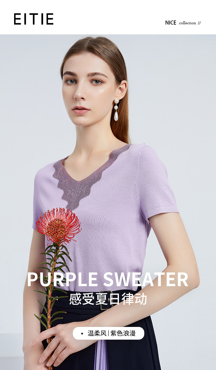 EITIE爱特爱简约基础款舒适弹力修身半袖针织衫通勤百搭夏新款B2301120