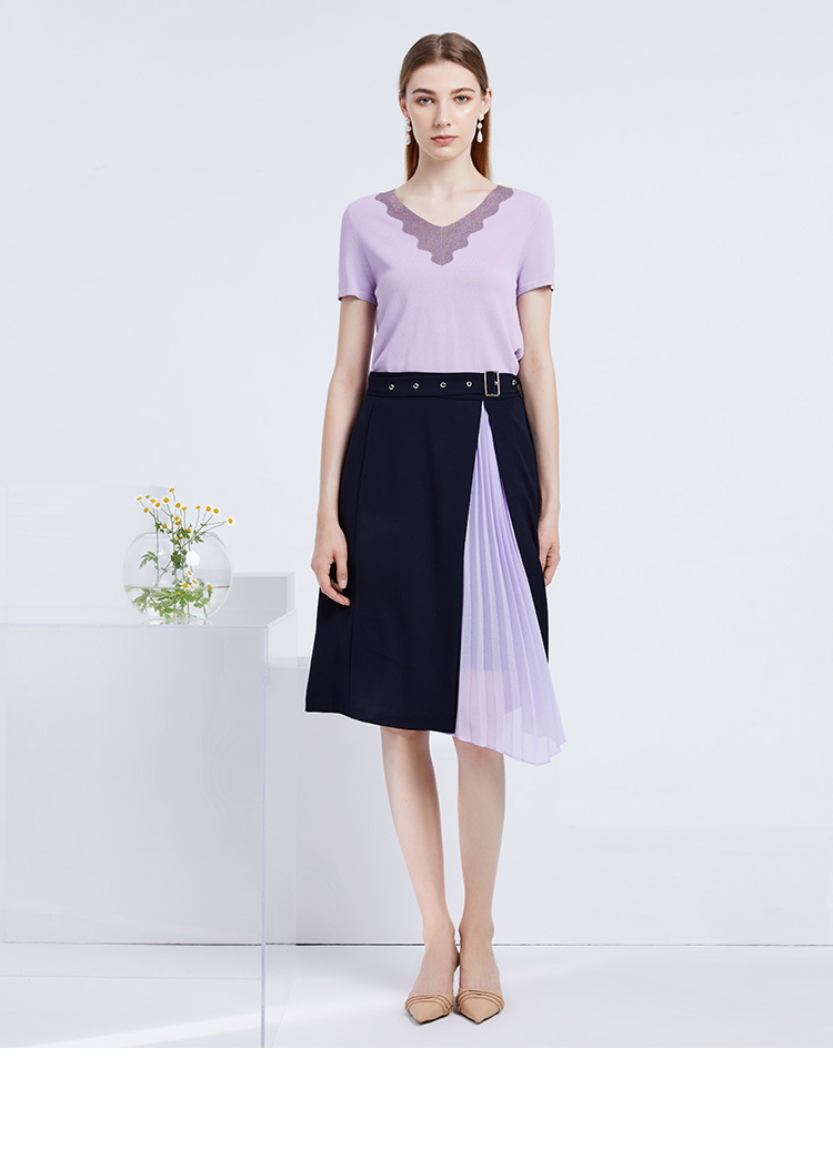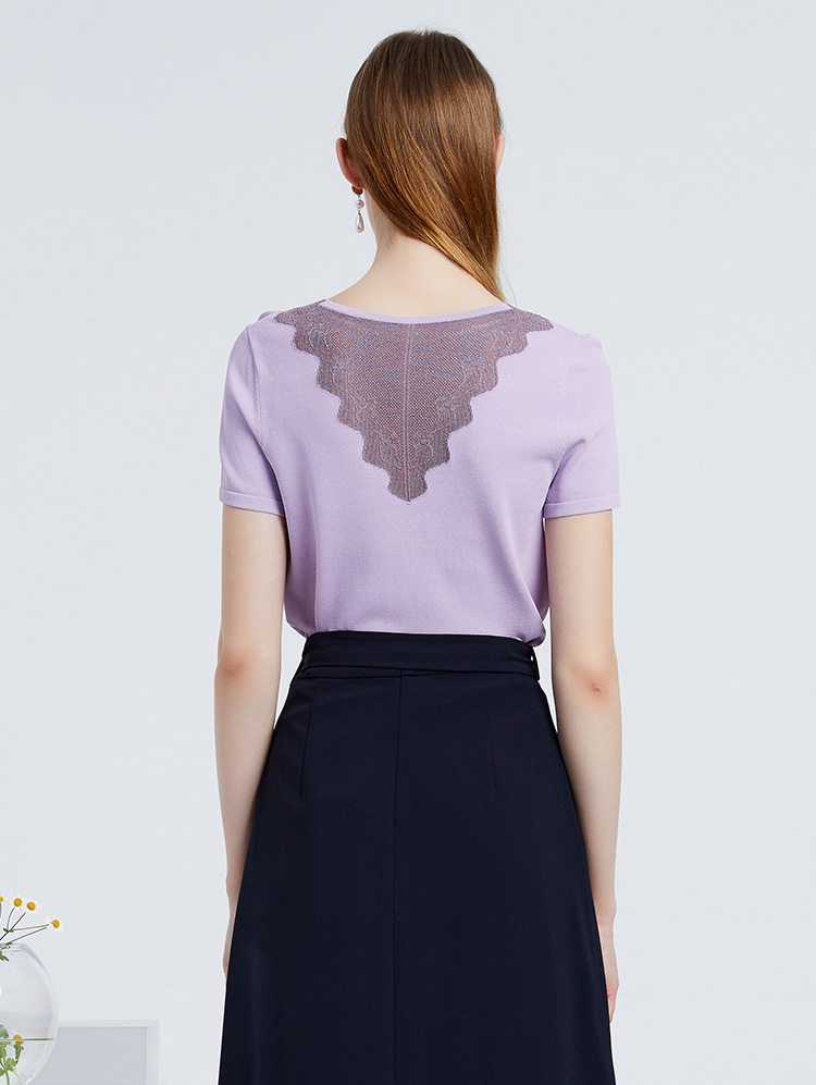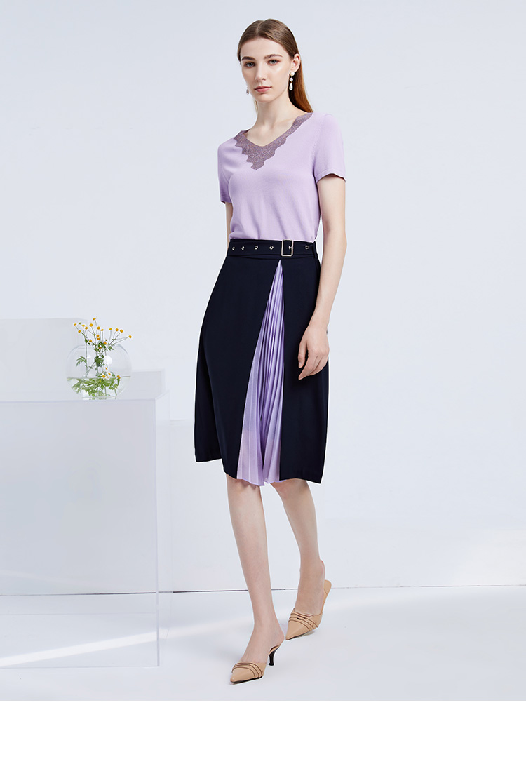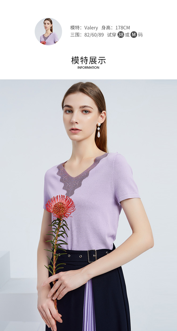 EITIE爱特爱简约基础款舒适弹力修身半袖针织衫通勤百搭夏新款B2301120