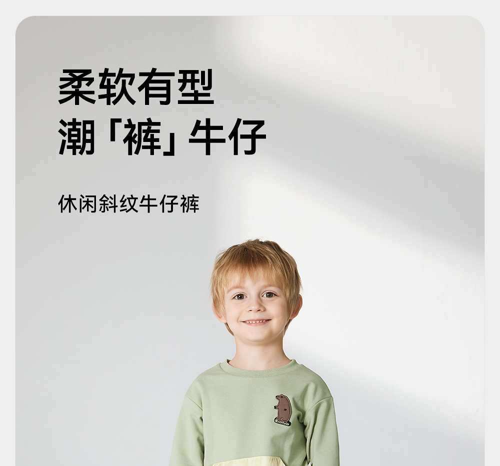 【商场同款】英氏儿童裤子春夏男童斜纹牛仔裤纯棉时尚百搭裤子