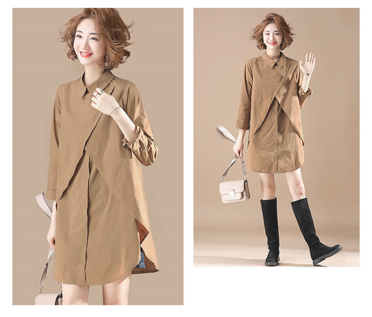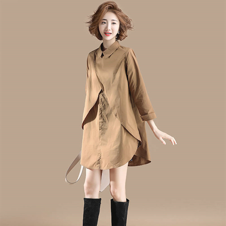 HT-1041 含棉浅布调chic春秋衬衫裙2020新款长袖中长款韩范大码宽松上衣女