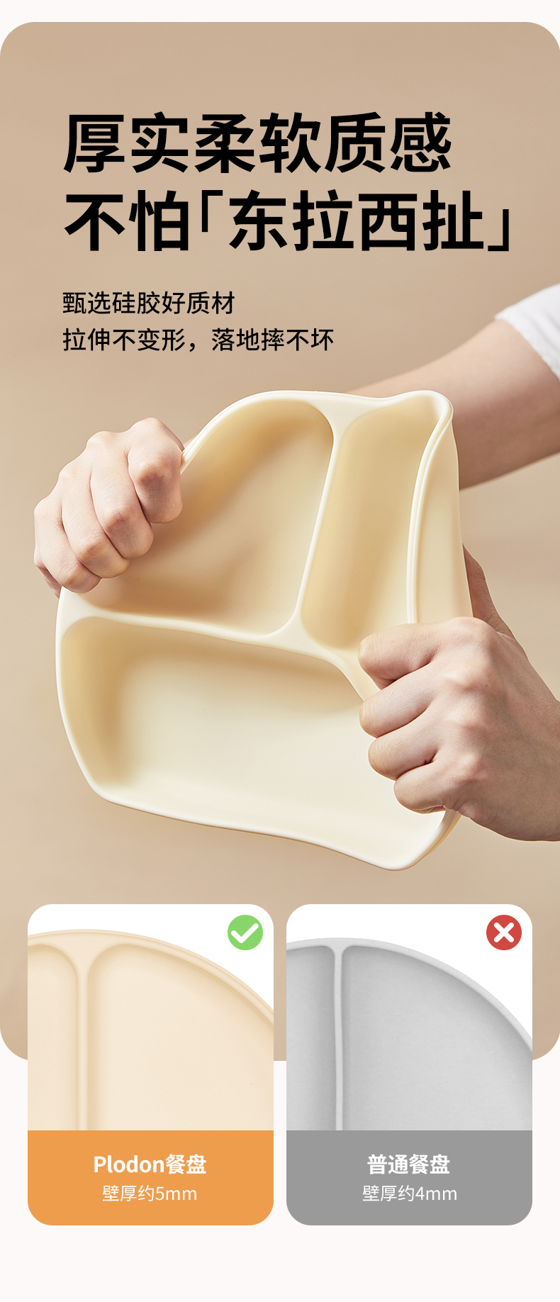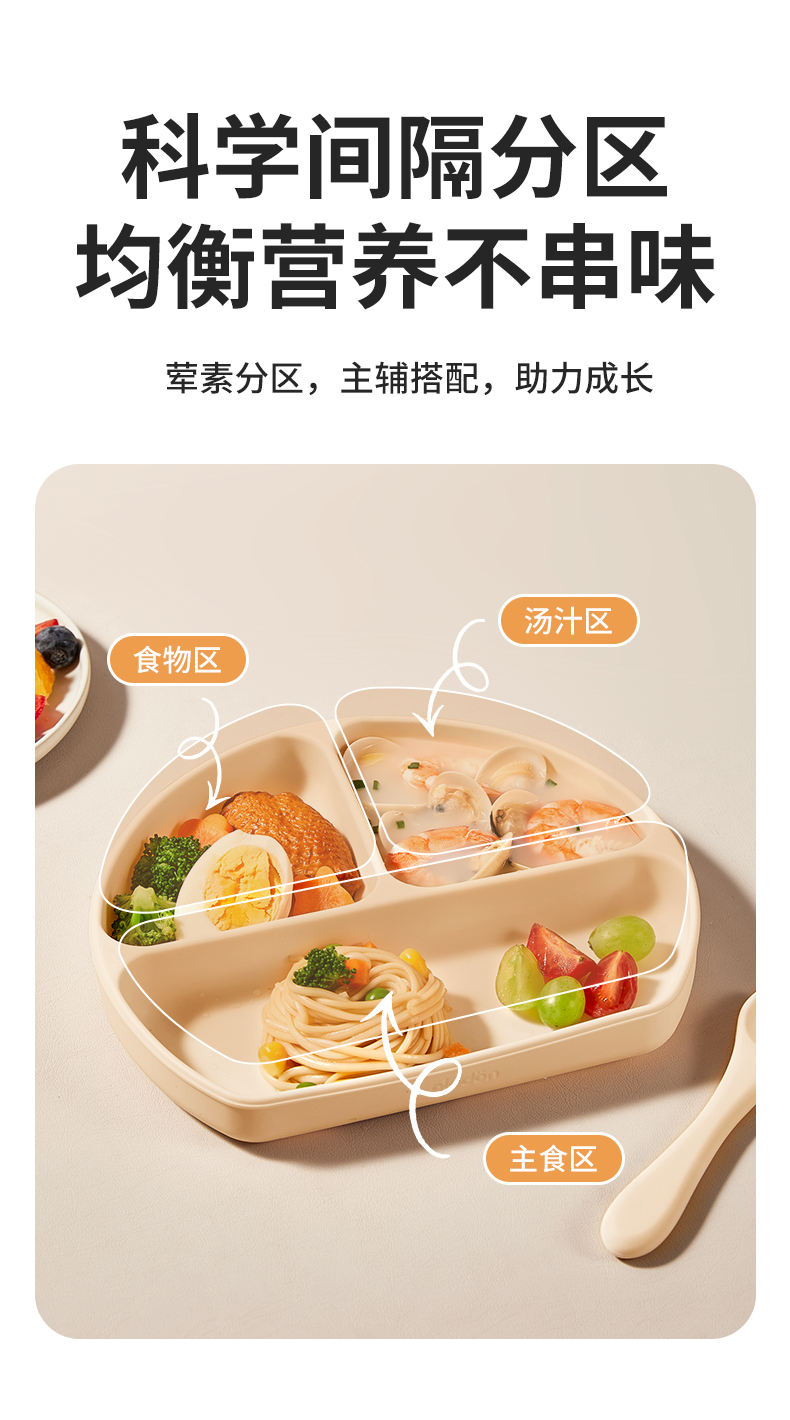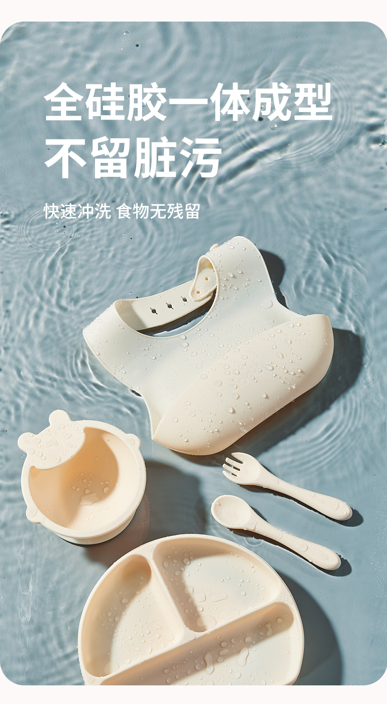 plodon浦利顿宝宝五件套辅食碗分格辅食餐盘吃饭围兜硅胶叉勺餐具套装