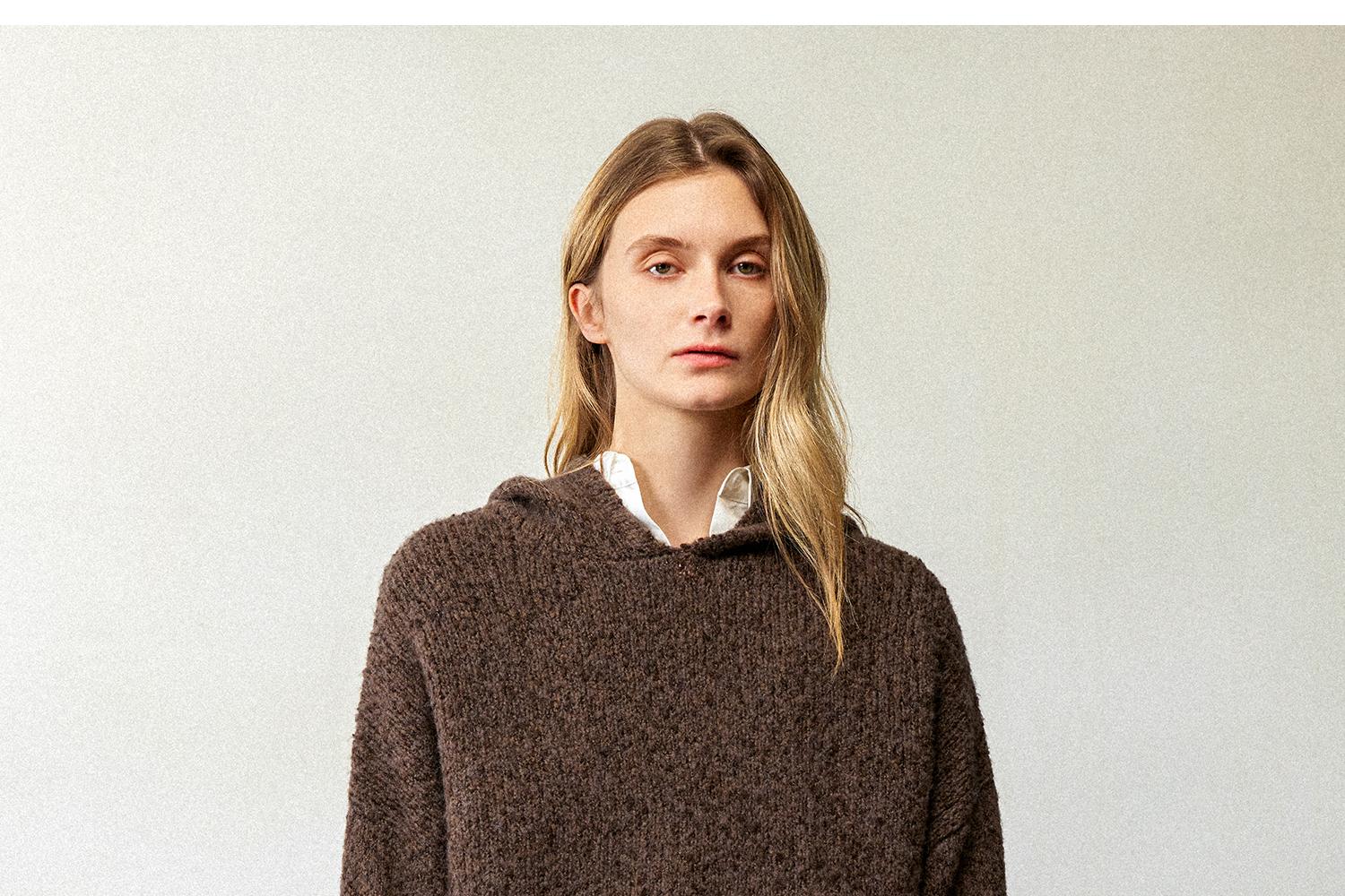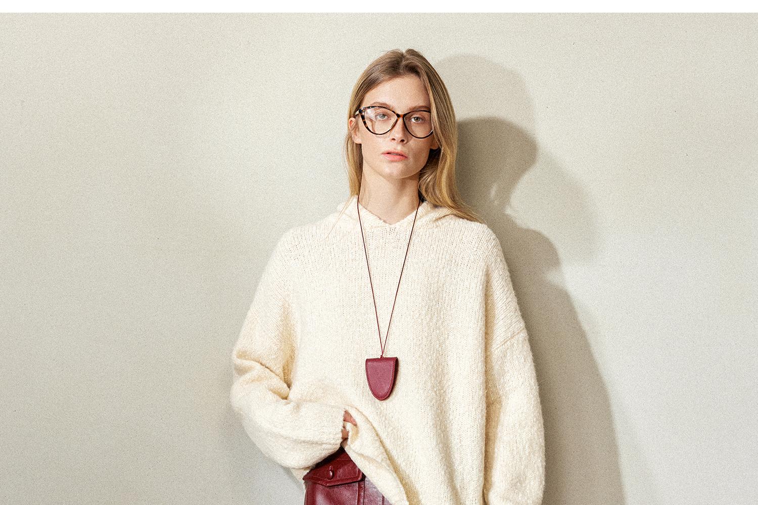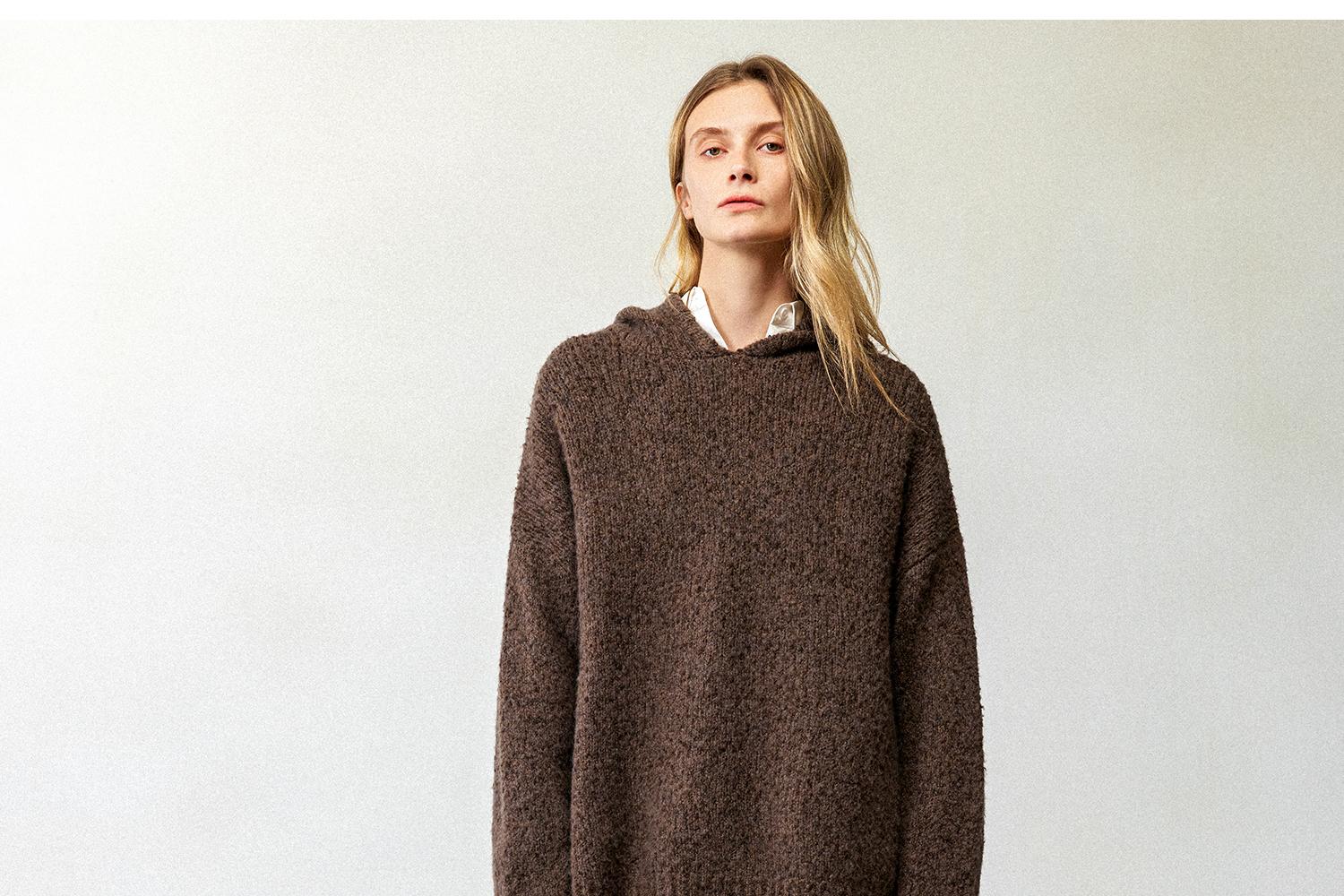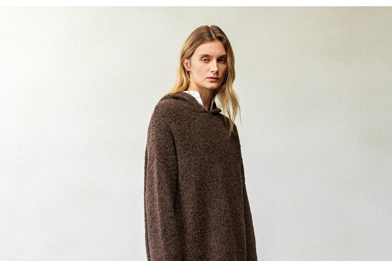 CIMPRESS/西嘉羊毛豆豆纱单面编织连帽宽松百搭毛衣女秋冬季新款(货号:MY2404082)