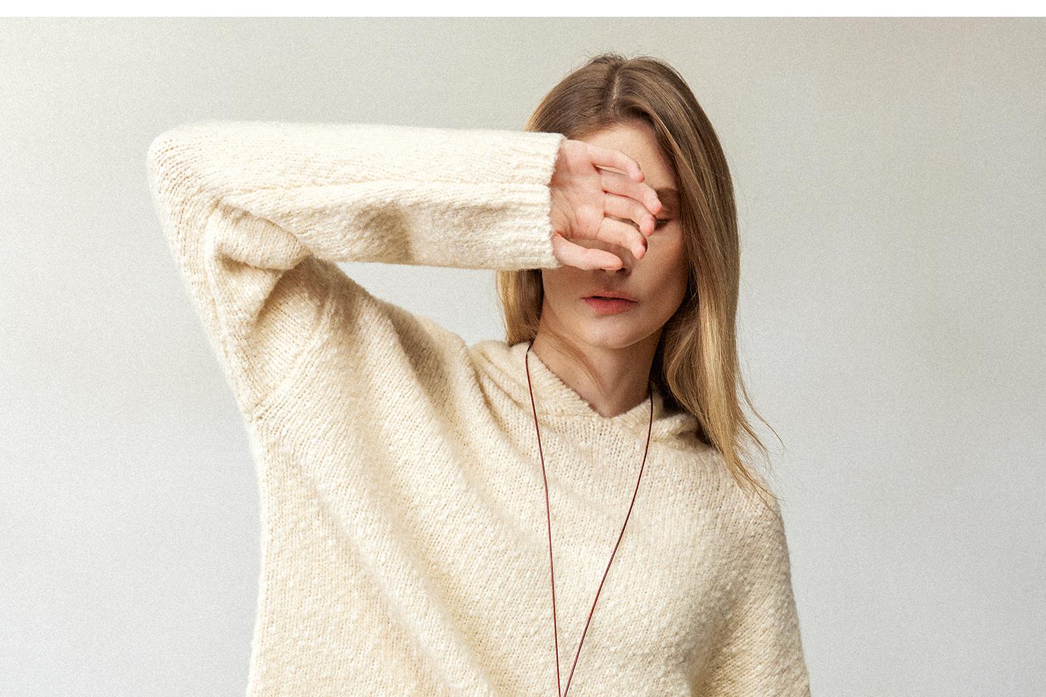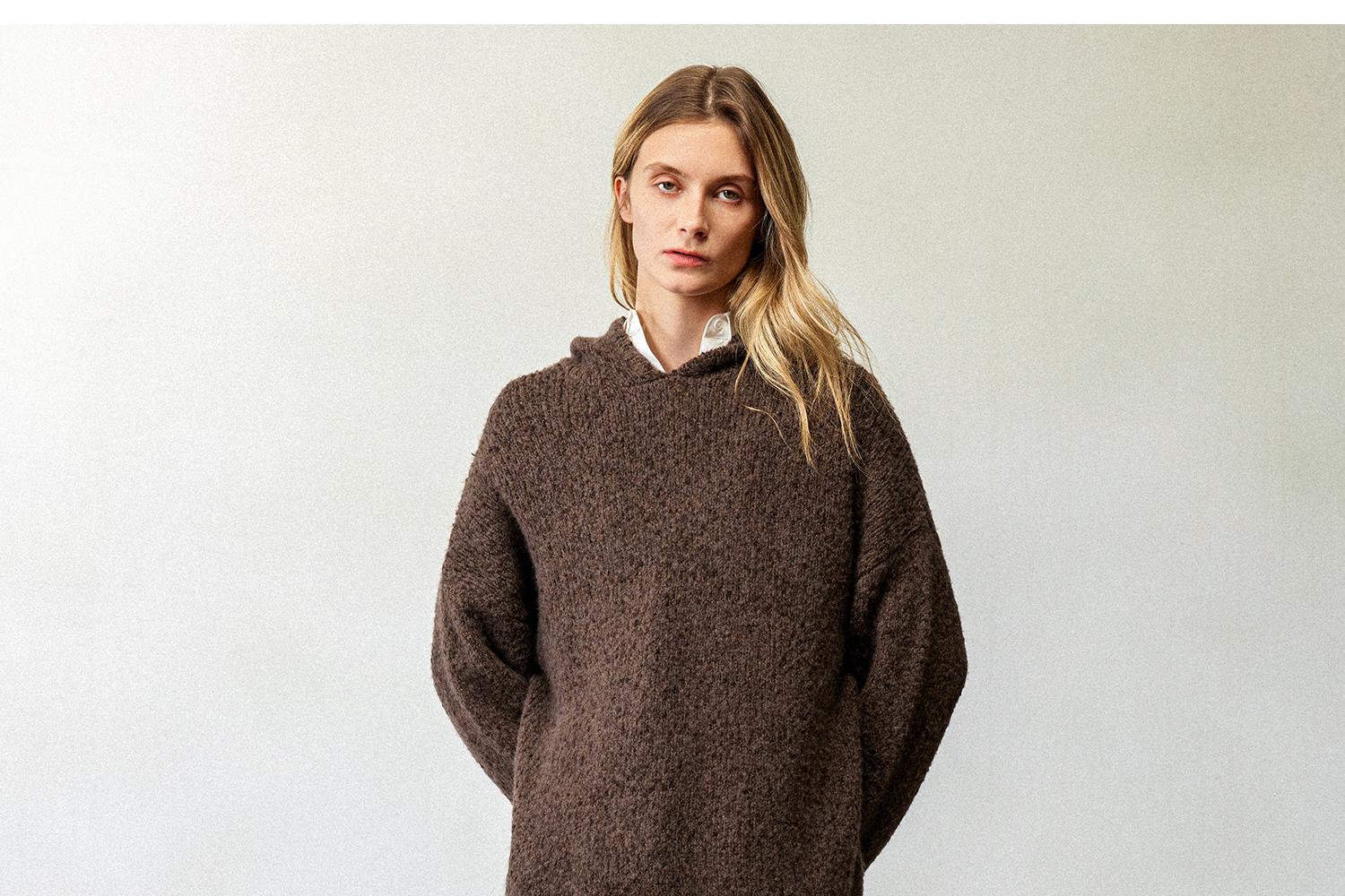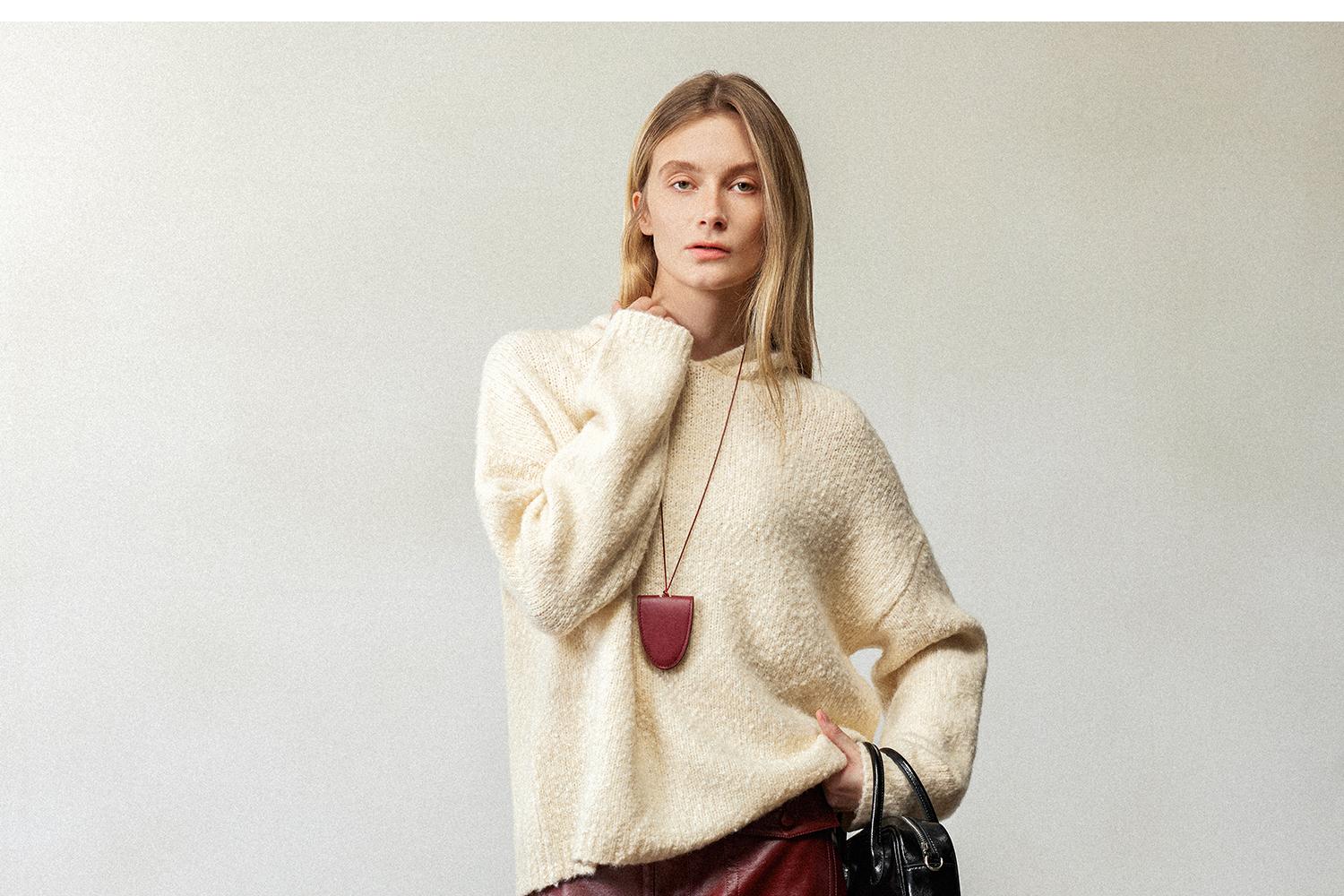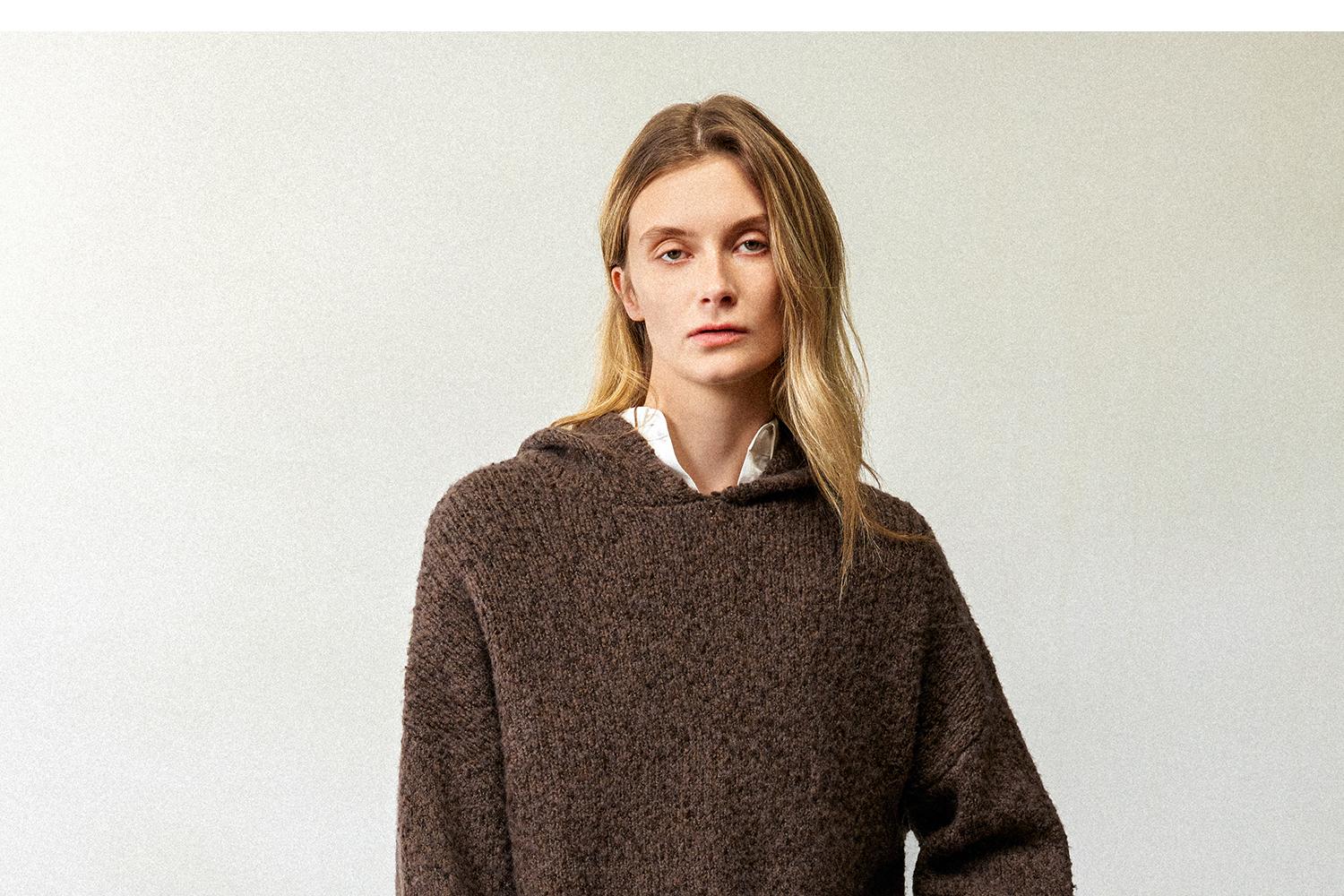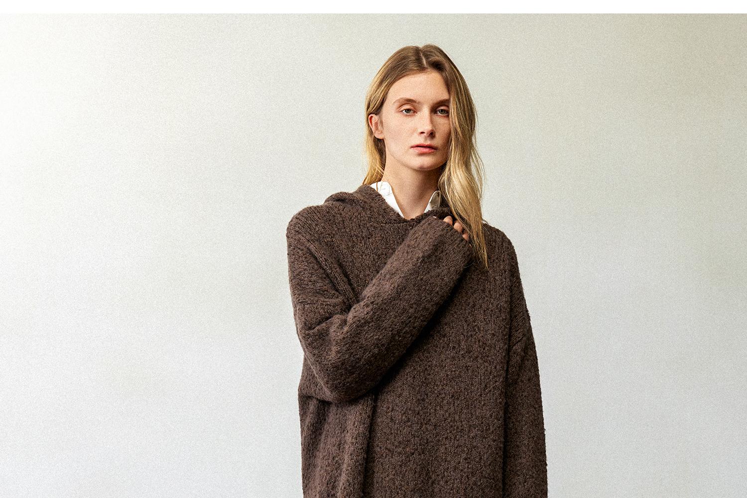 CIMPRESS/西嘉羊毛豆豆纱单面编织连帽宽松百搭毛衣女秋冬季新款(货号:MY2404082)