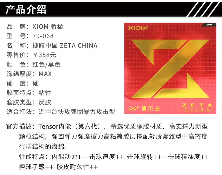 XIOM骄猛 ZETA捷踏CHINA中国版粘性德国蛋糕海绵