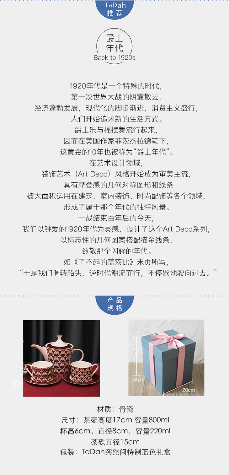 TaDah 爵士年代ART DECO复古骨瓷下午茶杯咖啡杯礼盒