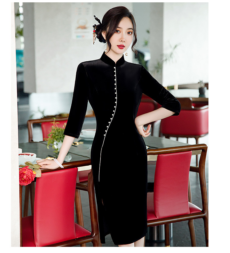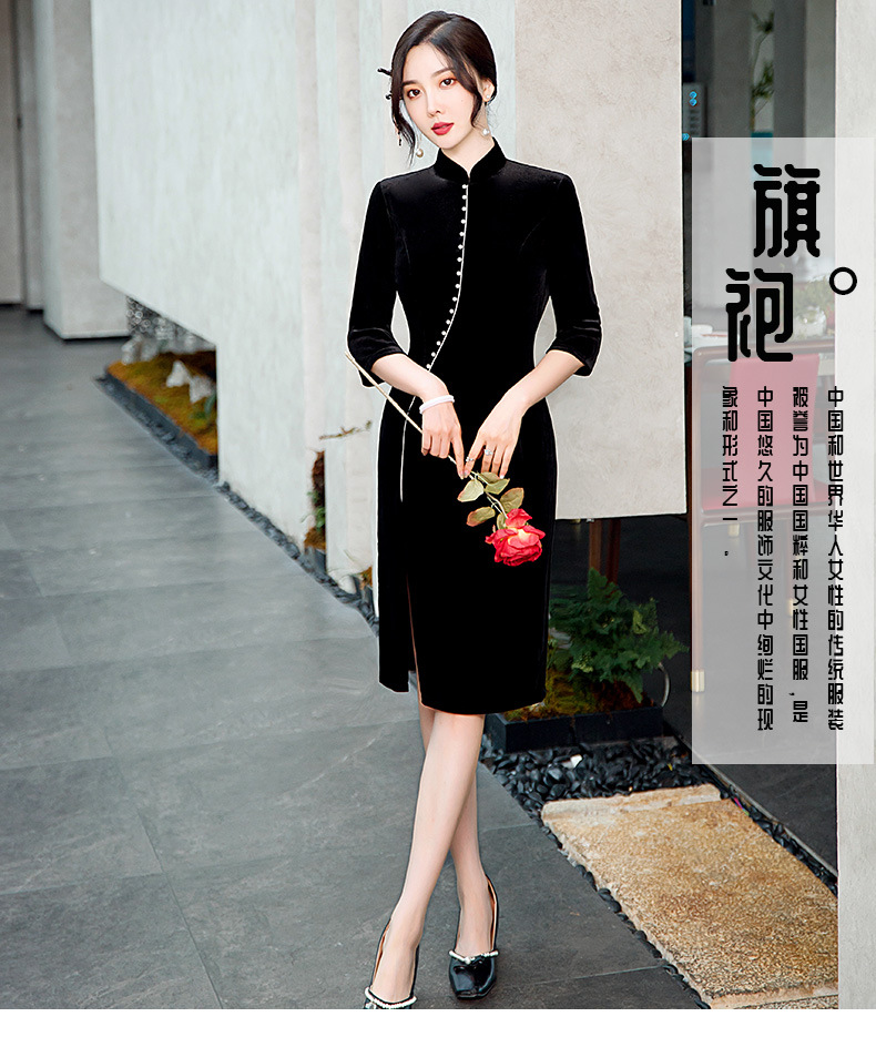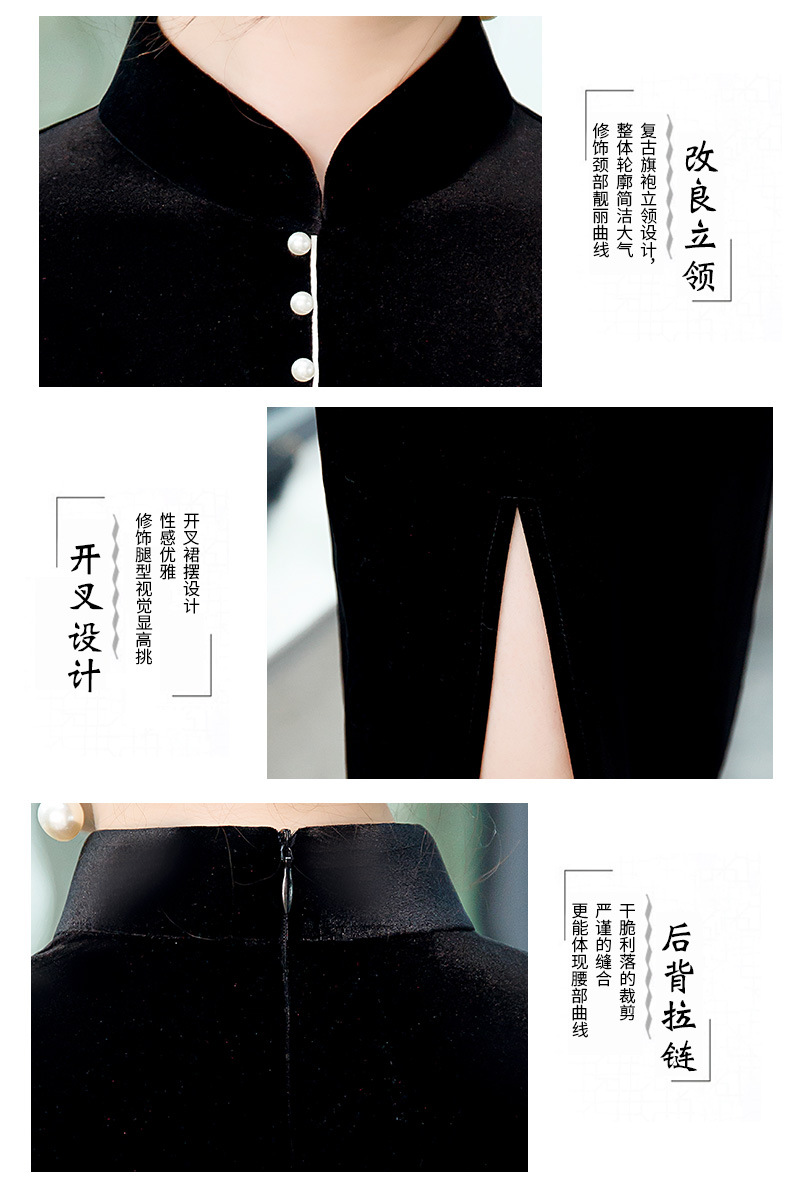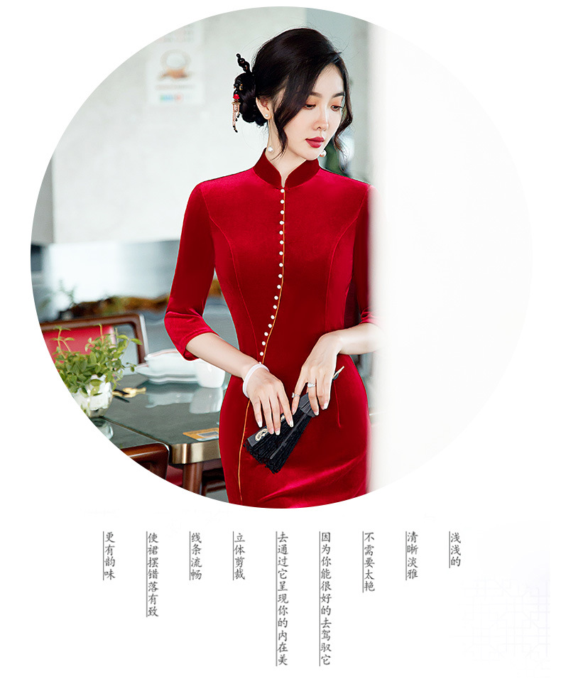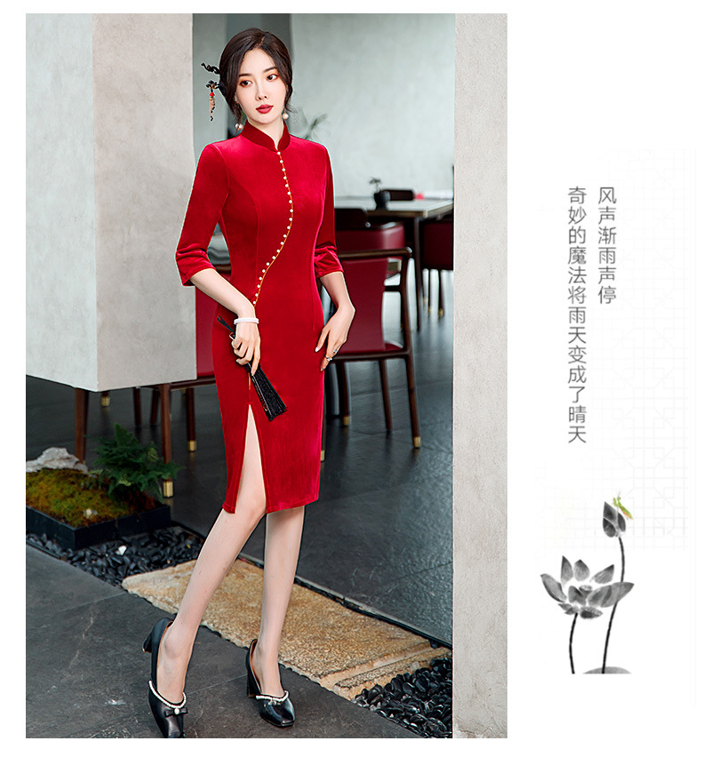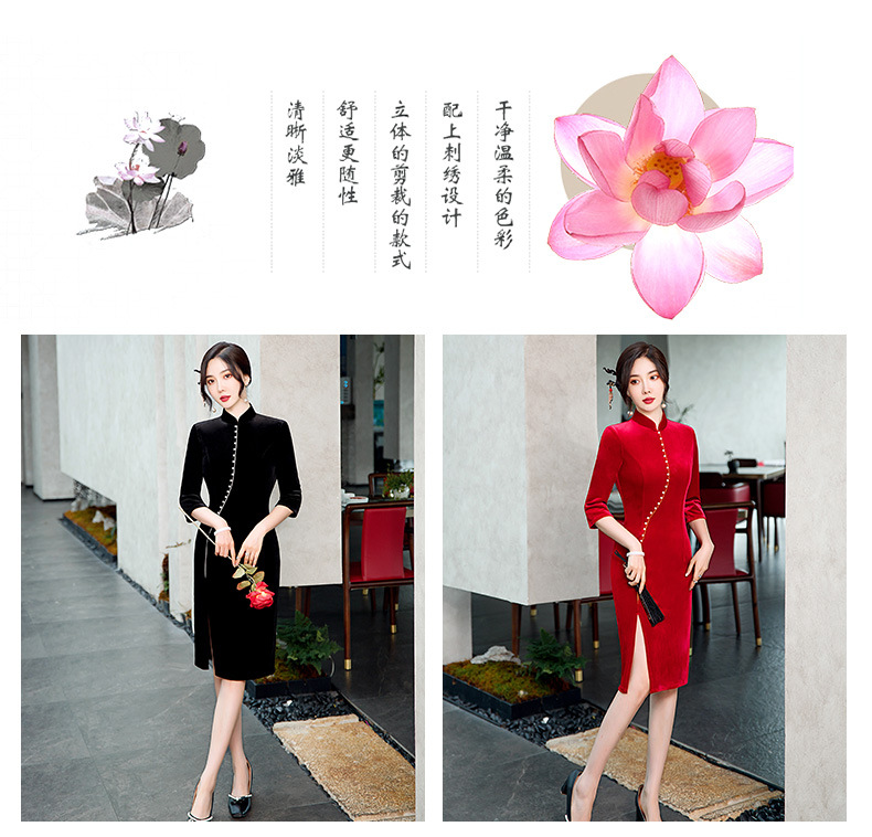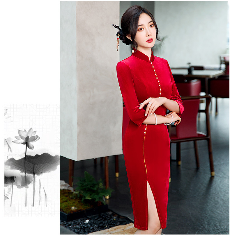 GSJ-2025秋冬新款金丝绒旗袍复古中国风纯色改良时尚旗袍连衣裙