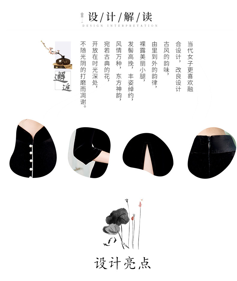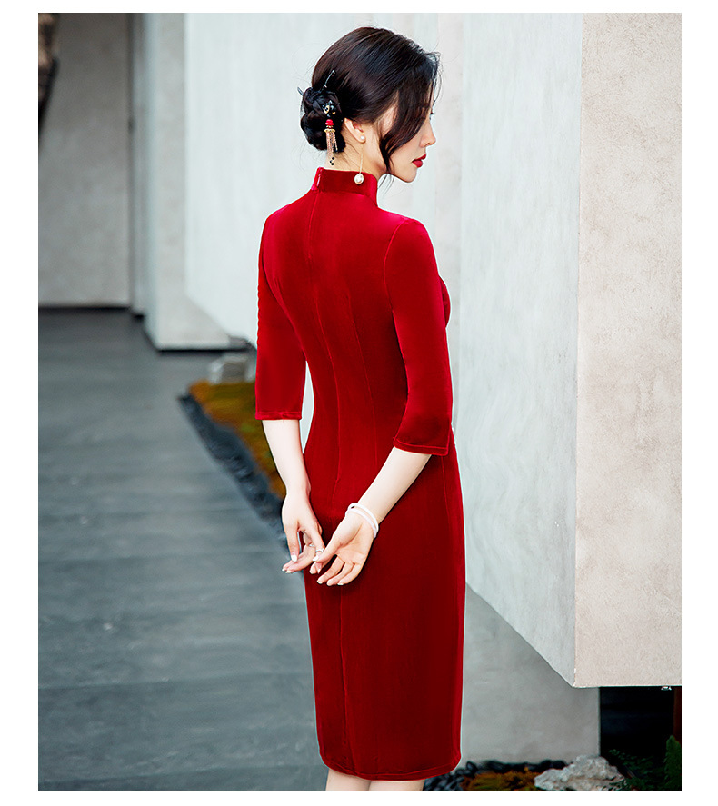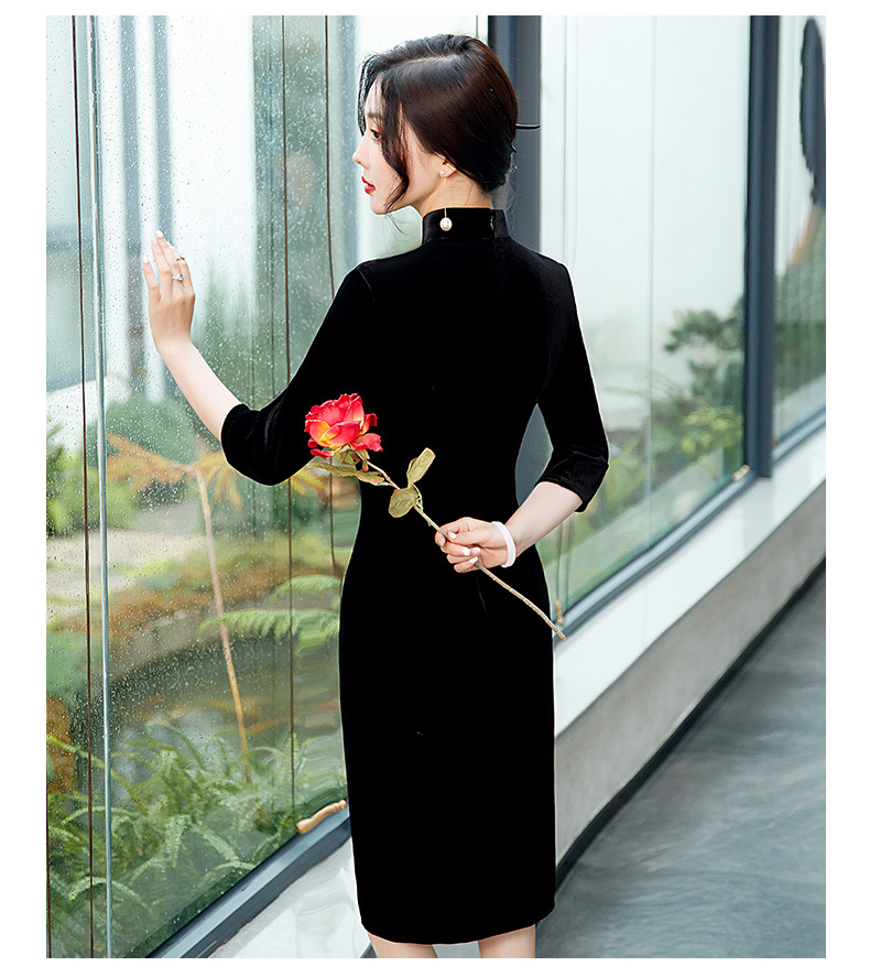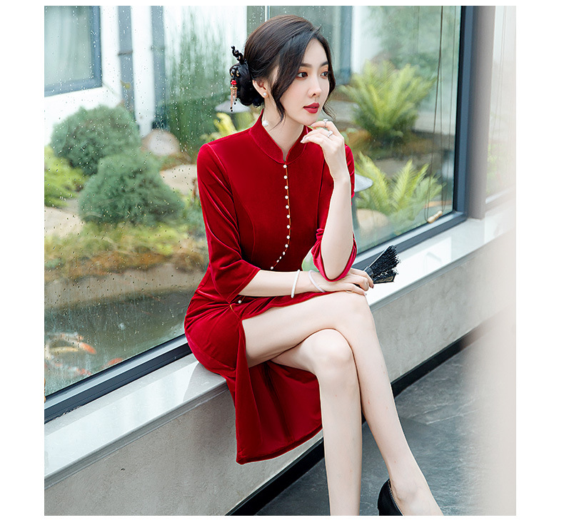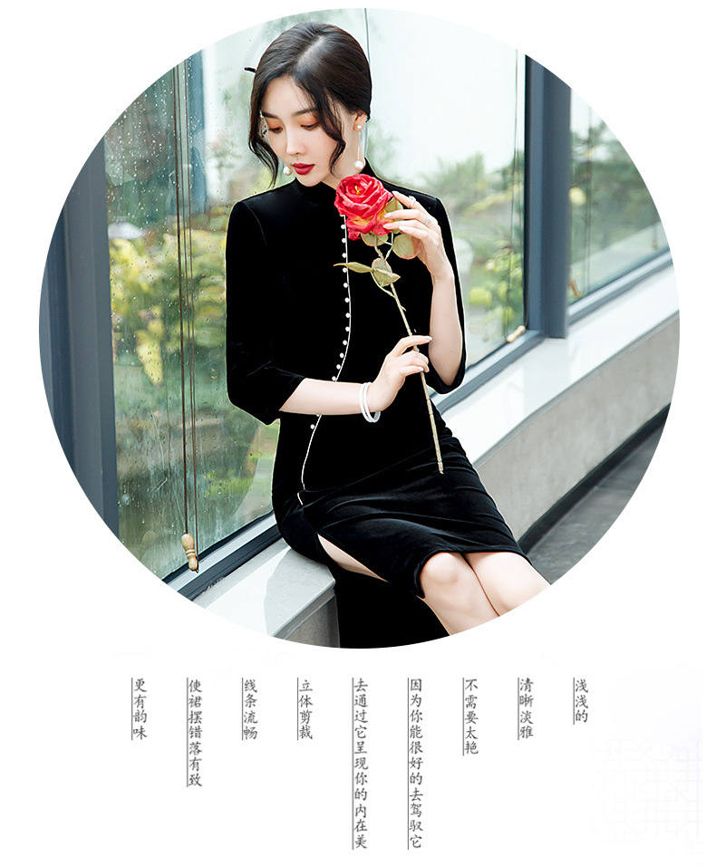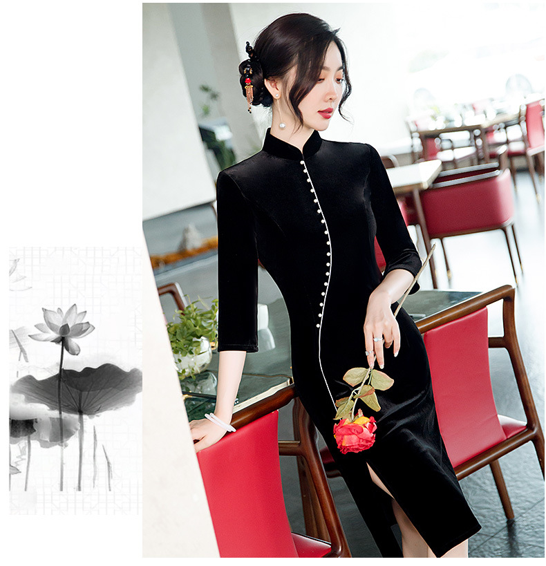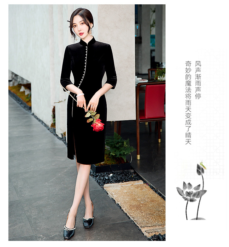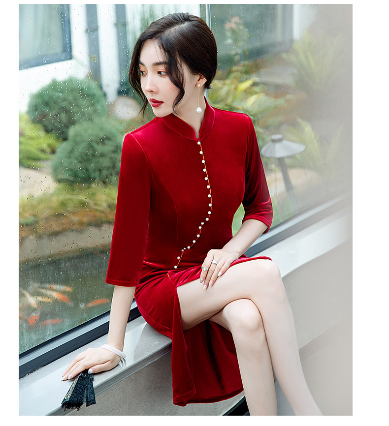 GSJ-2025秋冬新款金丝绒旗袍复古中国风纯色改良时尚旗袍连衣裙