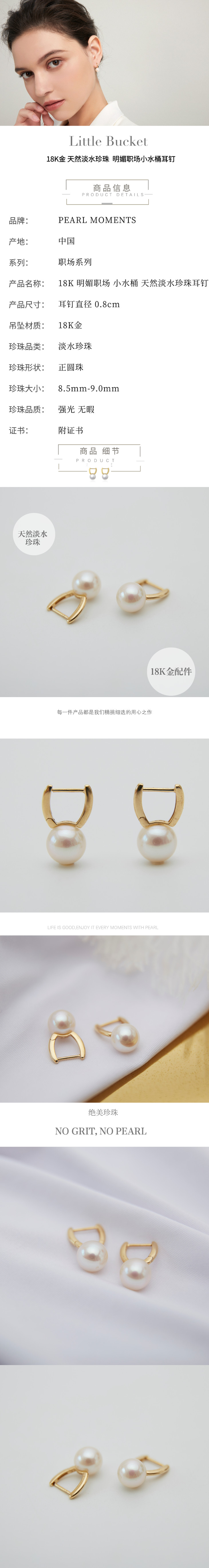 Pearl moments 小水桶 职场经典系列 18K金天然淡水珍珠耳钉