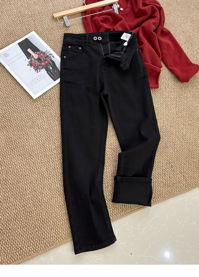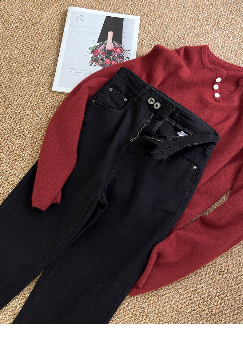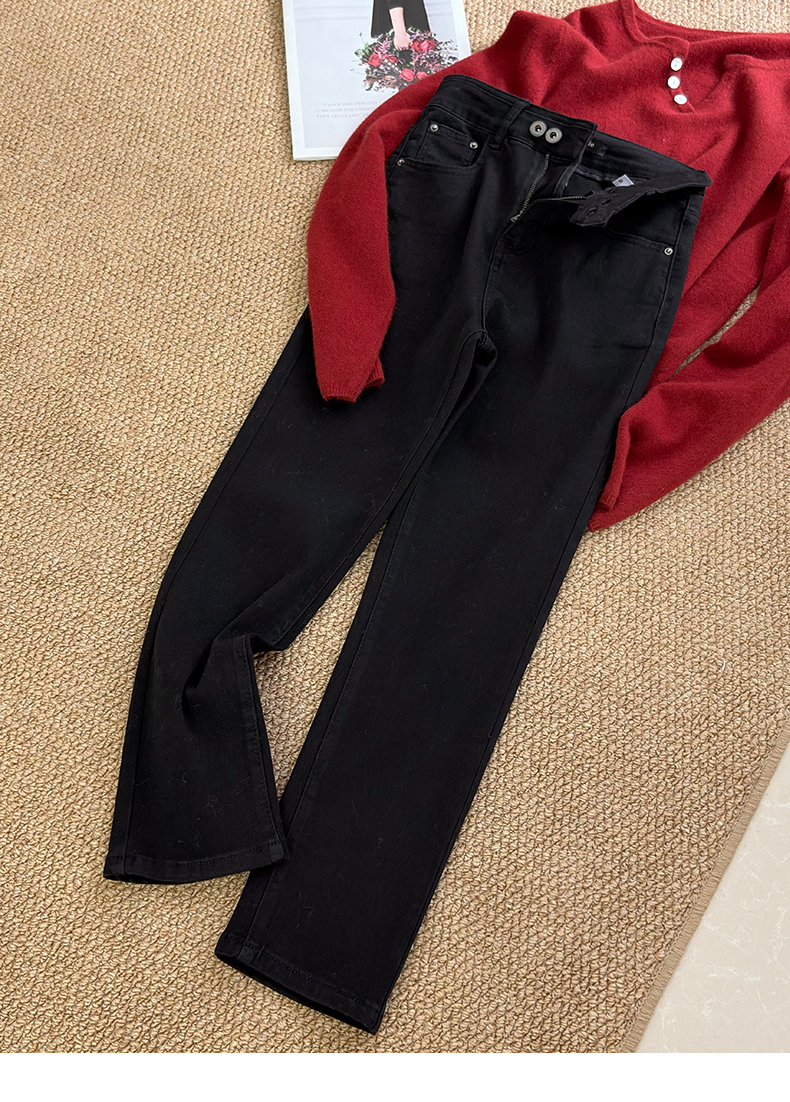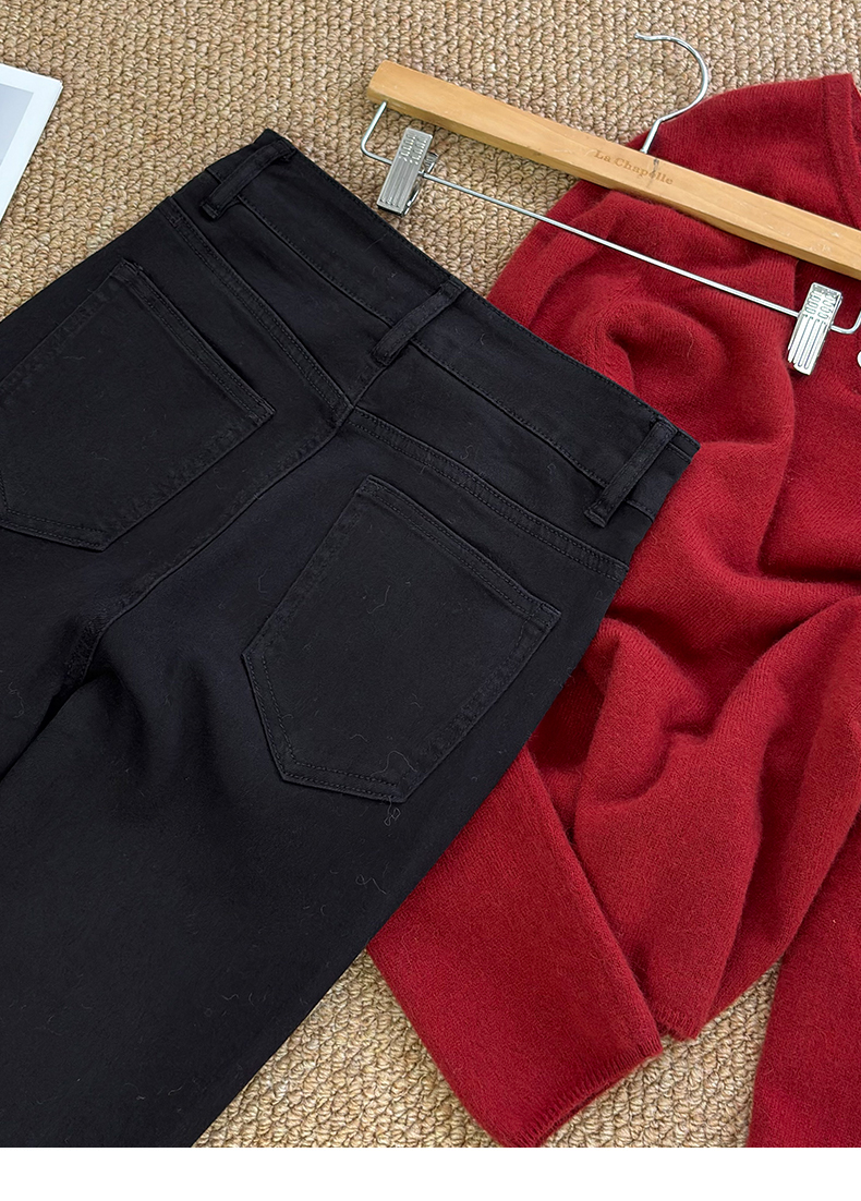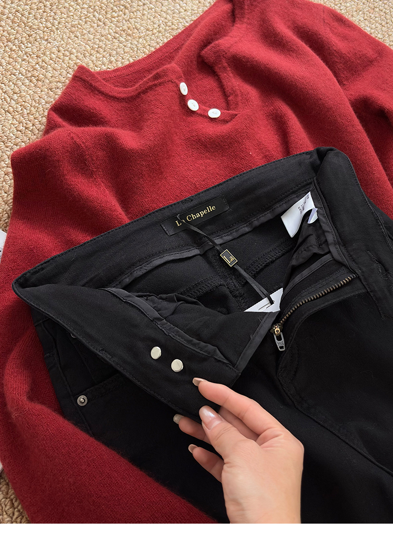 会员福利【12oz高弹+衣橱必备】拉夏贝尔/La Chapelle高腰两粒扣显瘦铅笔裤小脚裤牛仔裤
