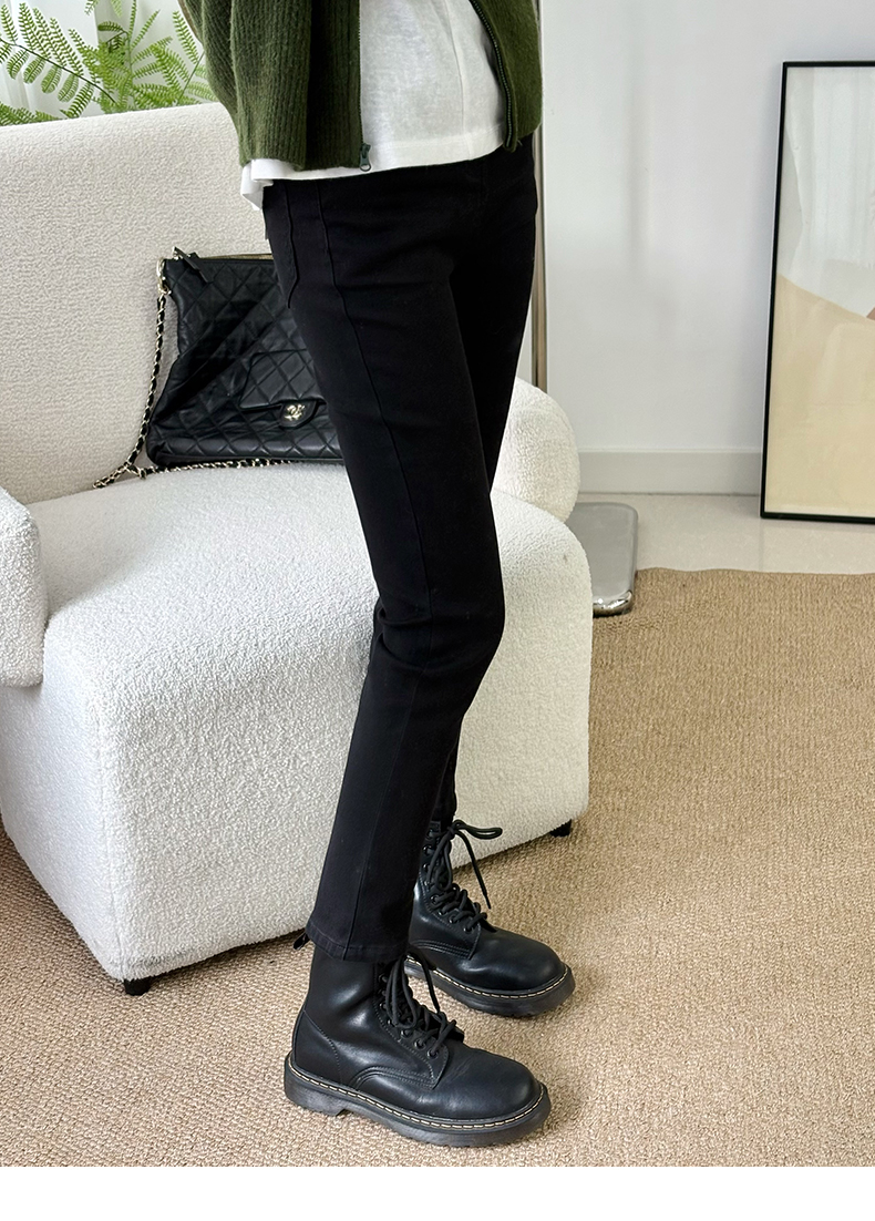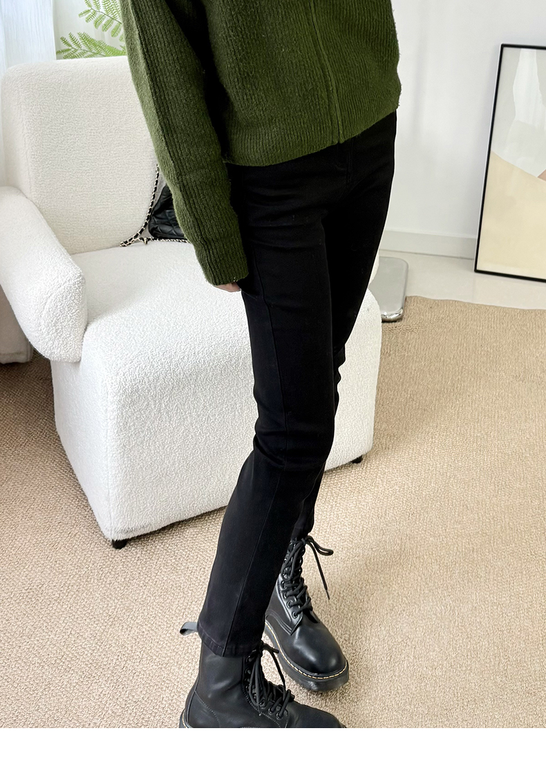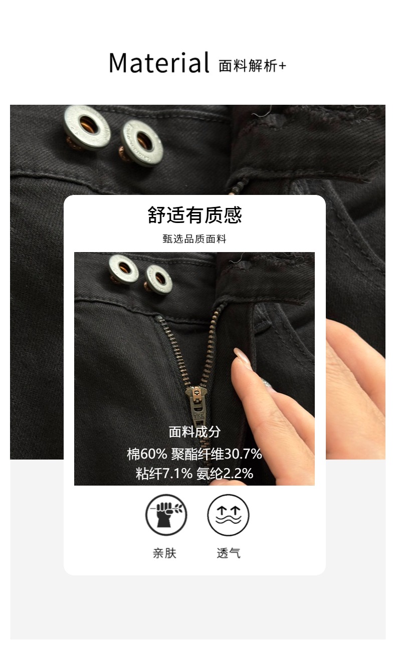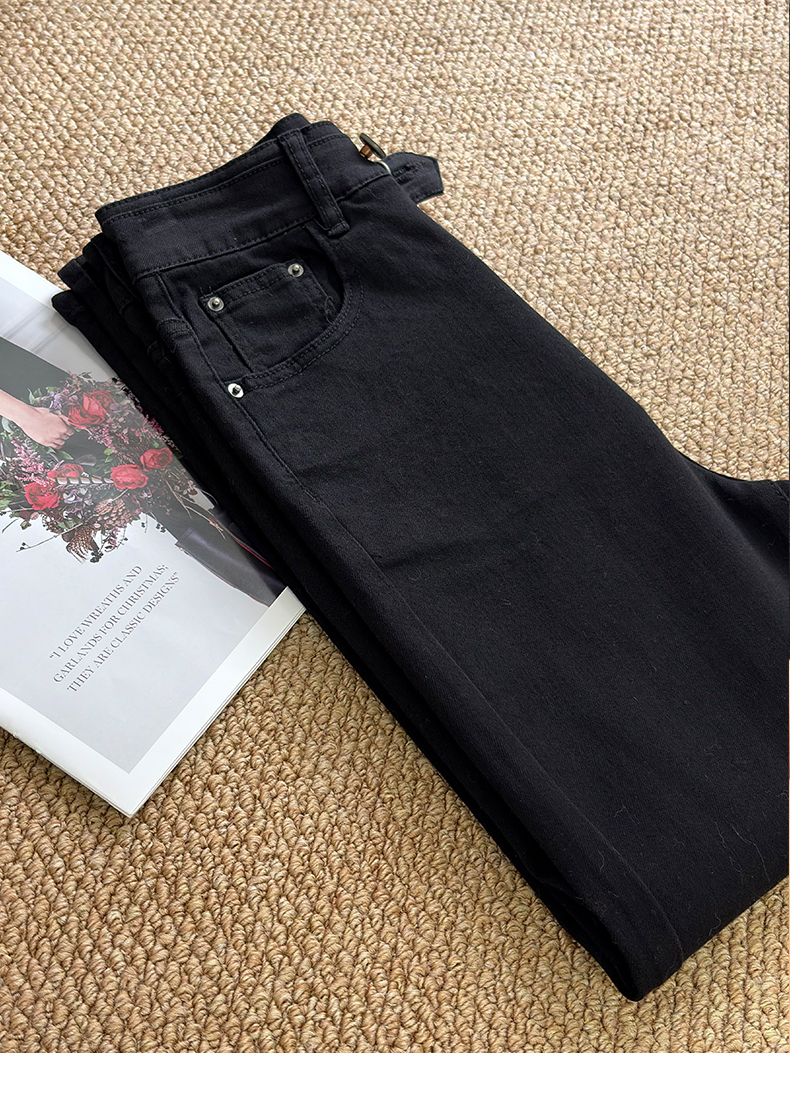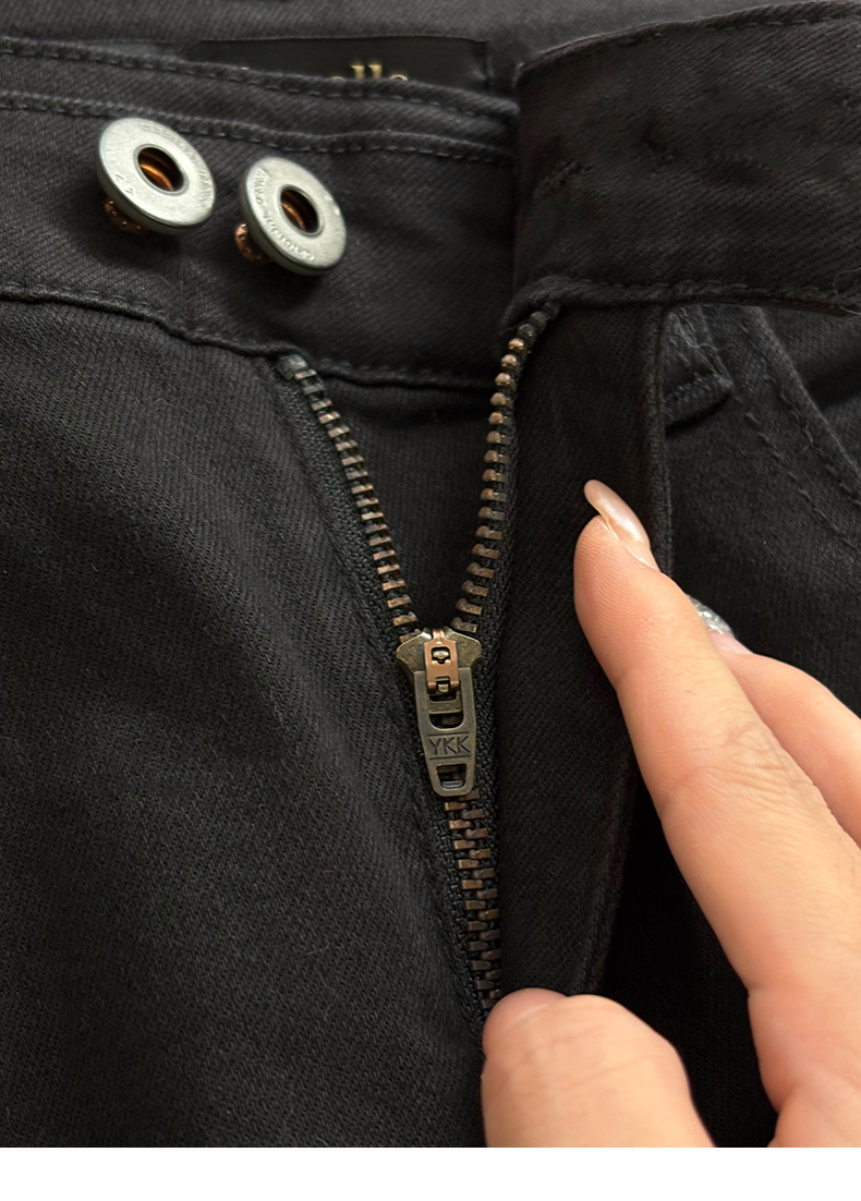 会员福利【12oz高弹+衣橱必备】拉夏贝尔/La Chapelle高腰两粒扣显瘦铅笔裤小脚裤牛仔裤