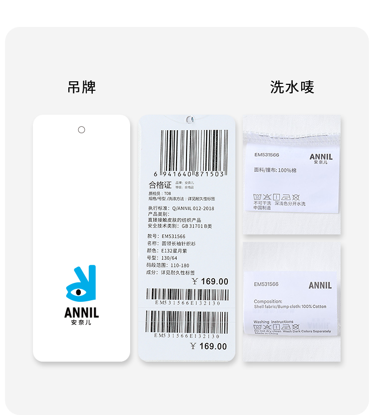 男女童圆领长袖针织衫秋季新款安奈儿童装小程序专享EM531566