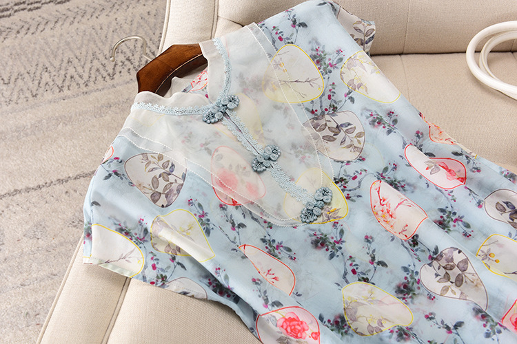 QCJZ-2020夏新款中式复古盘扣立领气质短袖衬衫上衣