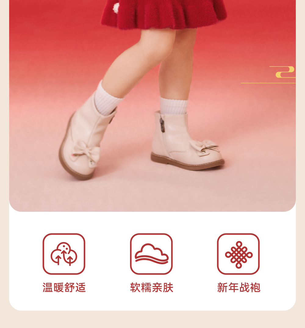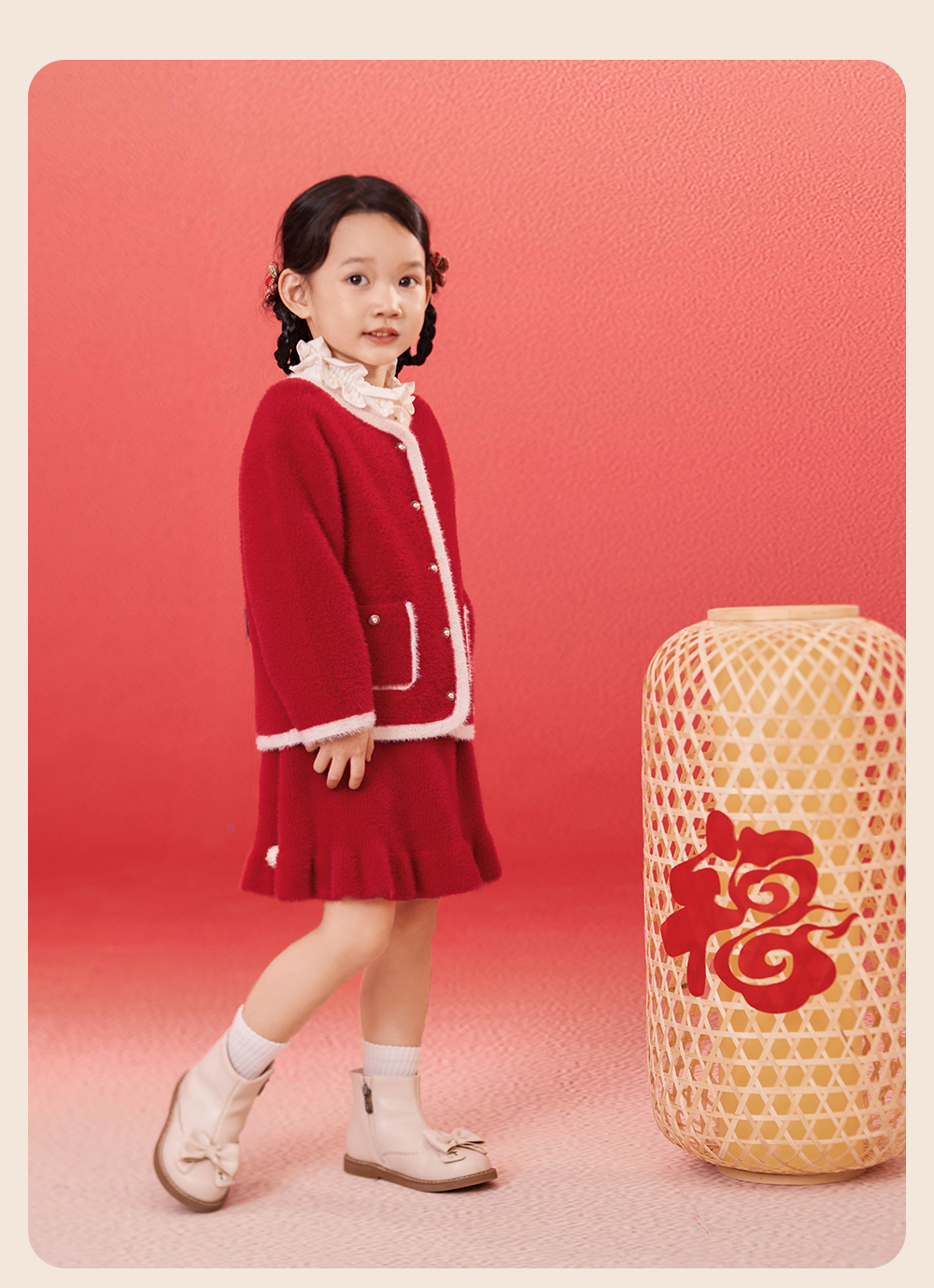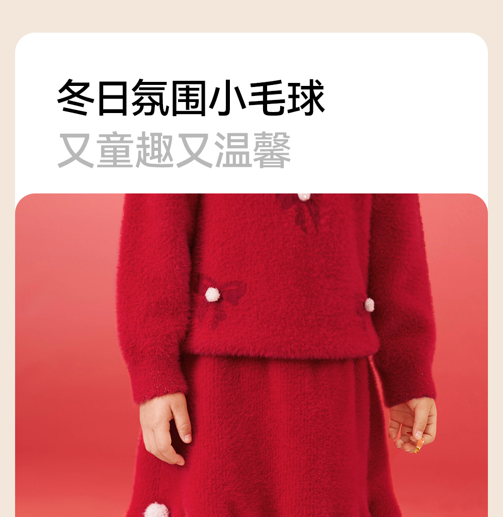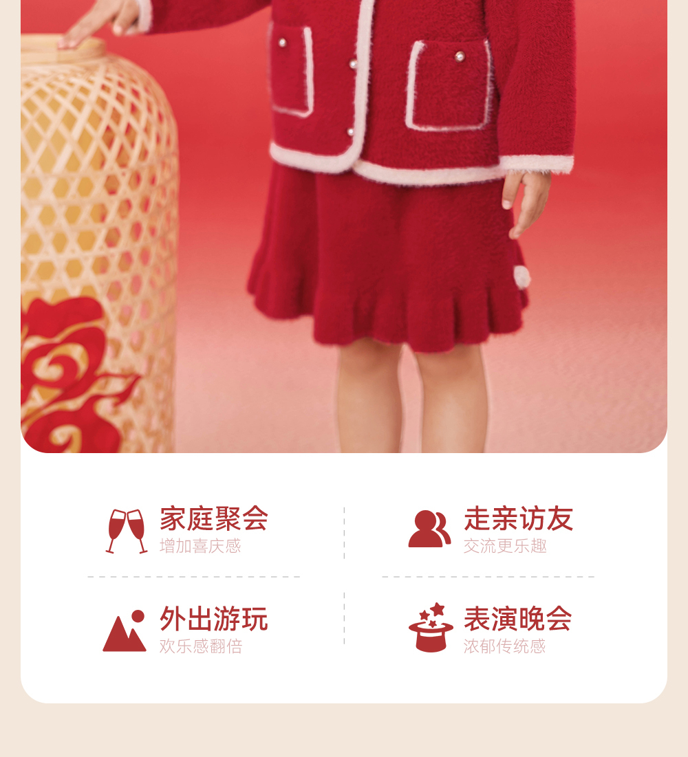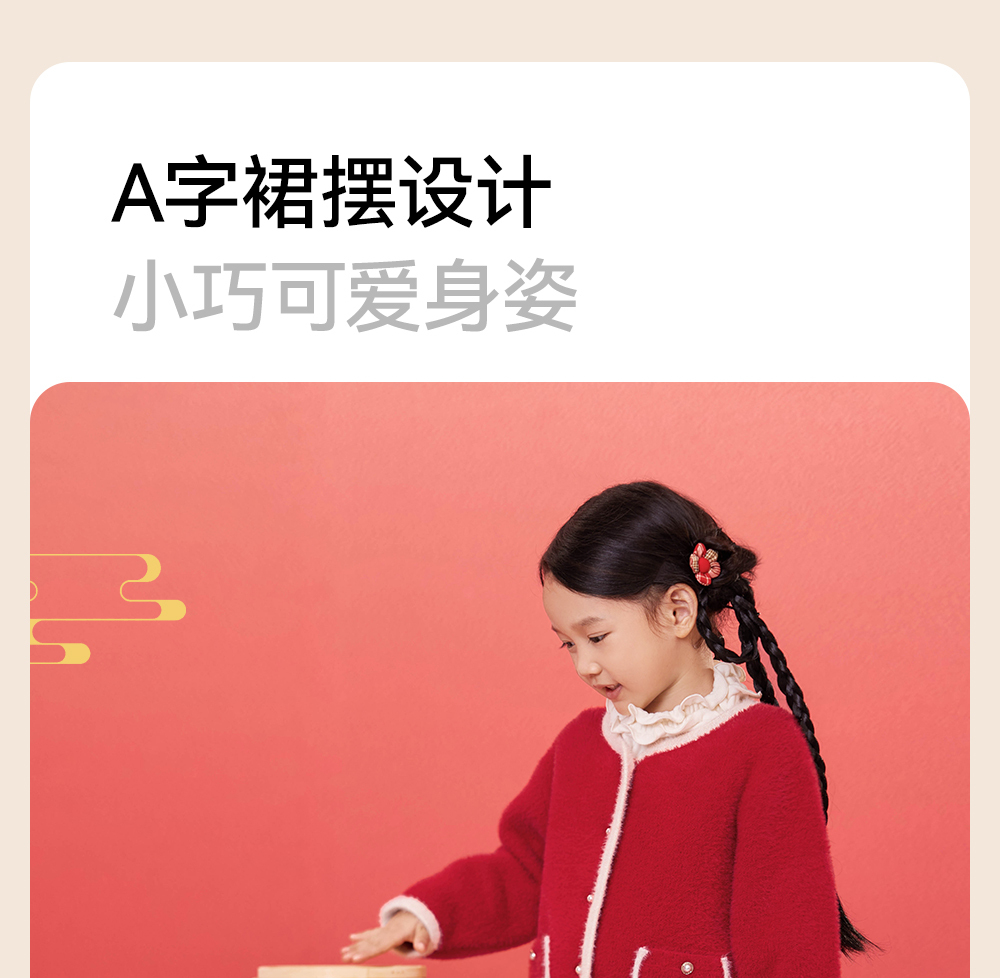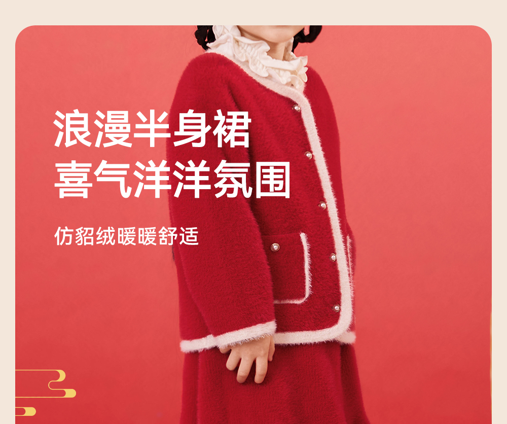【商场同款】英氏儿童裙子新年装秋冬女童加绒半身裙子喜庆拜年服