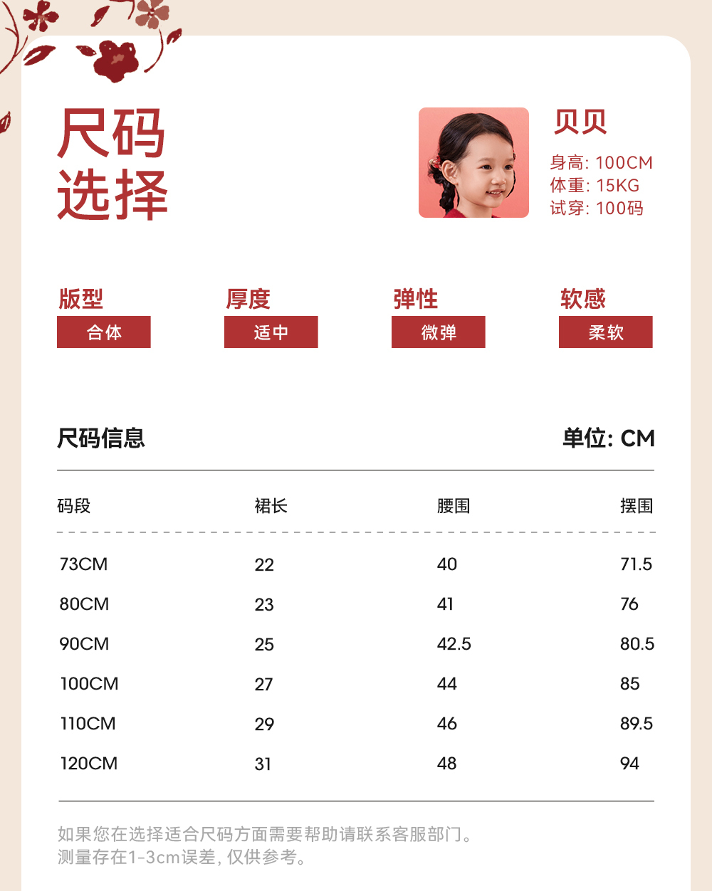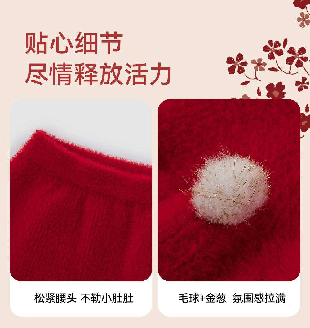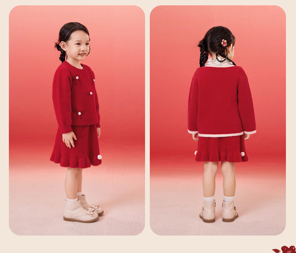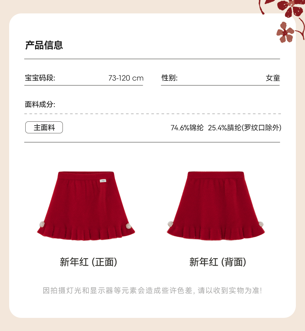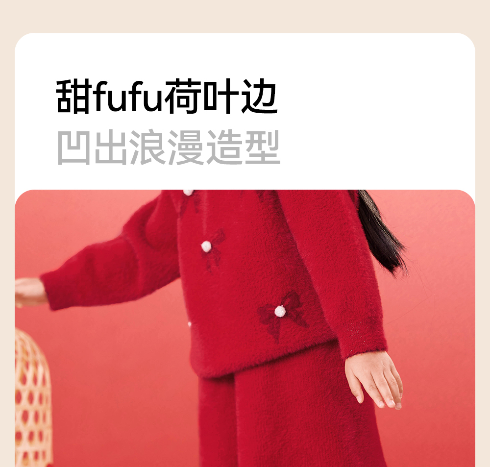 【商场同款】英氏儿童裙子新年装秋冬女童加绒半身裙子喜庆拜年服