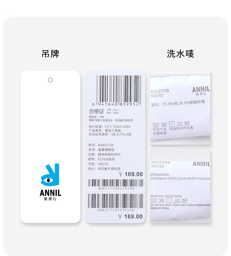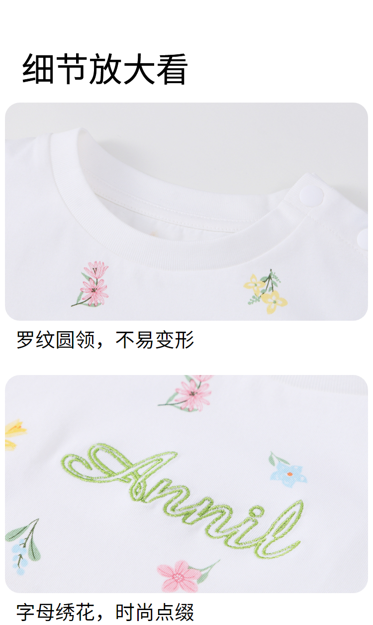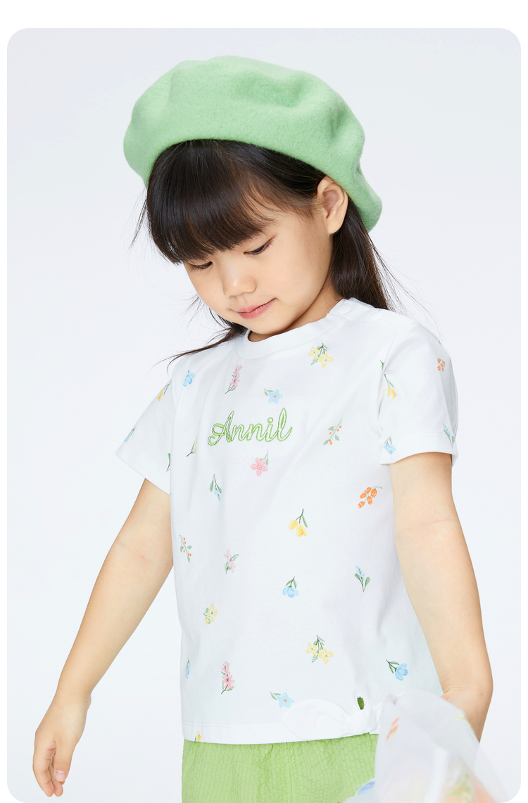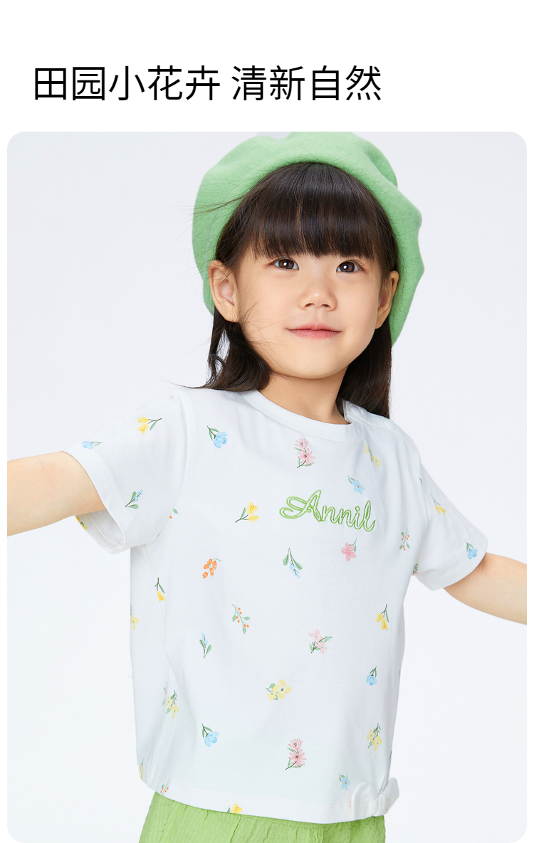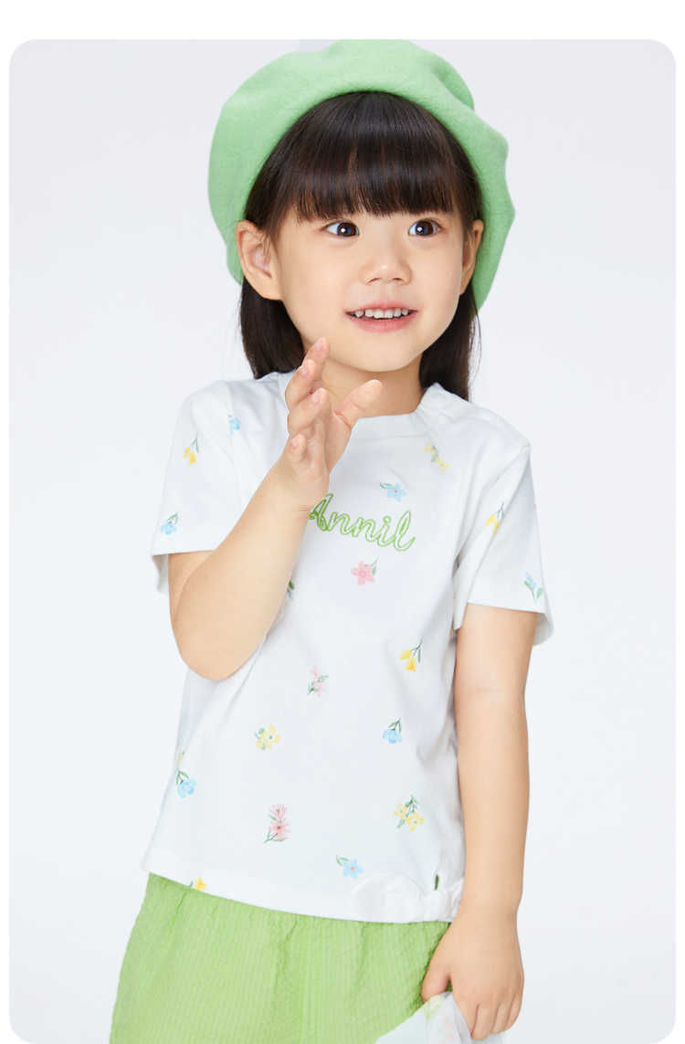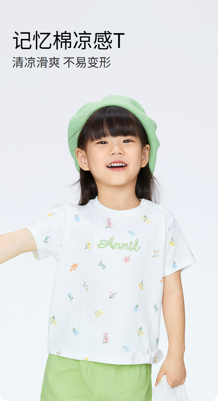 女童记忆棉凉感T田园风新款安奈儿童装实体店同款XG421729