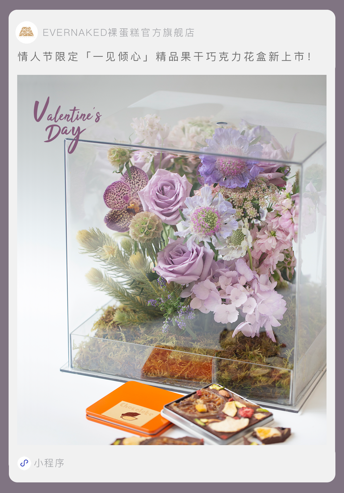 限定 「一见倾心」精品果干巧克力花盒|内含:精品果干牛奶巧克力*2片,鲜花花盒*1盒。 商品图0