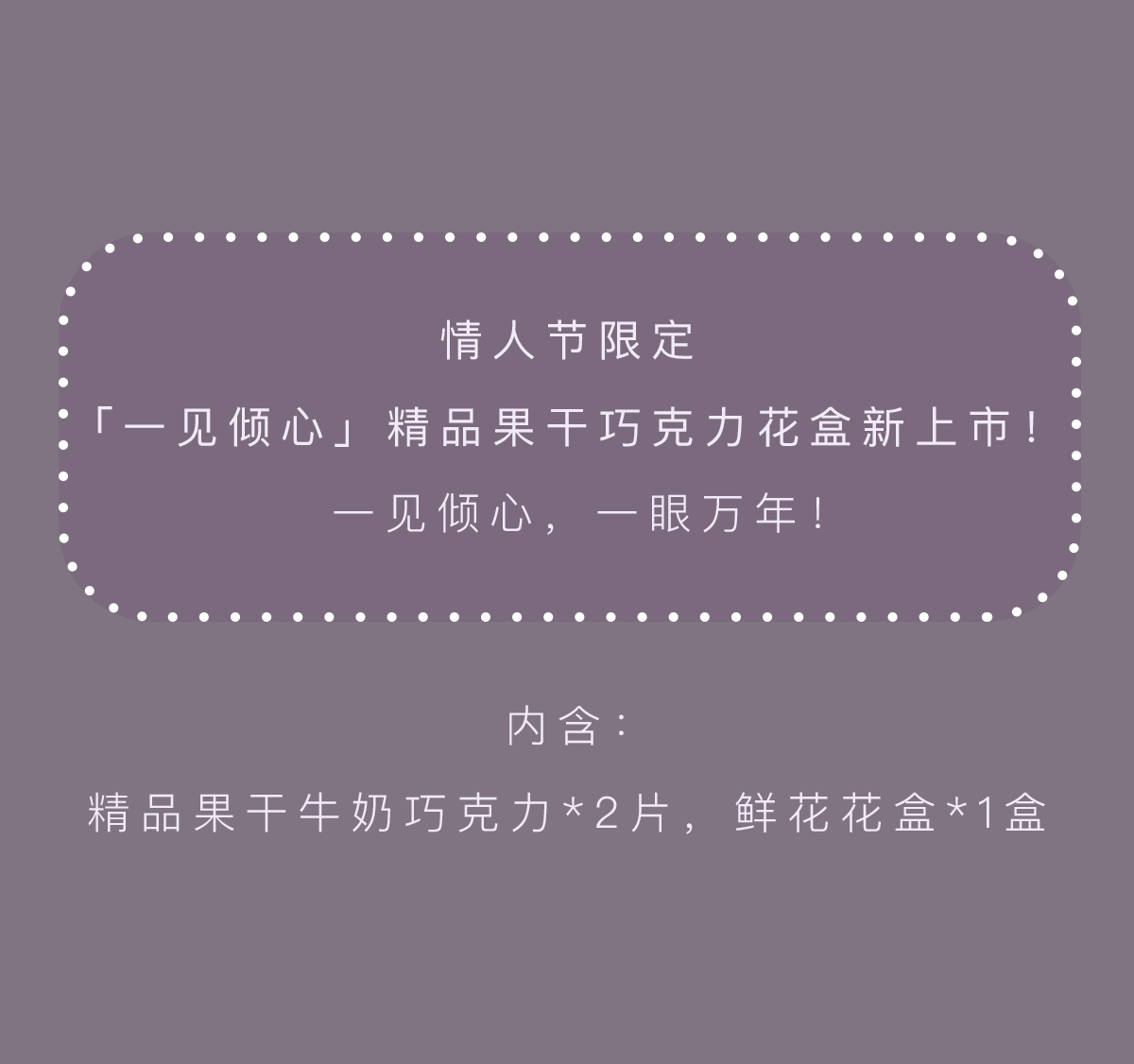 限定 「一见倾心」精品果干巧克力花盒|内含:精品果干牛奶巧克力*2片,鲜花花盒*1盒。