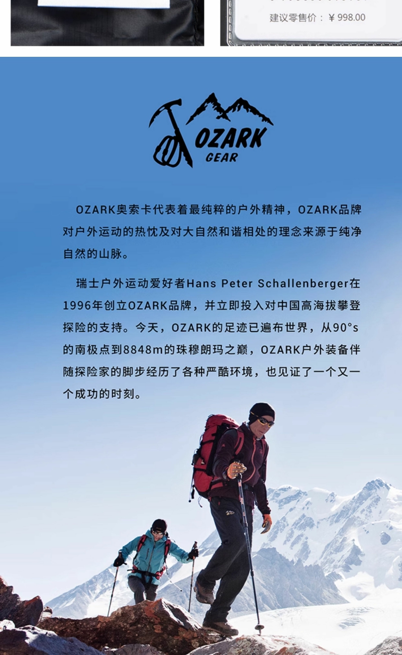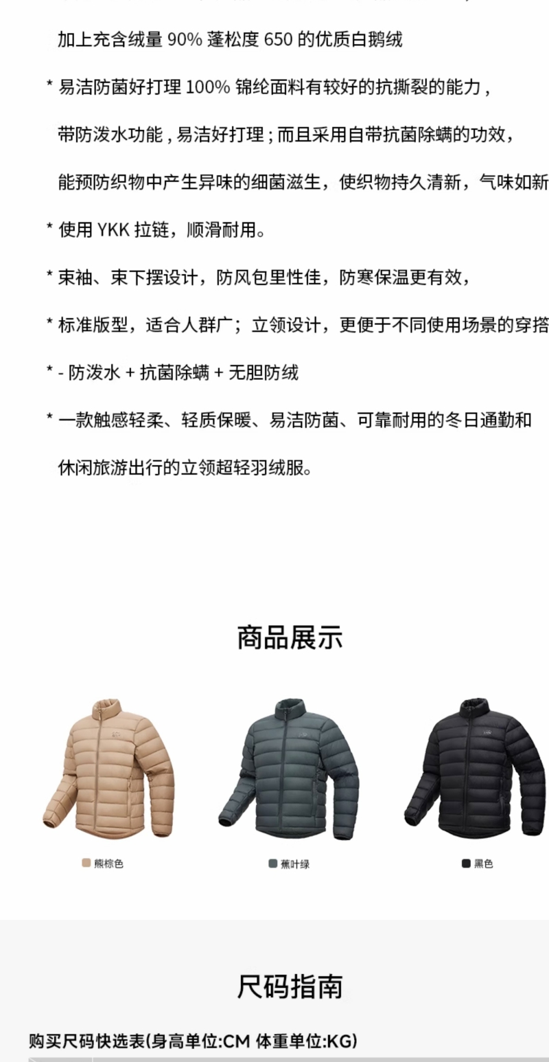 OZARK奥索卡羽绒服官方正品高端品牌休闲美式潮超轻立领羽绒服男1512226